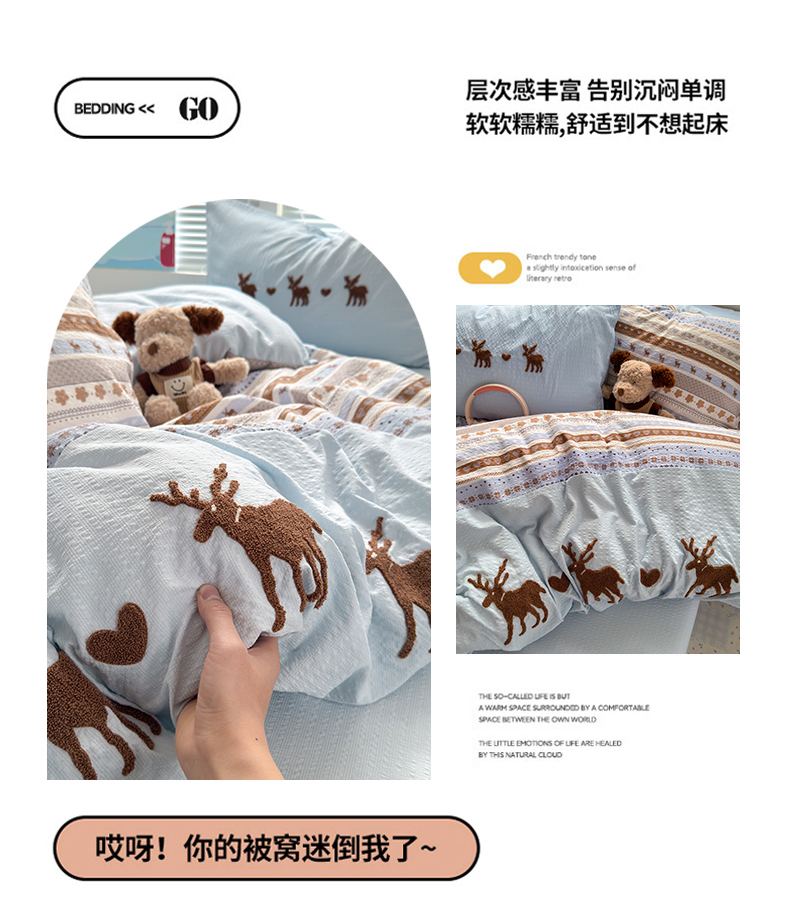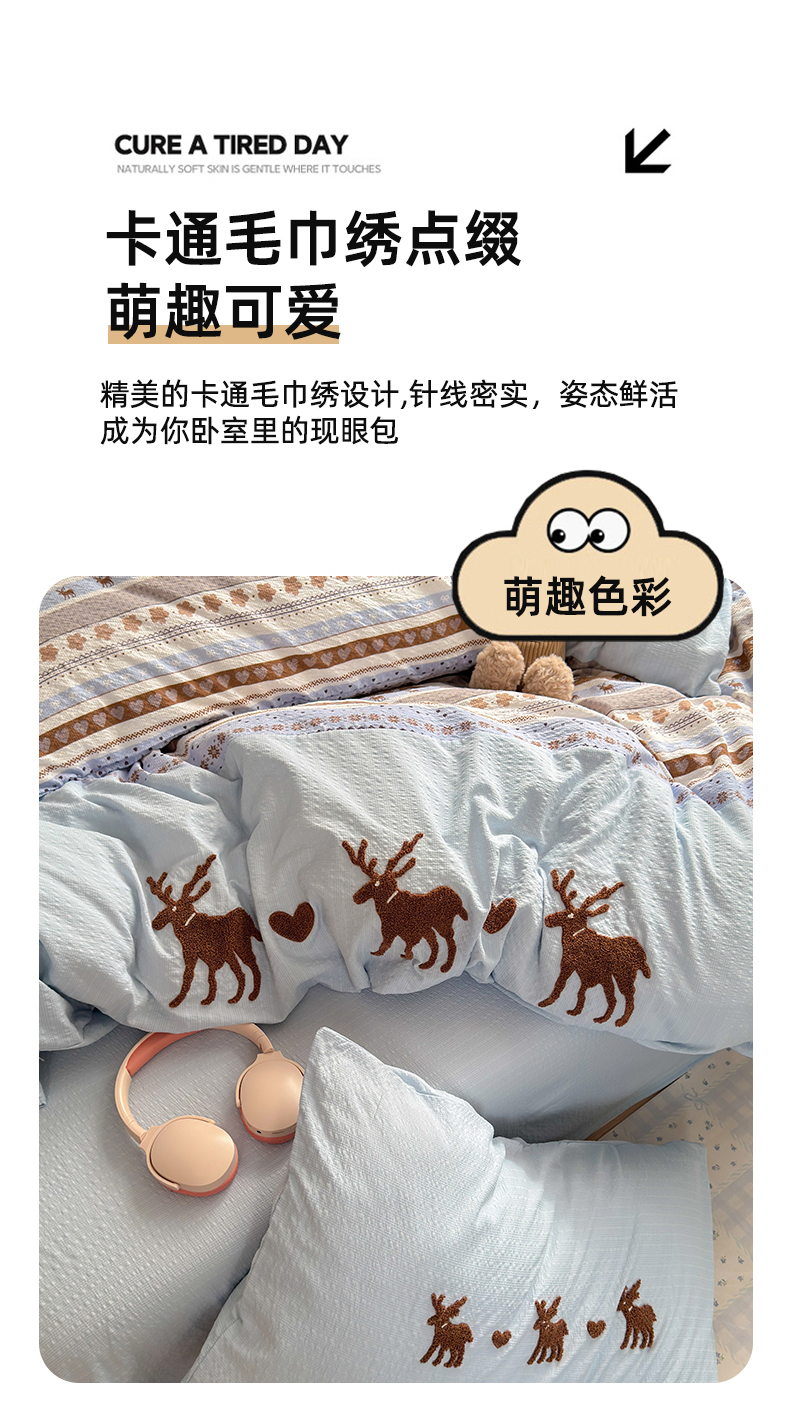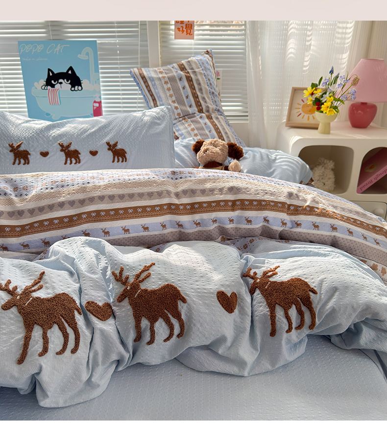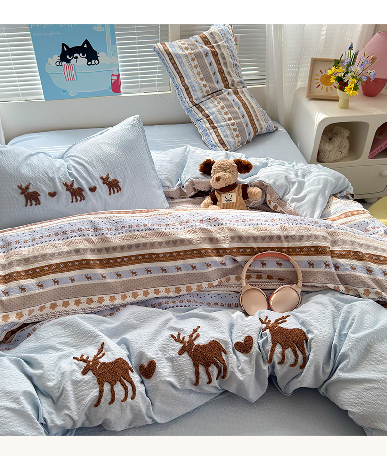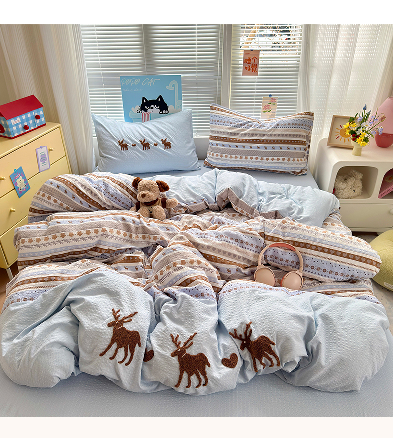 当前位置: 91家纺网 > 商品网购 > 床品套件 > 四件套 > 其它四件套 > 三元色 2026新款泡芙费尔岛绣花四件套 费尔岛-心动驯鹿