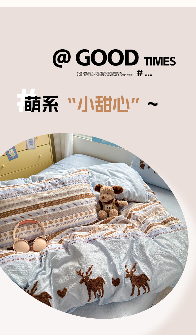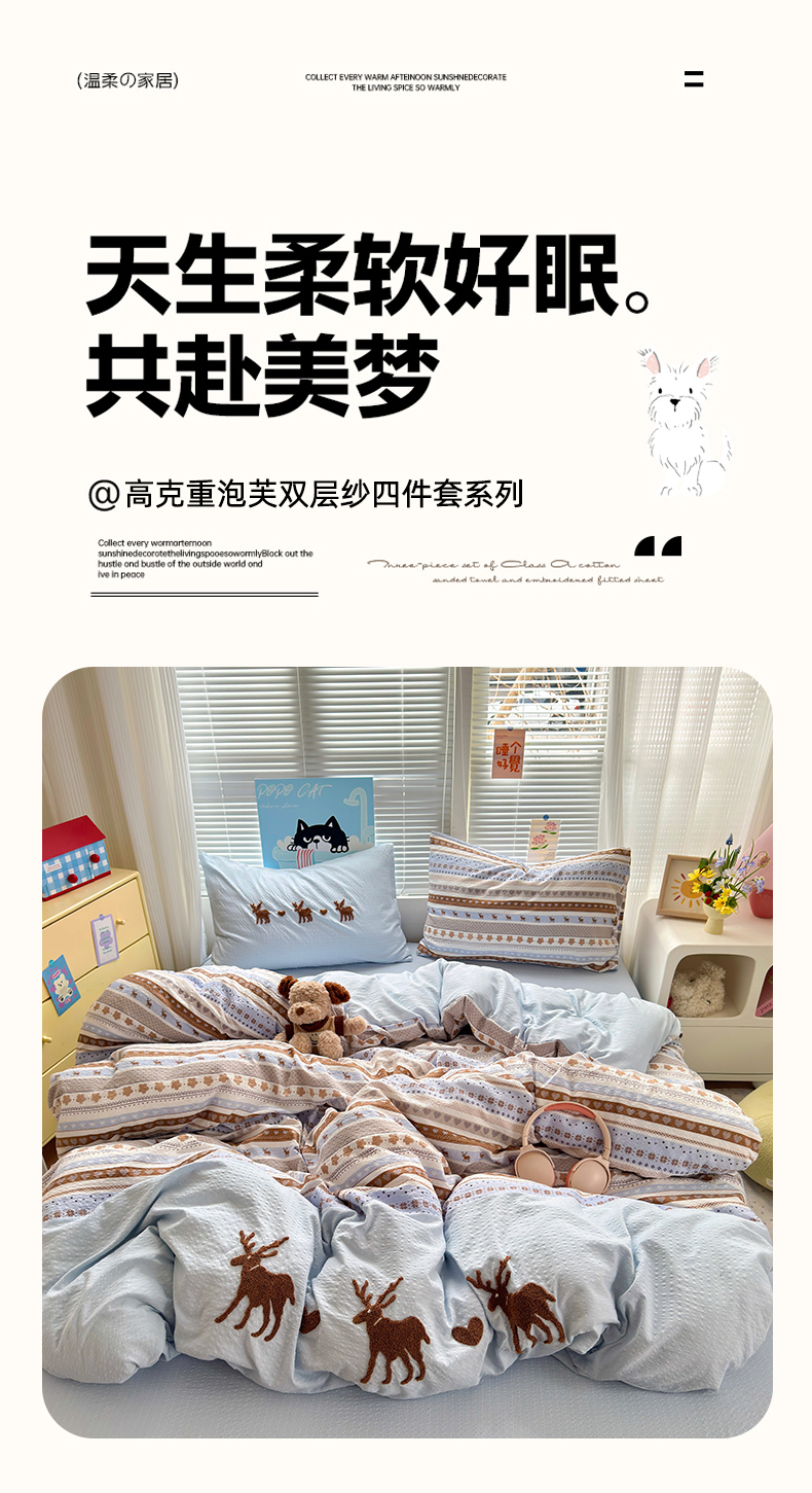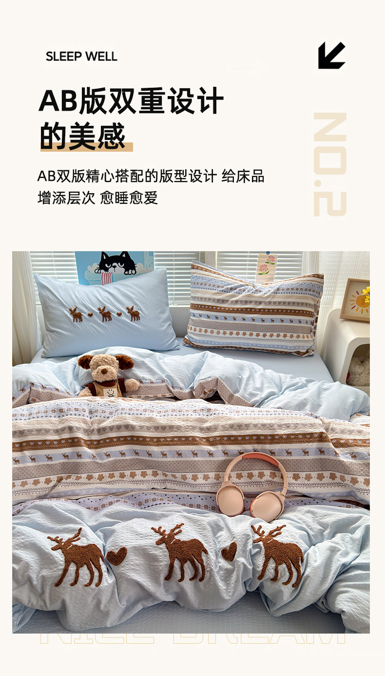 当前位置: 91家纺网 > 商品网购 > 床品套件 > 四件套 > 其它四件套 > 三元色 2026新款泡芙费尔岛绣花四件套 费尔岛-心动驯鹿