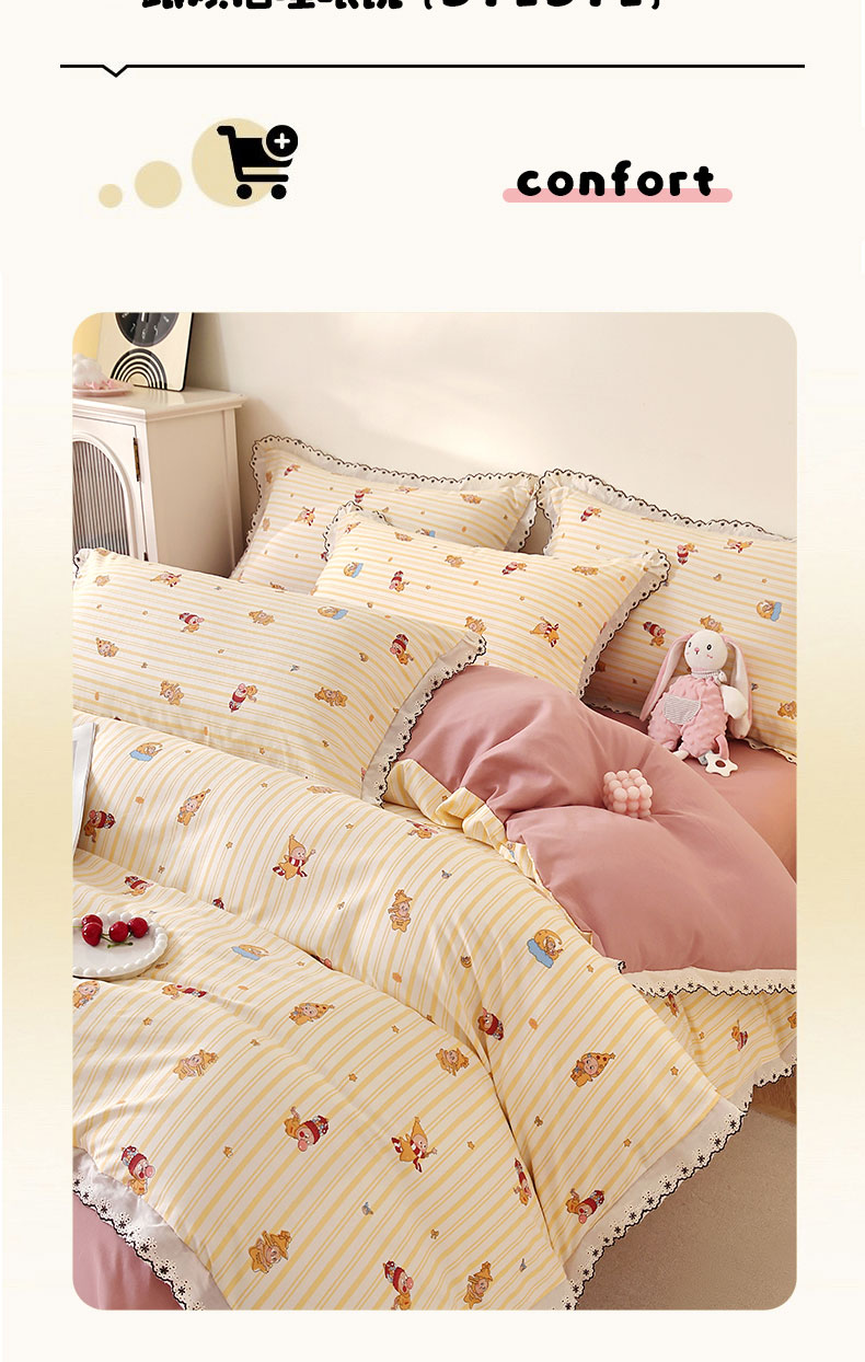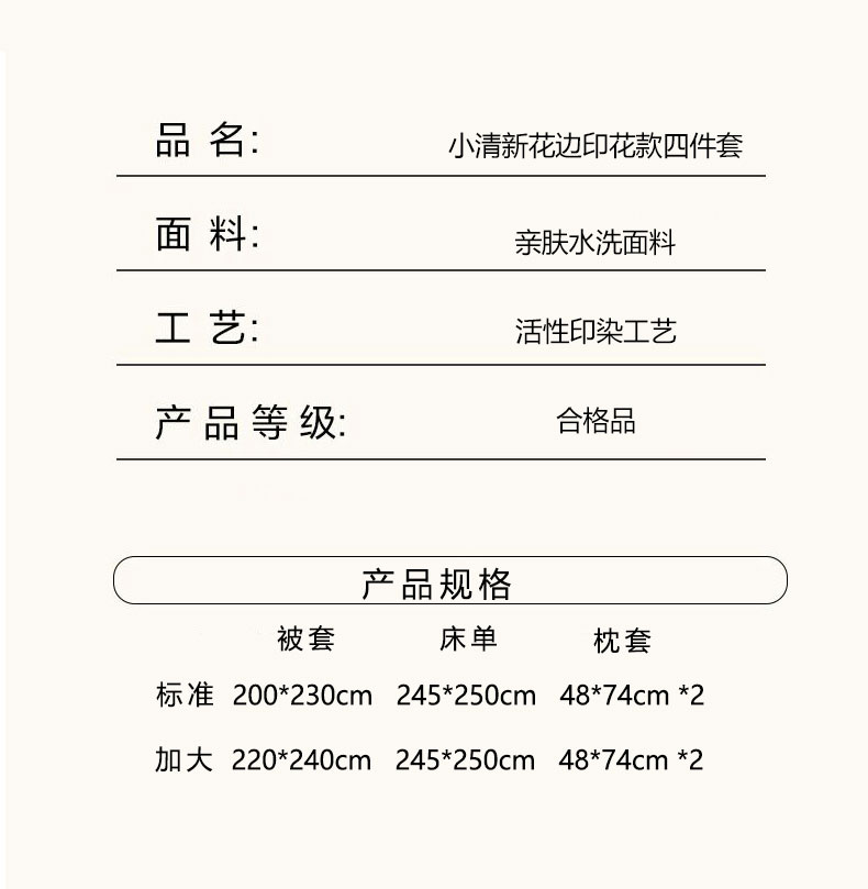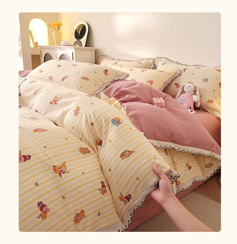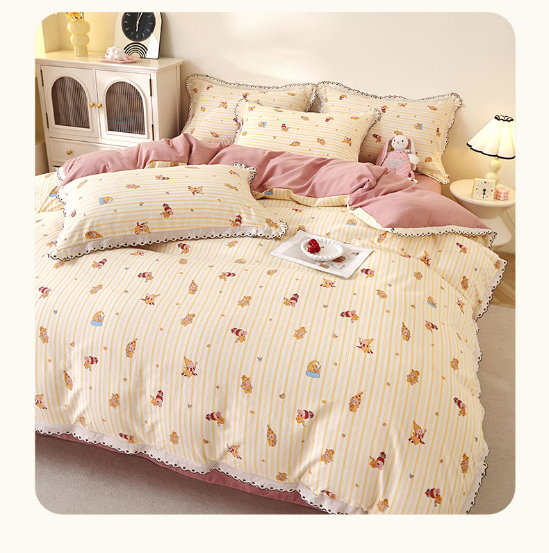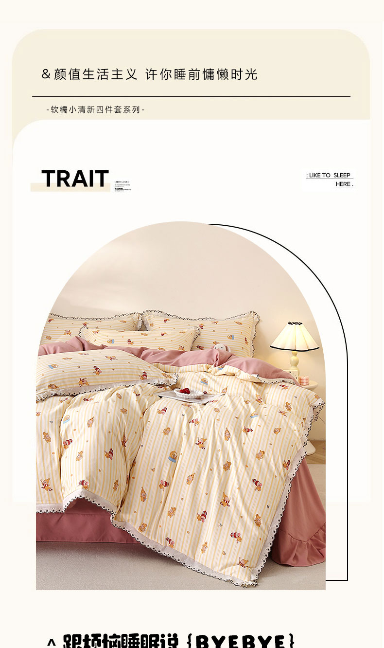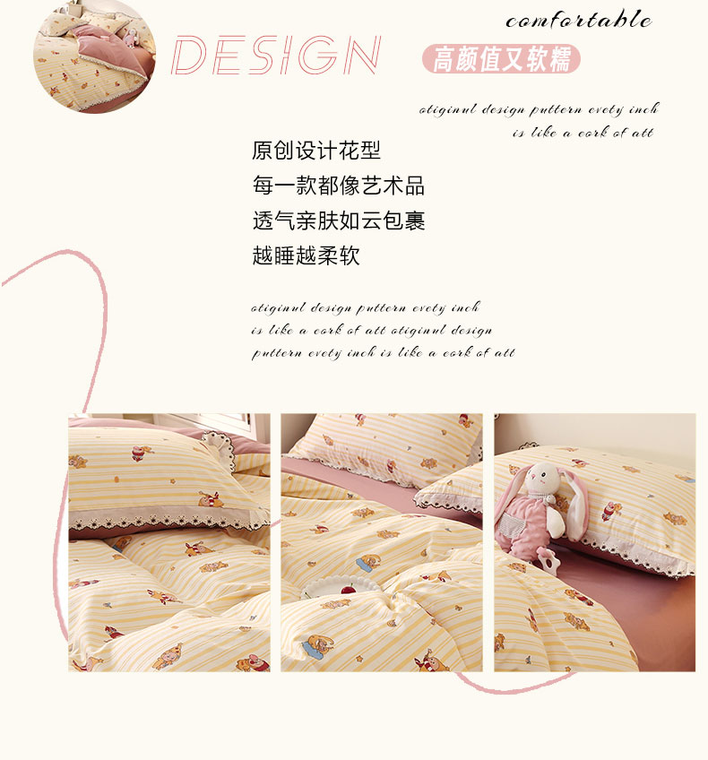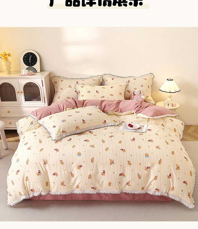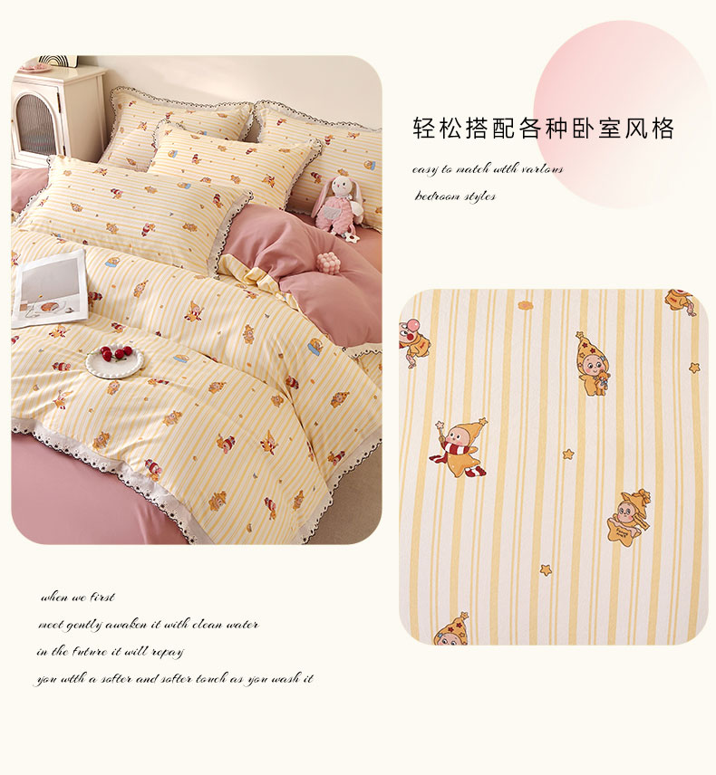商品名称:北部居 2026新款水洗仿棉韩版花边款田园复古风小清新四件套 小精灵