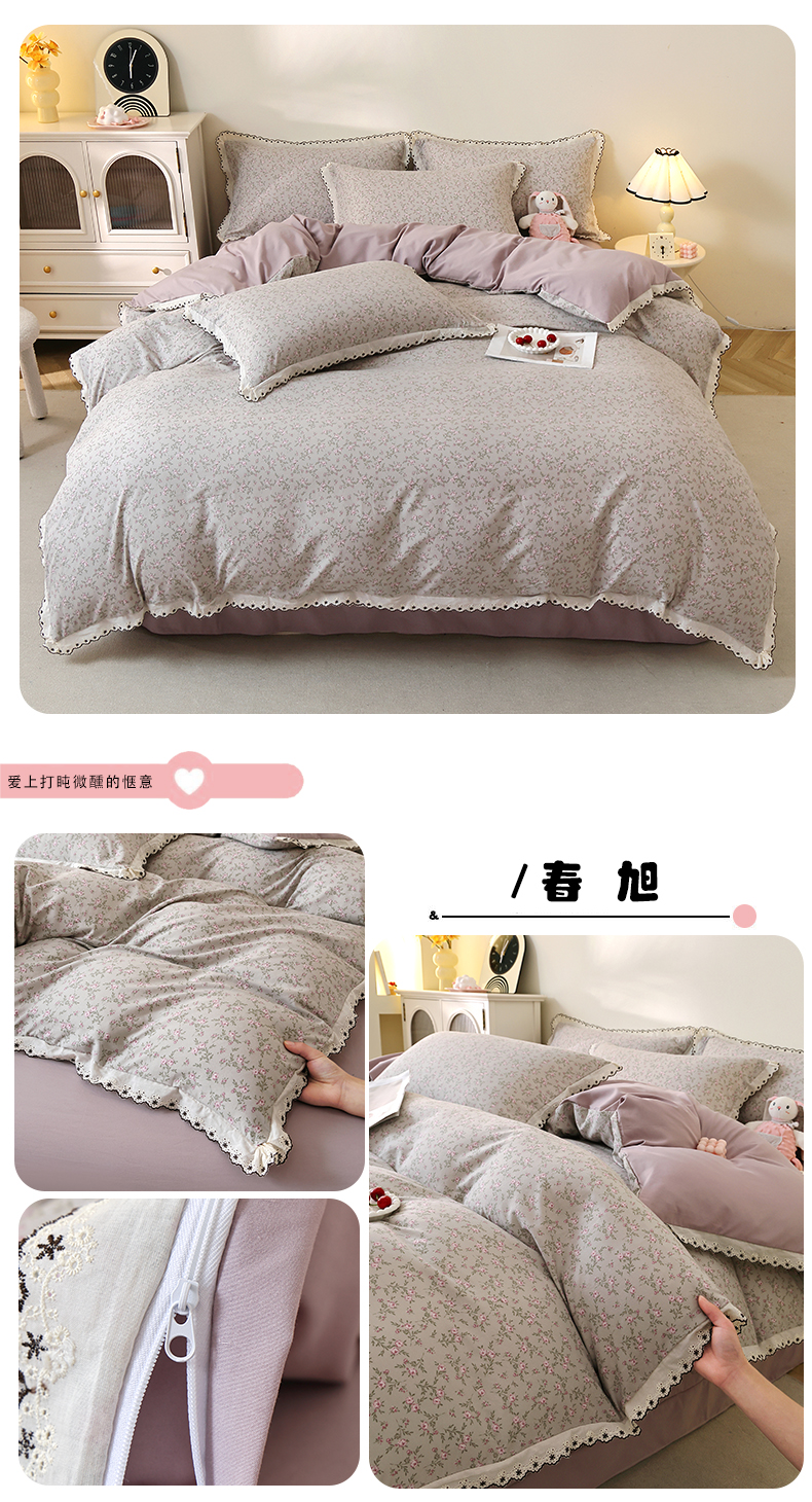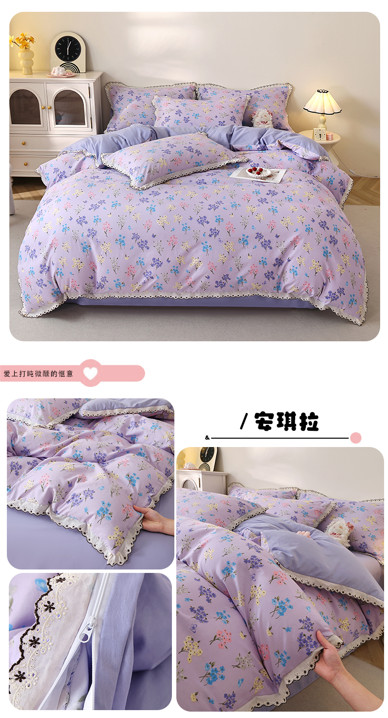 (总)北部居 2026新款水洗仿棉韩版花边款田园复古风小清新四件套,安琪拉,豹纹魅力,春旭,杜桑花园,枫晚,佳丽斯,洛兰,松野,小精灵,紫馨