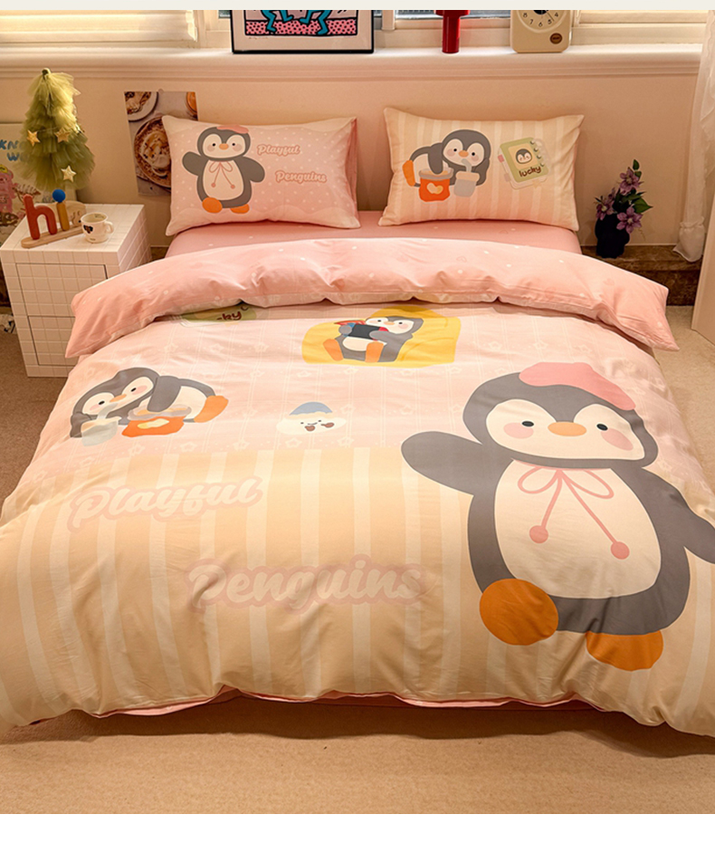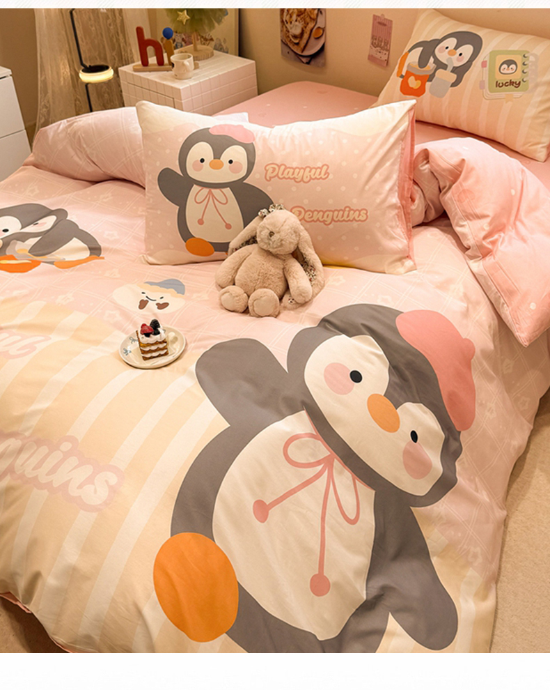 当前位置: 91家纺网 > 商品网购 > 床品套件 > 四件套 > 全棉普通四件套 > 麦田家纺 2026新款全棉13070数码印花四件套 悠闲企鹅(粉)