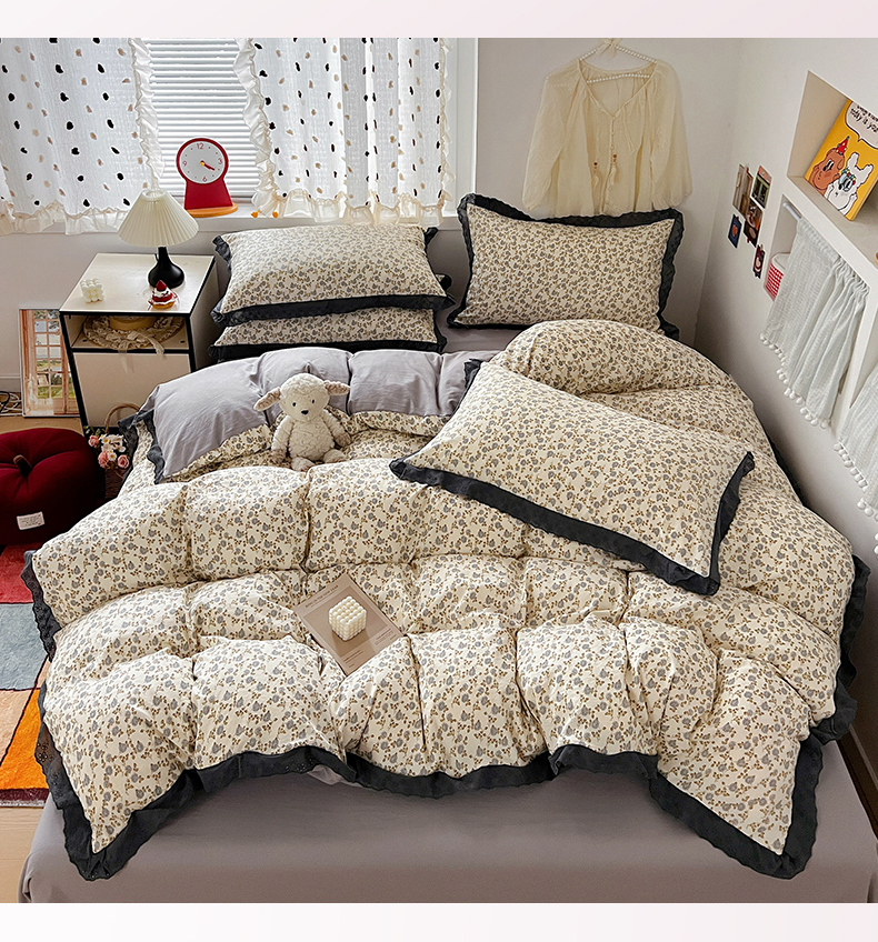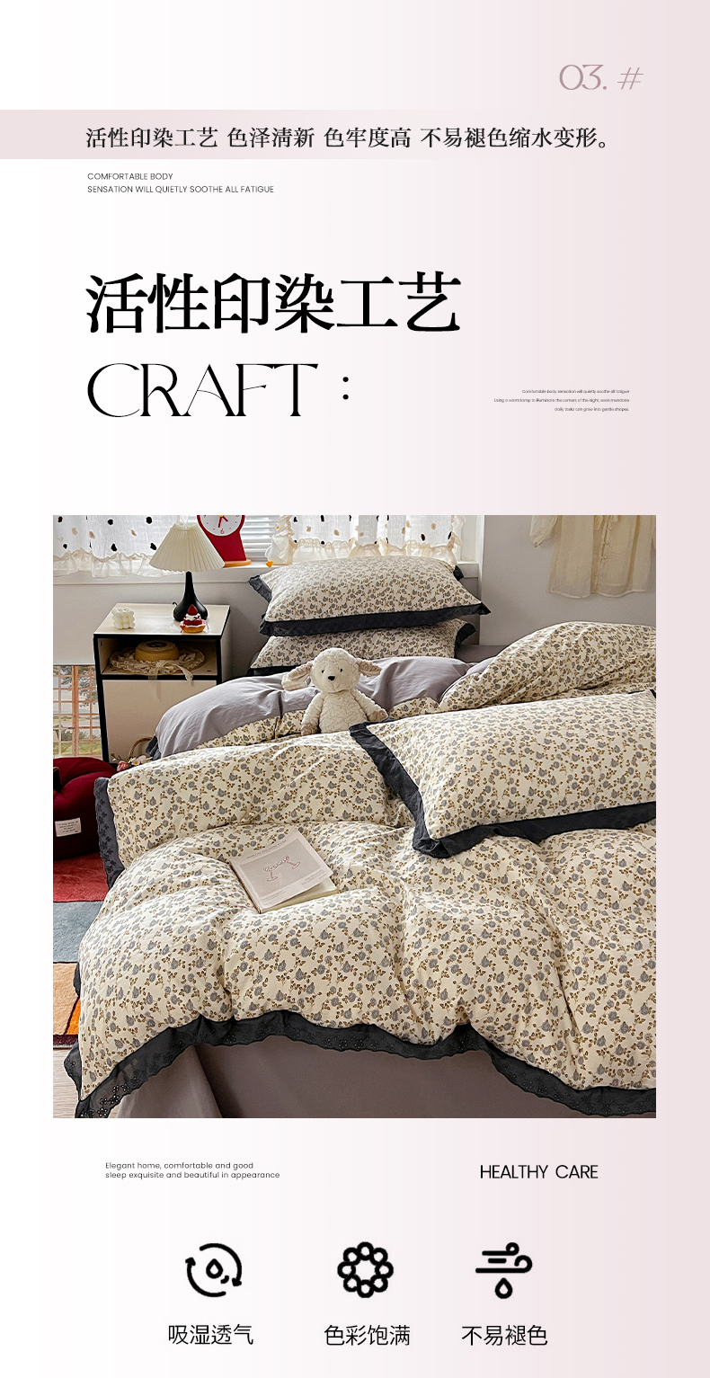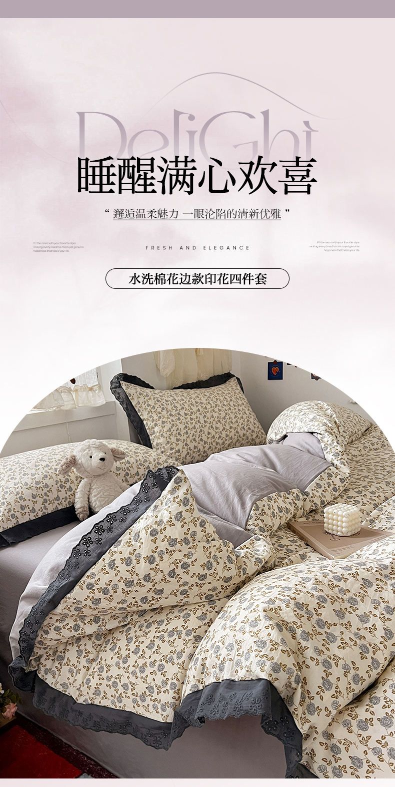 当前位置: 91家纺网 > 商品网购 > 床品套件 > 四件套 > 水洗棉四件套 > 逸林家纺《原希尔顿逸林》 2026新款春款古法水洗棉法式全棉花边四件套森系花边款四件套 兰溪