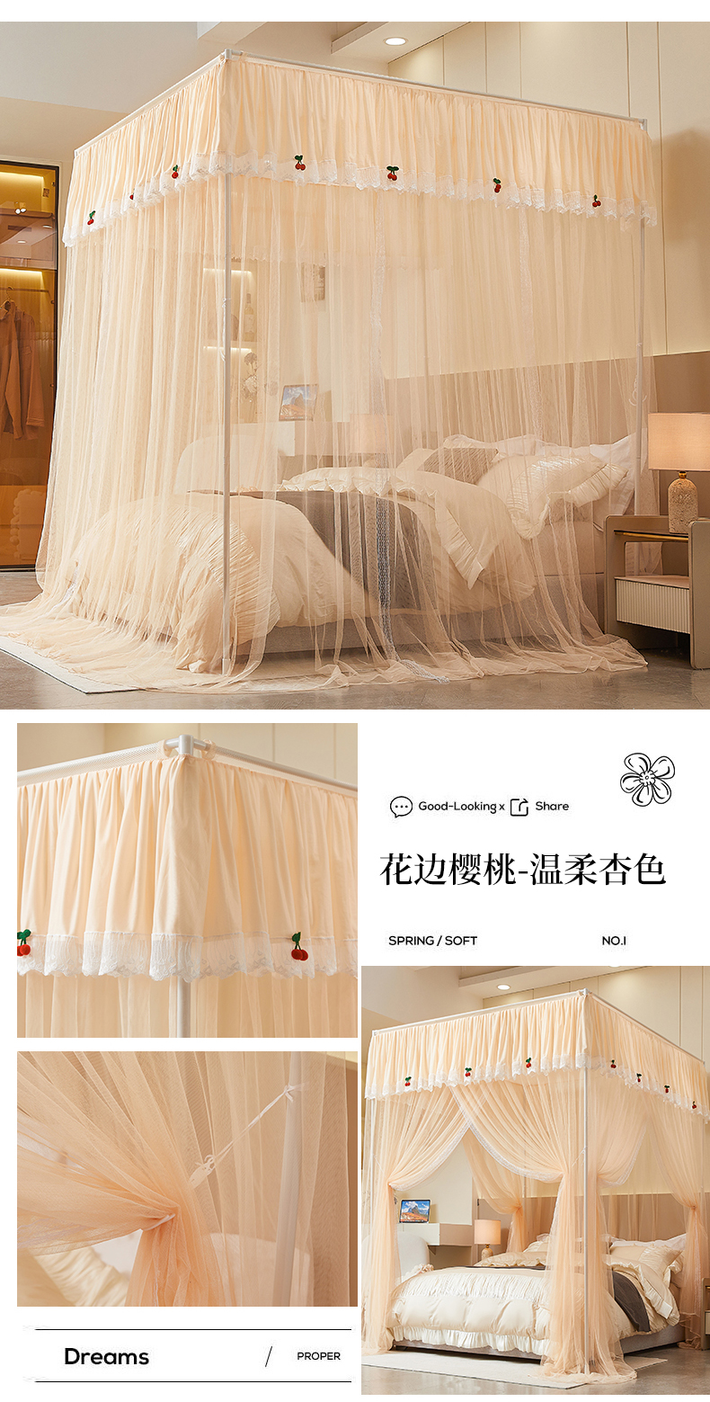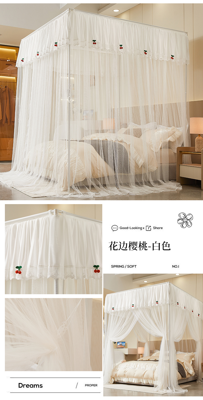 当前位置: 91家纺网 > 商品网购 > 床上用品 > 蚊帐 > 坐床式蚊帐 > 雪姿家纺 2026新款刺绣花边落地宫廷外穿杆蚊帐-落地樱桃 刺绣花边樱桃-白色