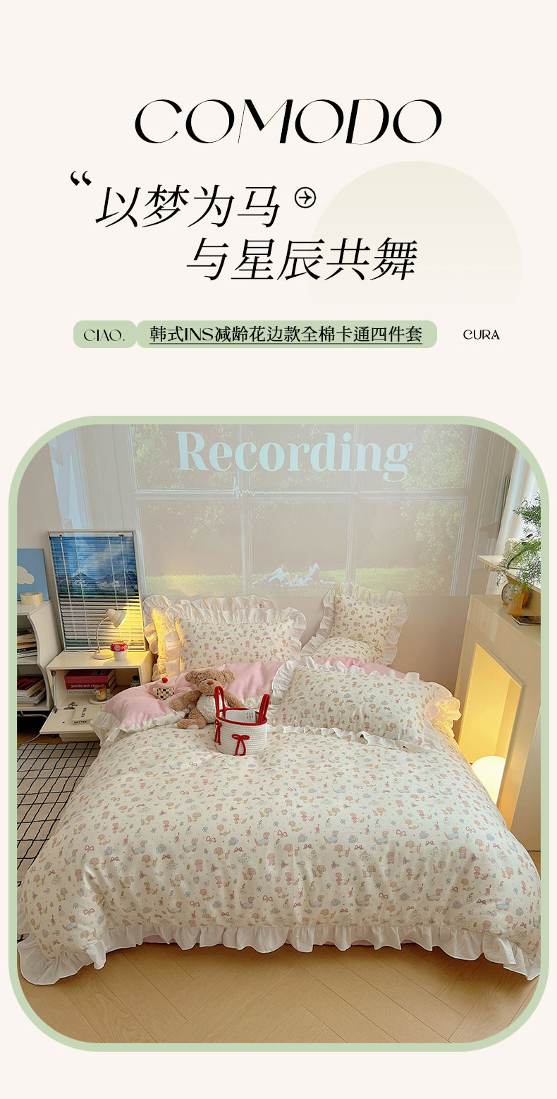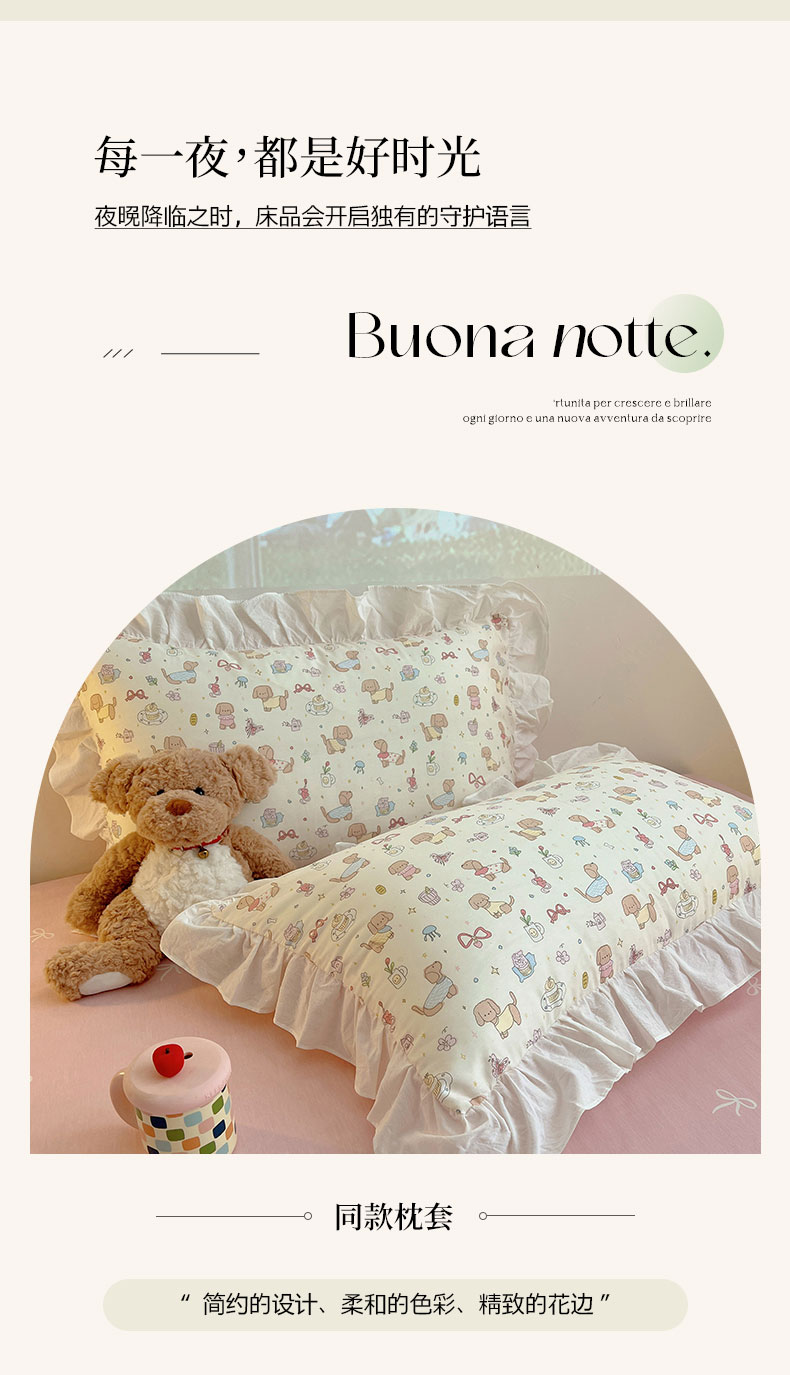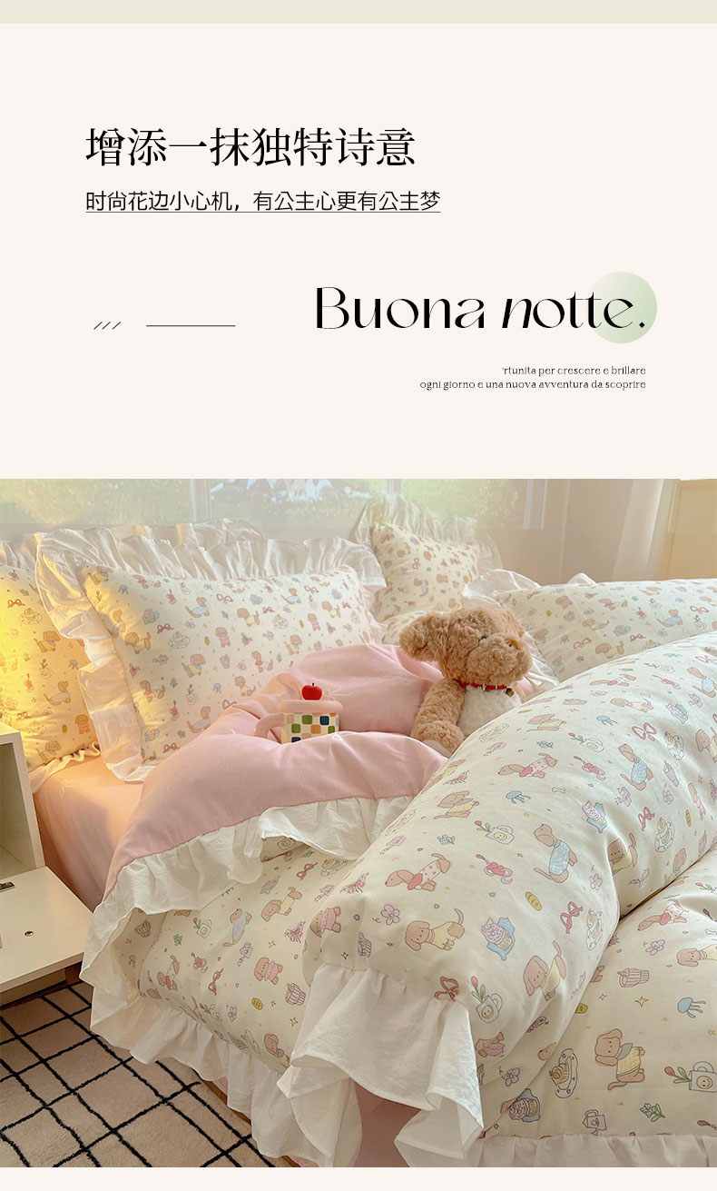 当前位置: 91家纺网 > 商品网购 > 床品套件 > 四件套 > 全棉普通四件套 > 六巷胡同 2026新款韩式INS减龄花边款全棉卡通四件套(会员-5元) 花边狗狗见面会