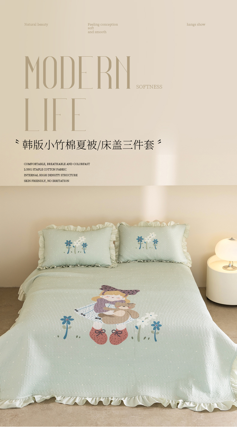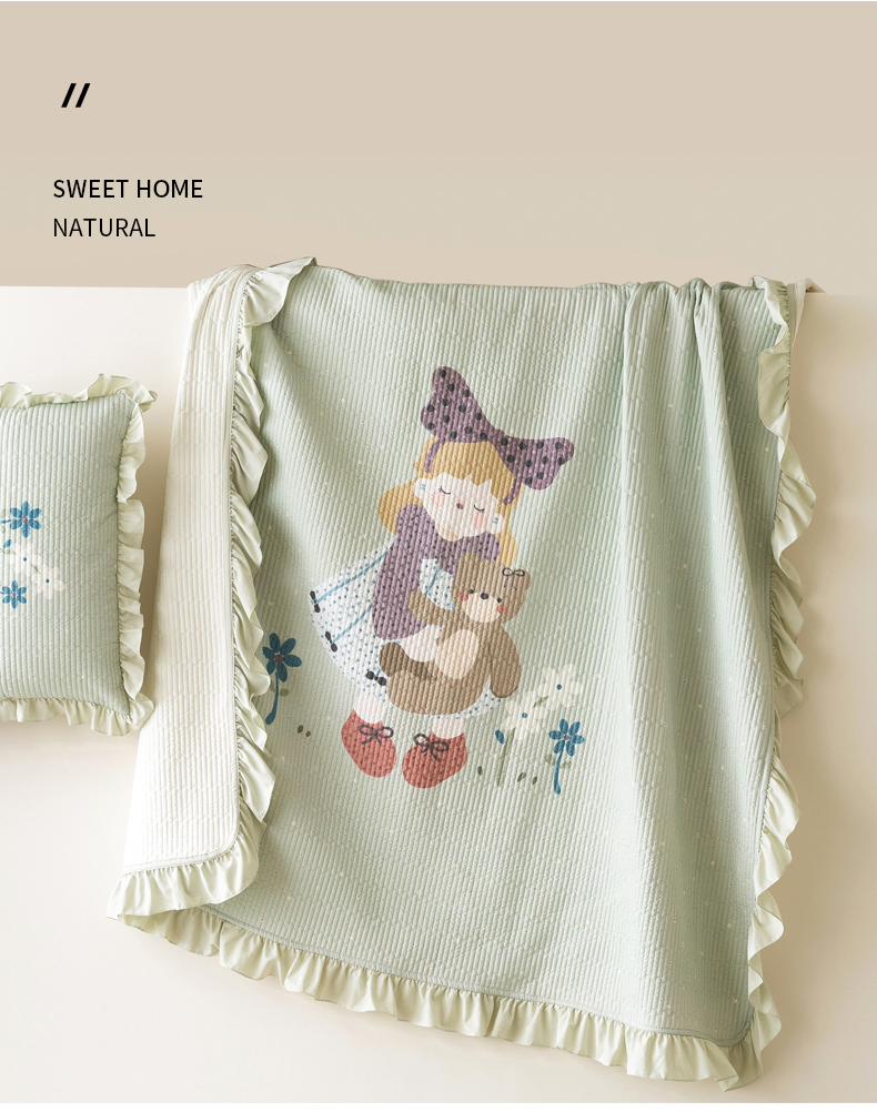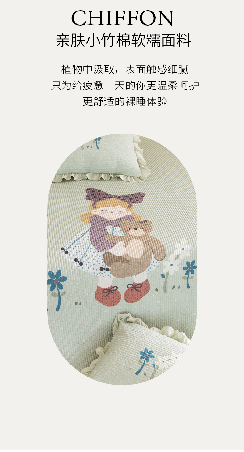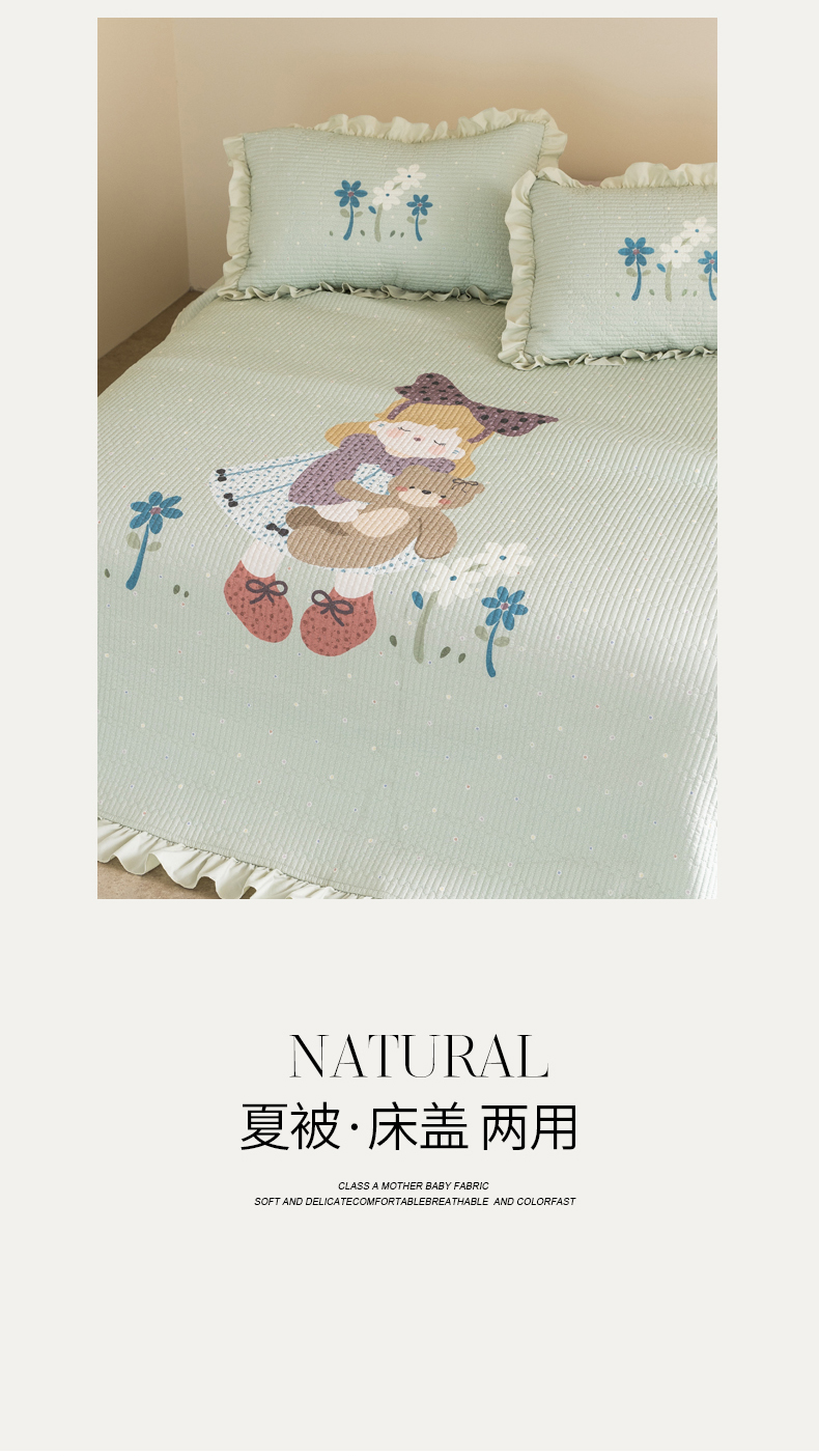 商品名称:立奥被业 2026新品古法水洗棉夏被仿棉大版床盖防棉大版夏被 公主绿