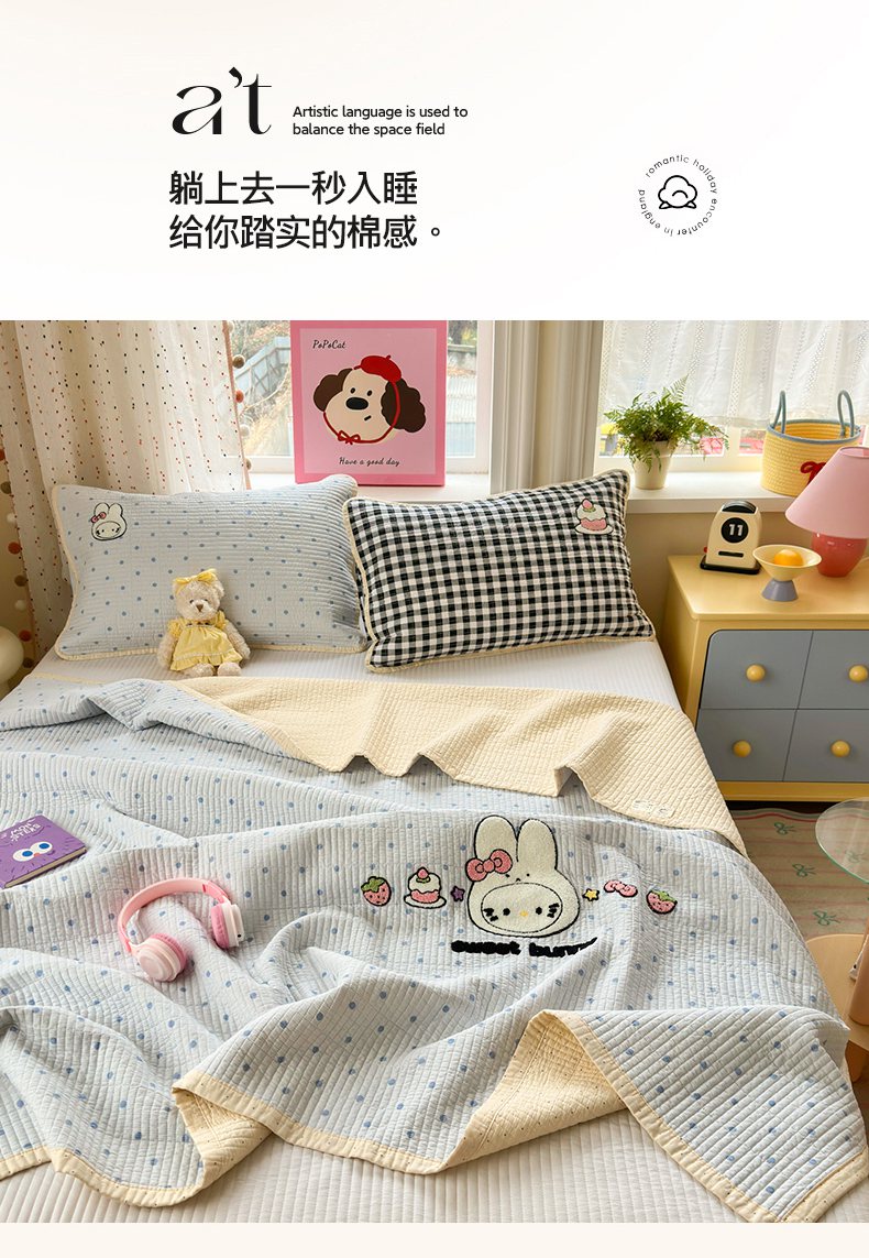 商品名称:女子家纺 2026新款双面纯棉水洗两用毛巾绣床盖四件套-第一波 床盖款-小兔花园