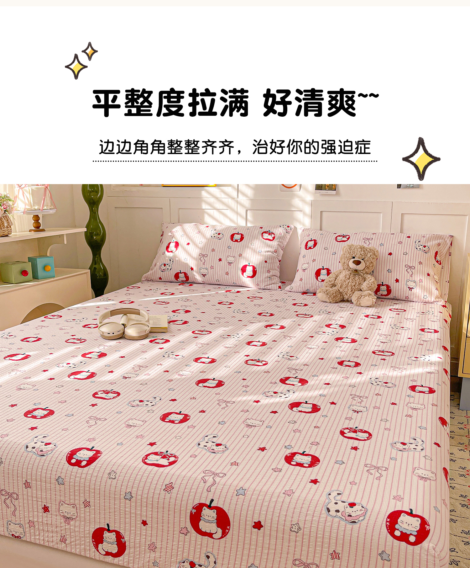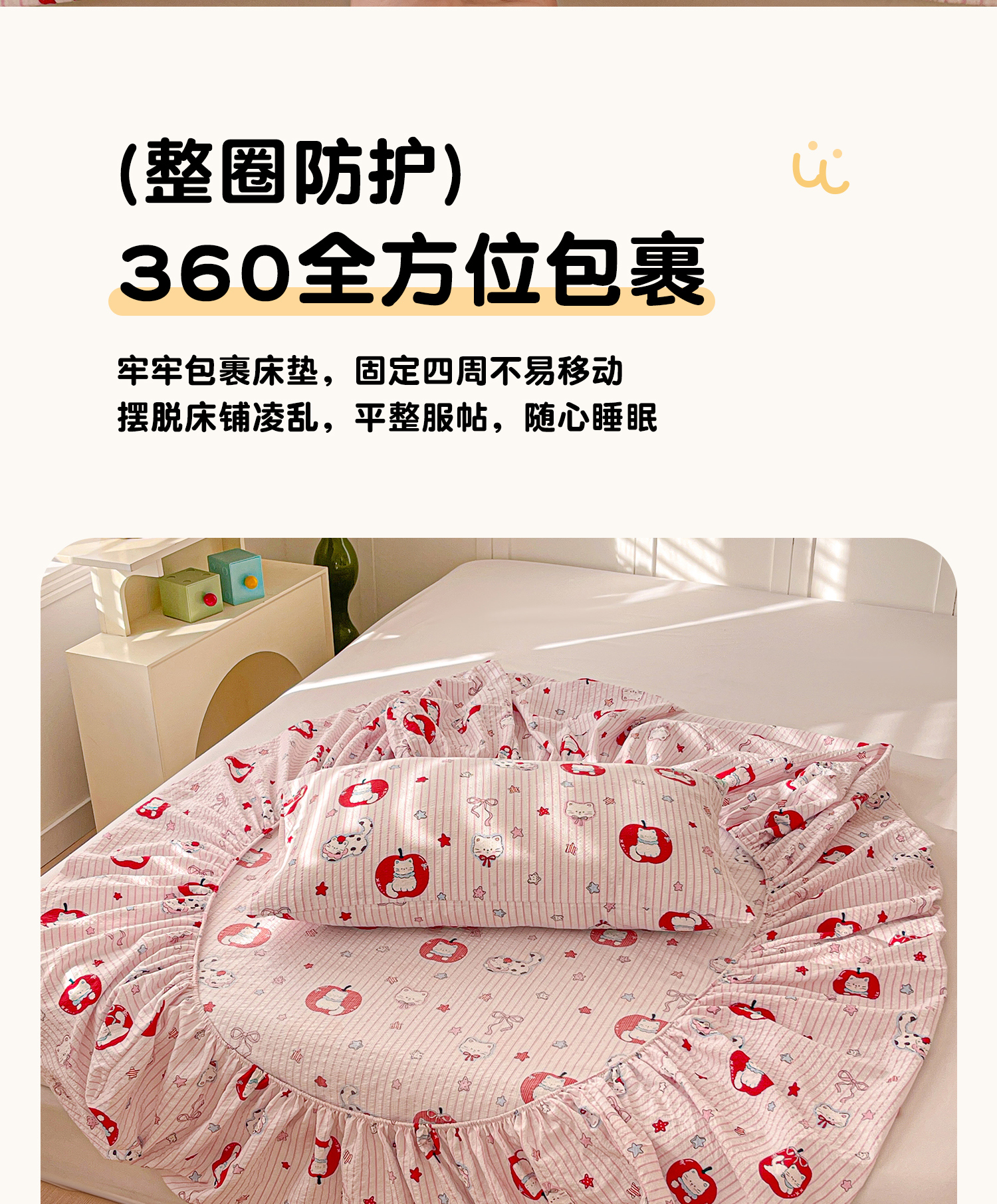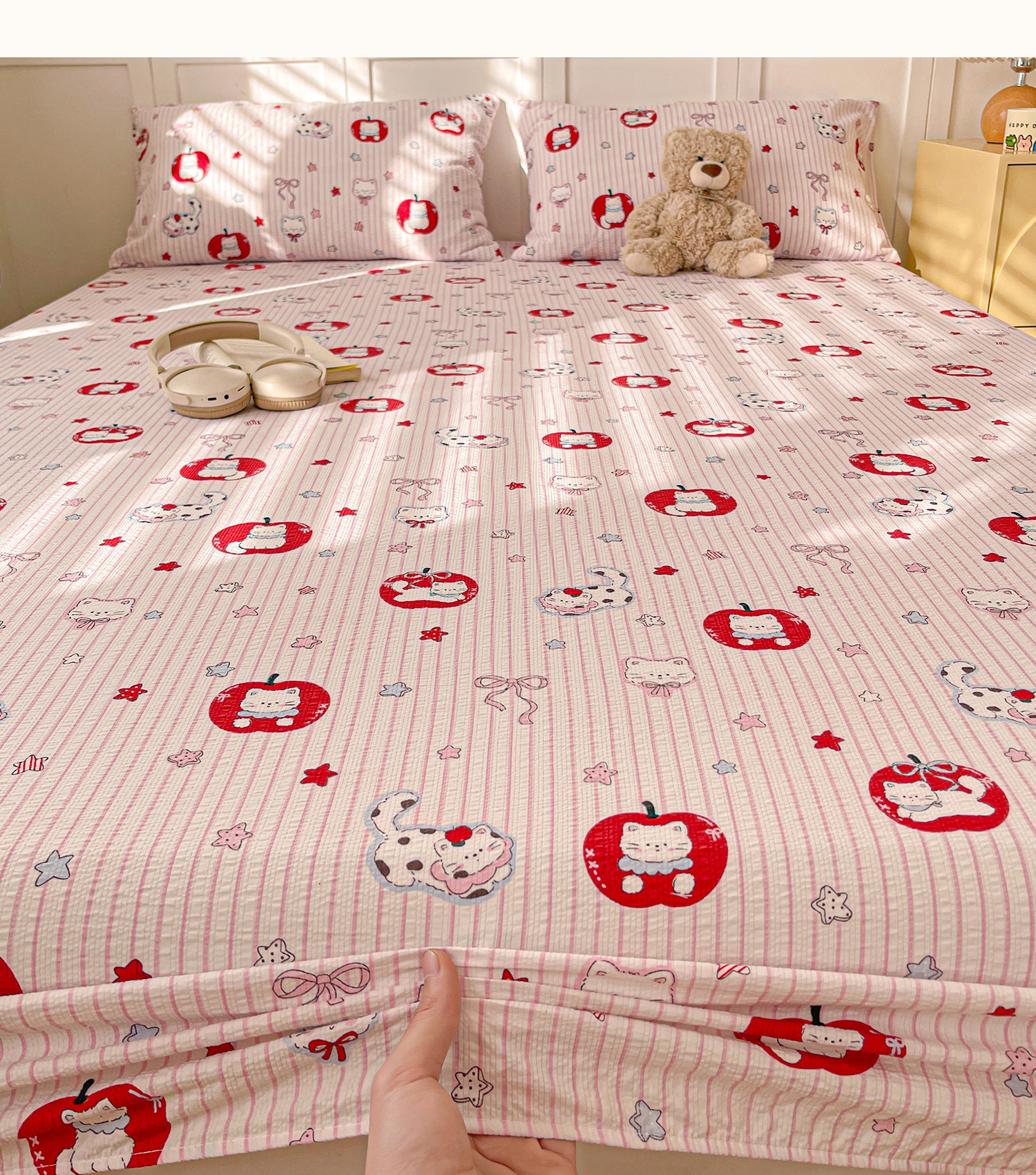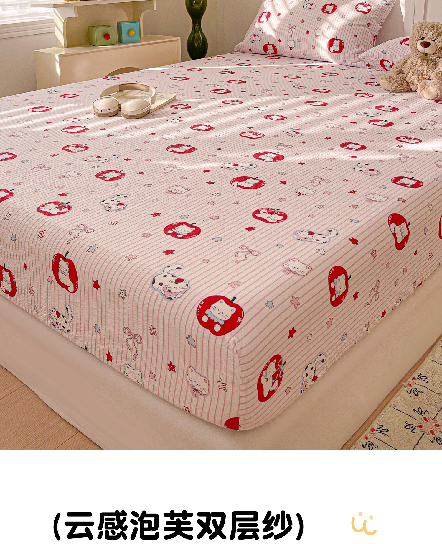 小桃姐家纺 2025新款超柔印花云感泡芙双层纱床笠单件床笠二三件套 苹果喵