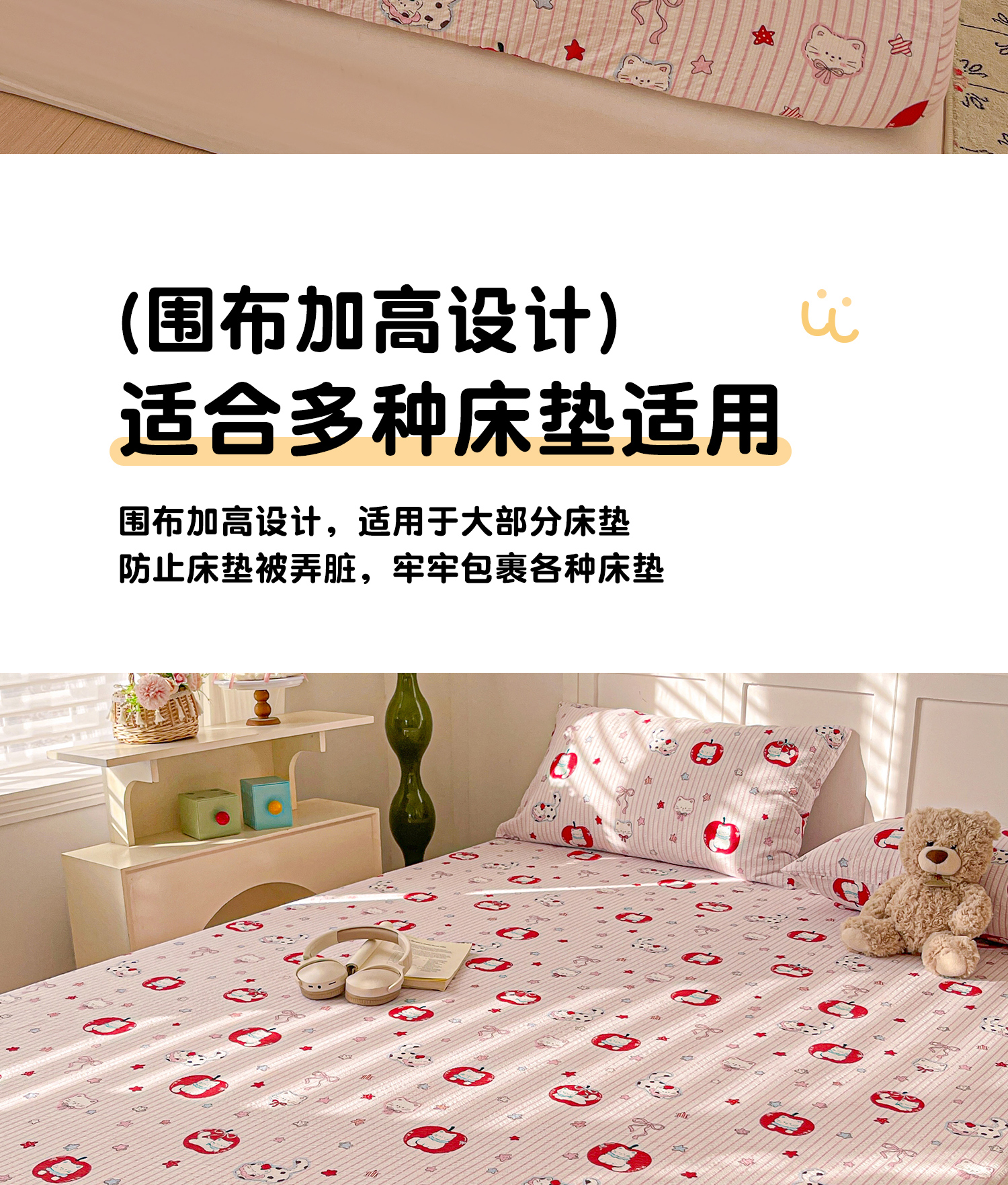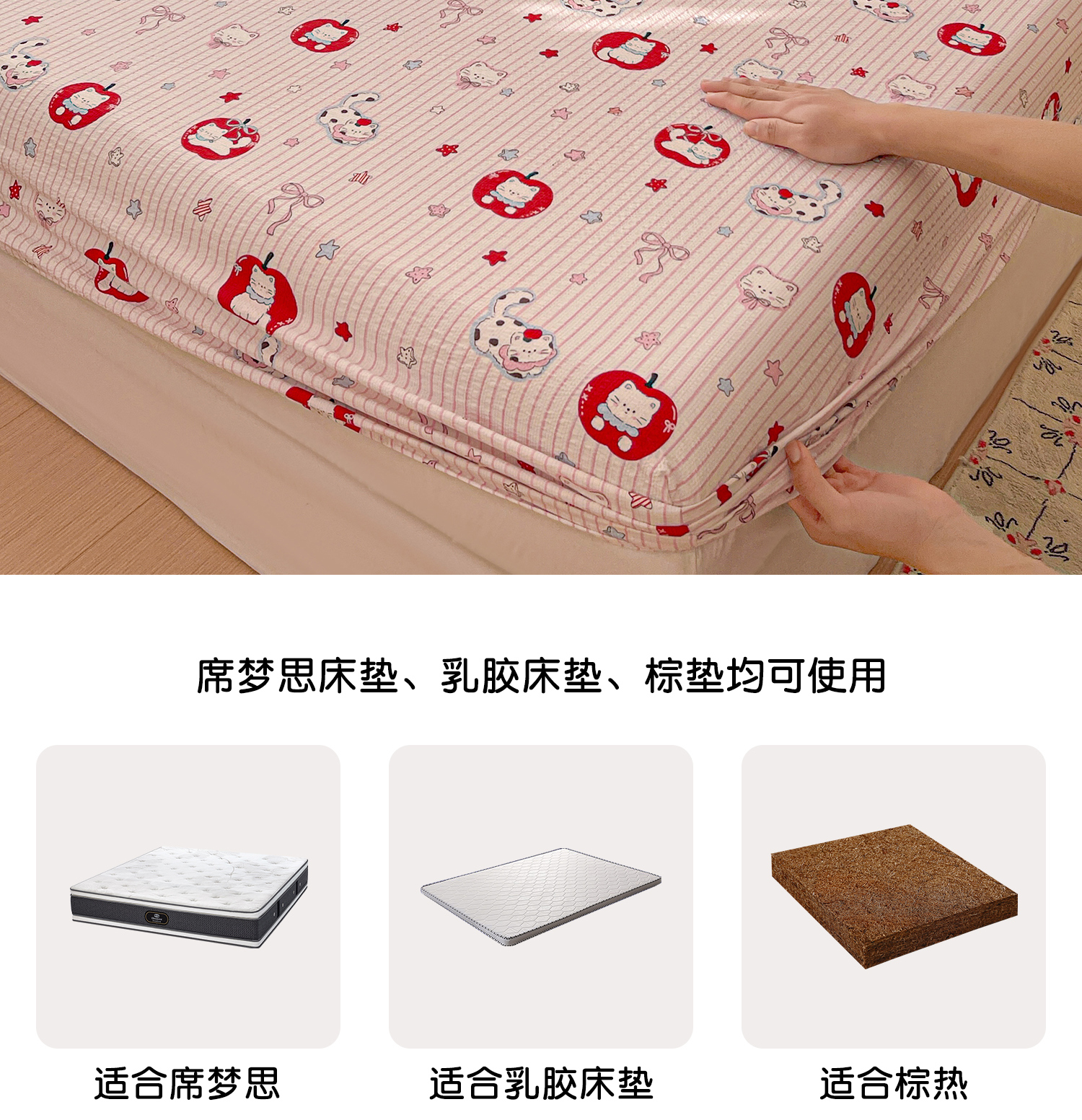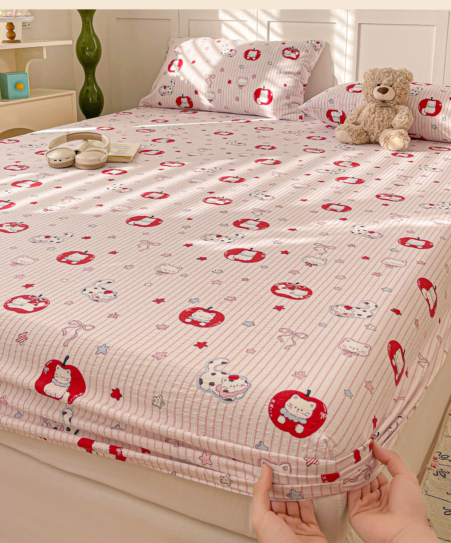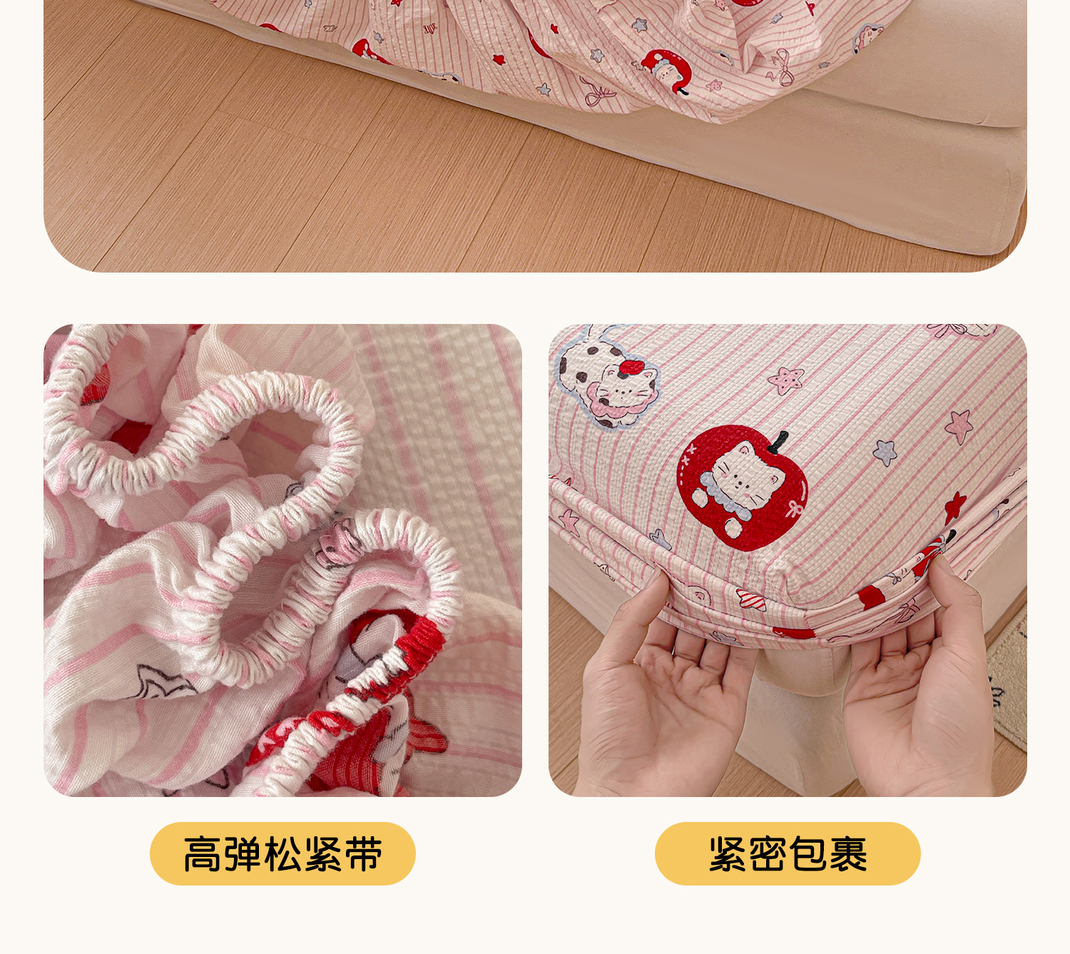 小桃姐家纺 2025新款超柔印花云感泡芙双层纱床笠单件床笠二三件套 苹果喵