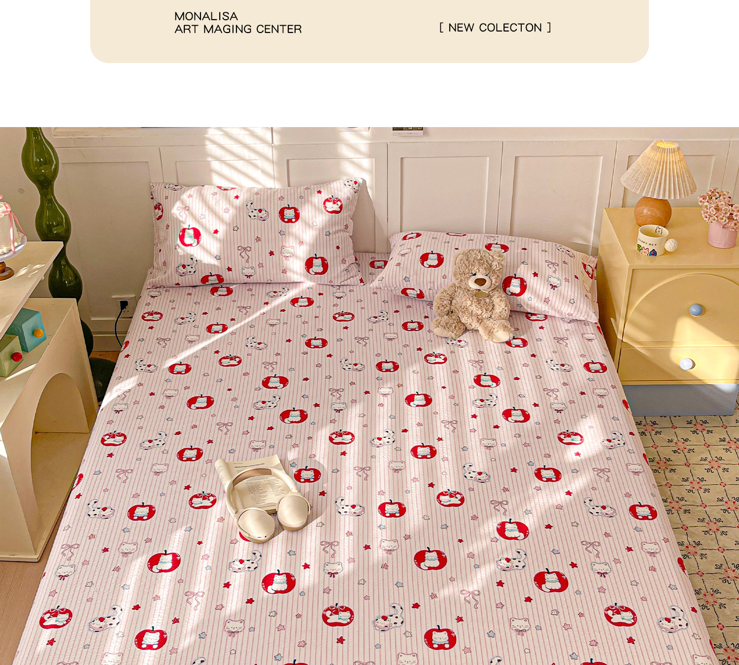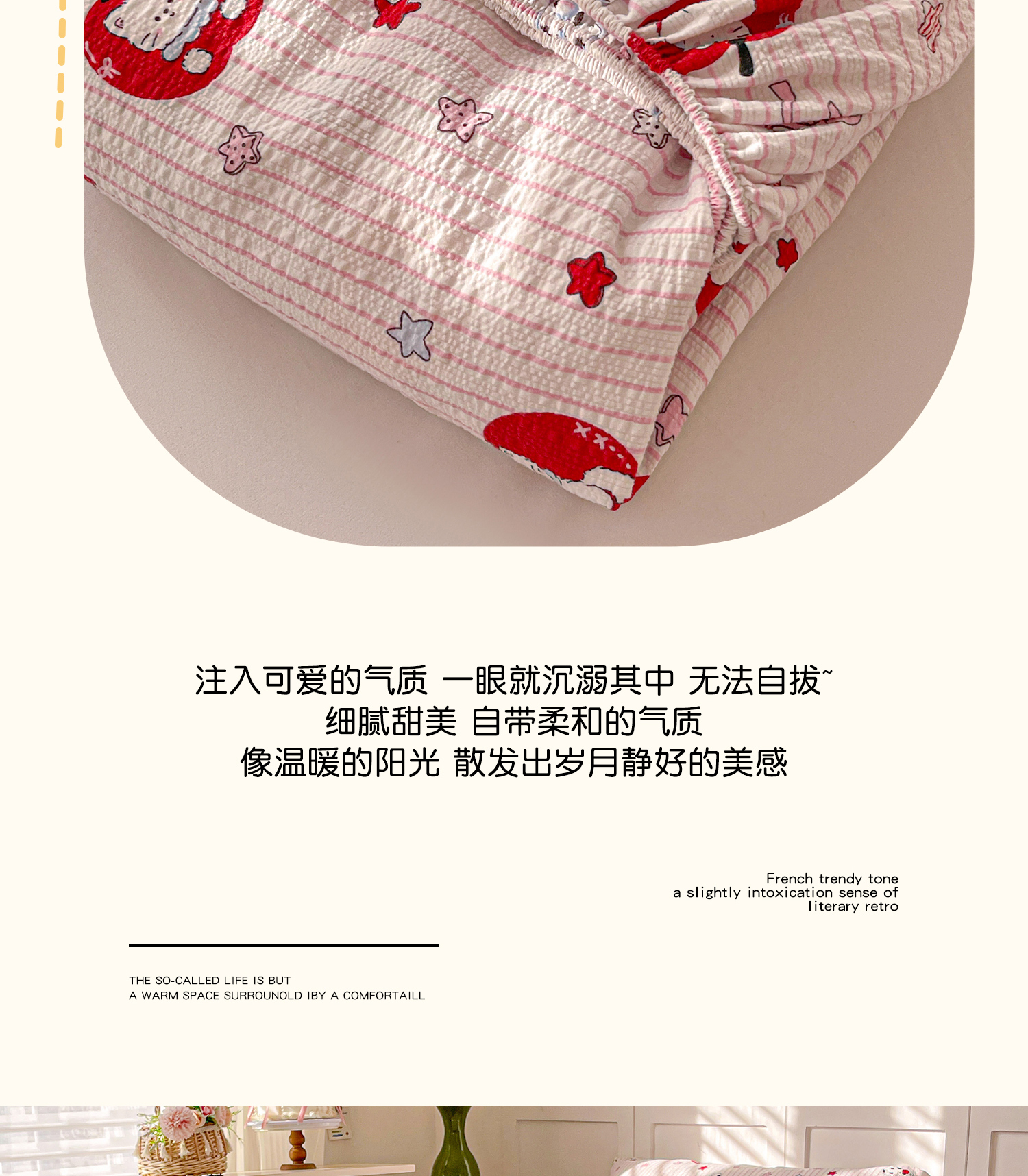 • 91家纺网 家纺一手货源 找家纺 小桃姐家纺 2025新款超柔印花云感泡芙双层纱床笠单件床笠二三件套 苹果喵