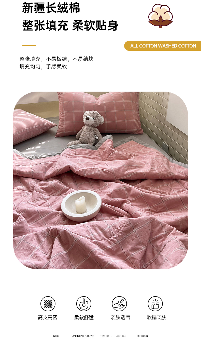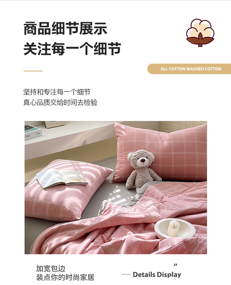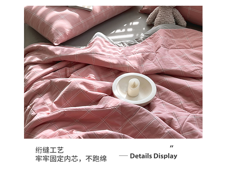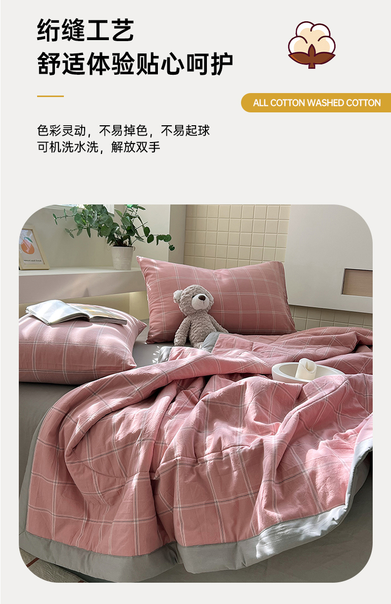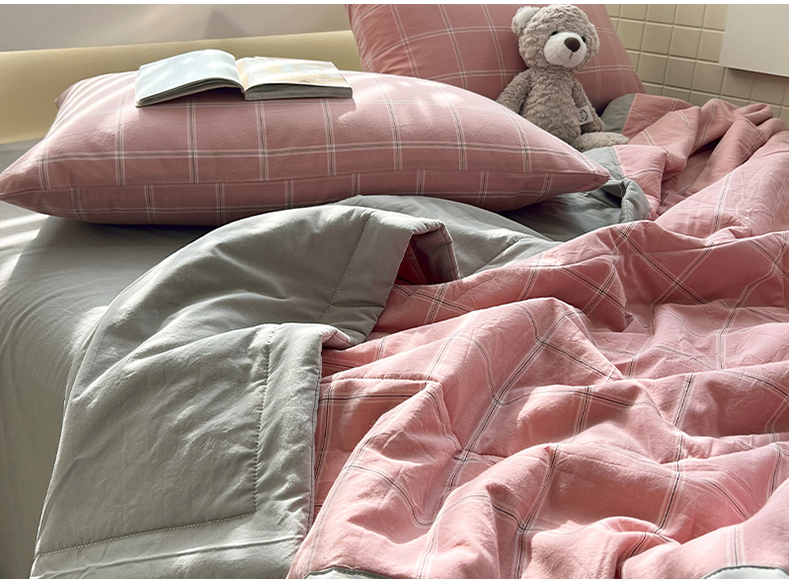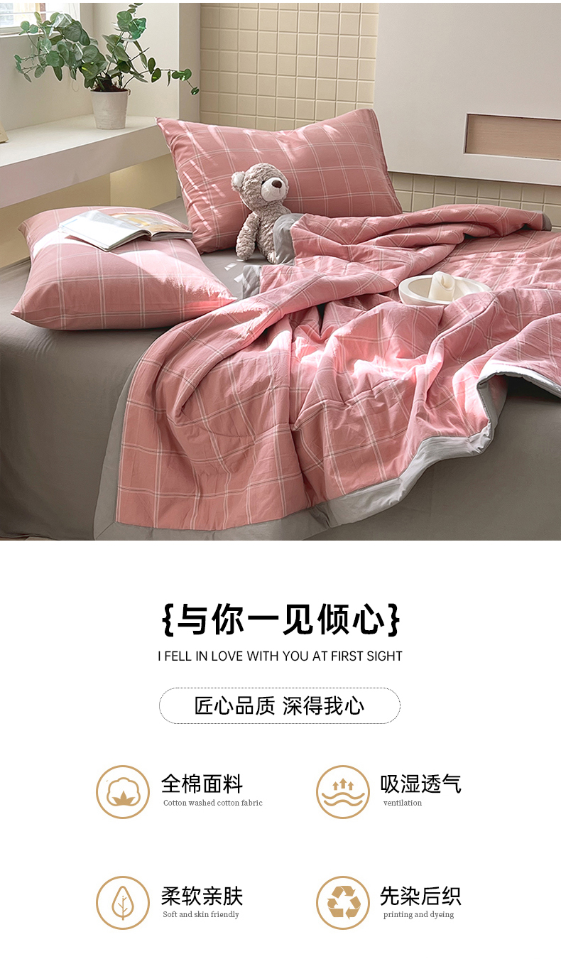 • 91家纺网 家纺一手货源 找家纺 春皖家纺 2026春夏新款全棉色织水洗棉夏被夏凉被空调被-云恋系列 云恋-格韵粉