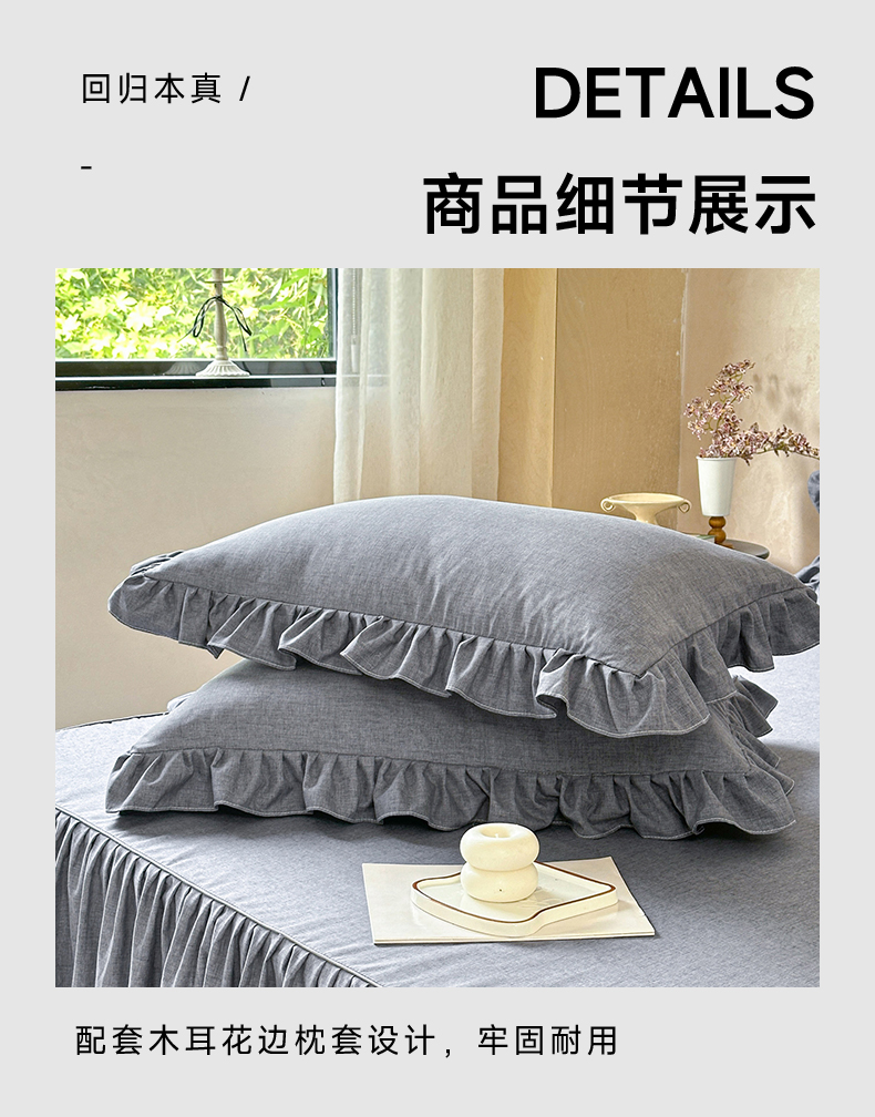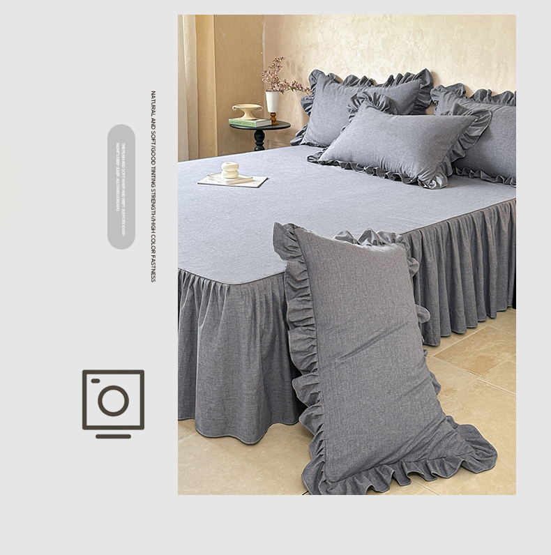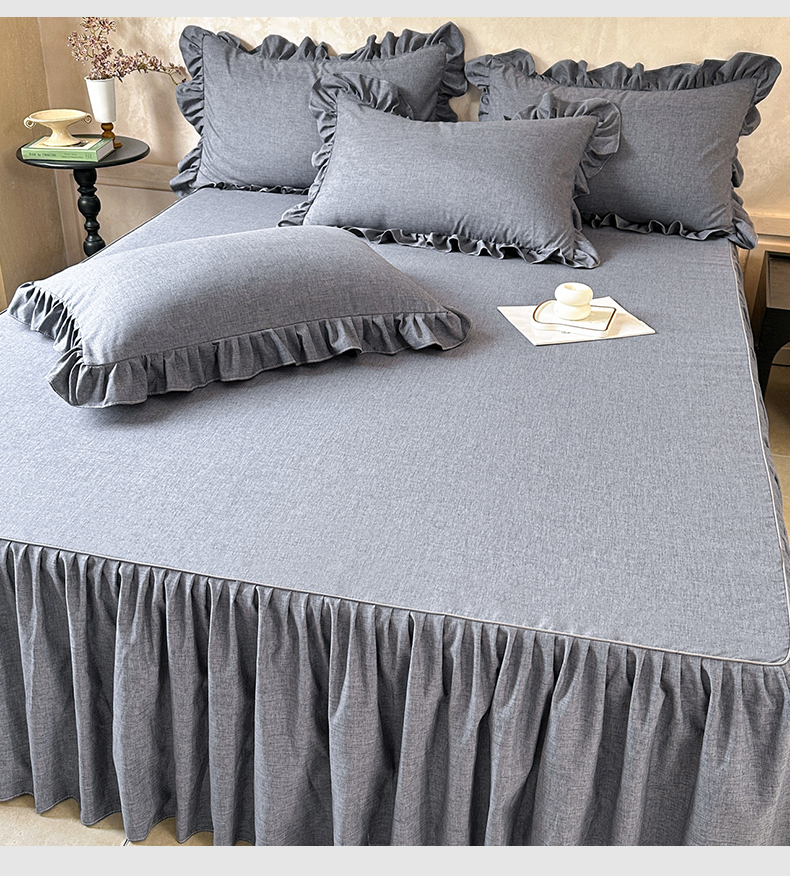 (总)忘忧草 2025新款色织水洗全棉床笠式床裙夹棉款纯棉花边床笠-花颜系列,花颜-白,花颜-粉,花颜-灰,花颜-咖,花颜-蓝,花颜-绿