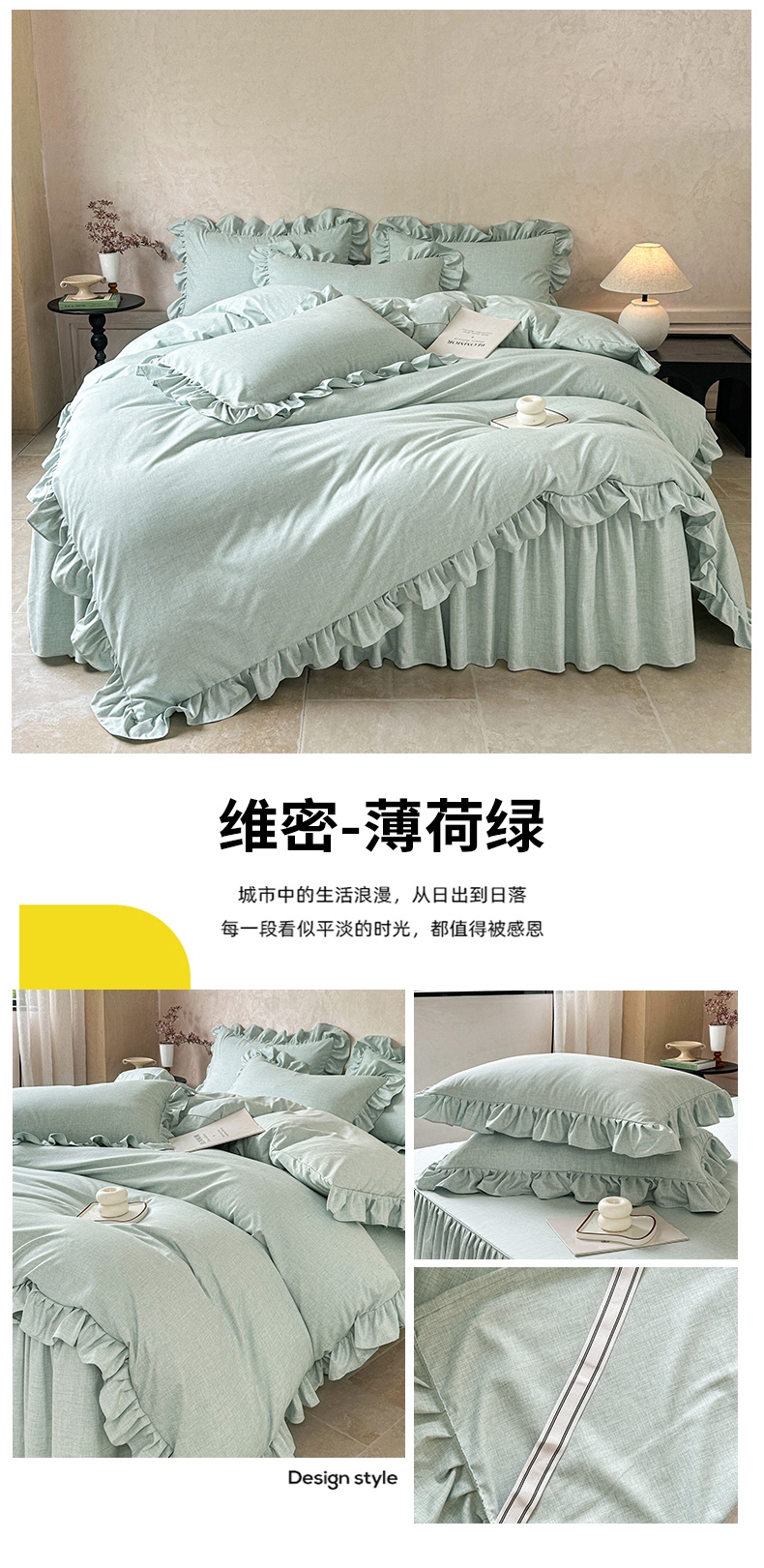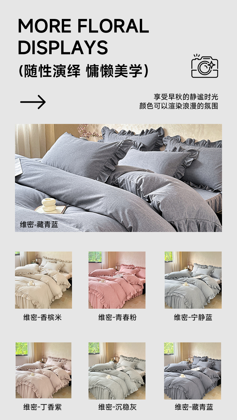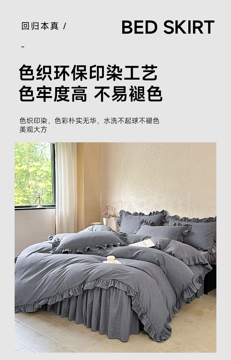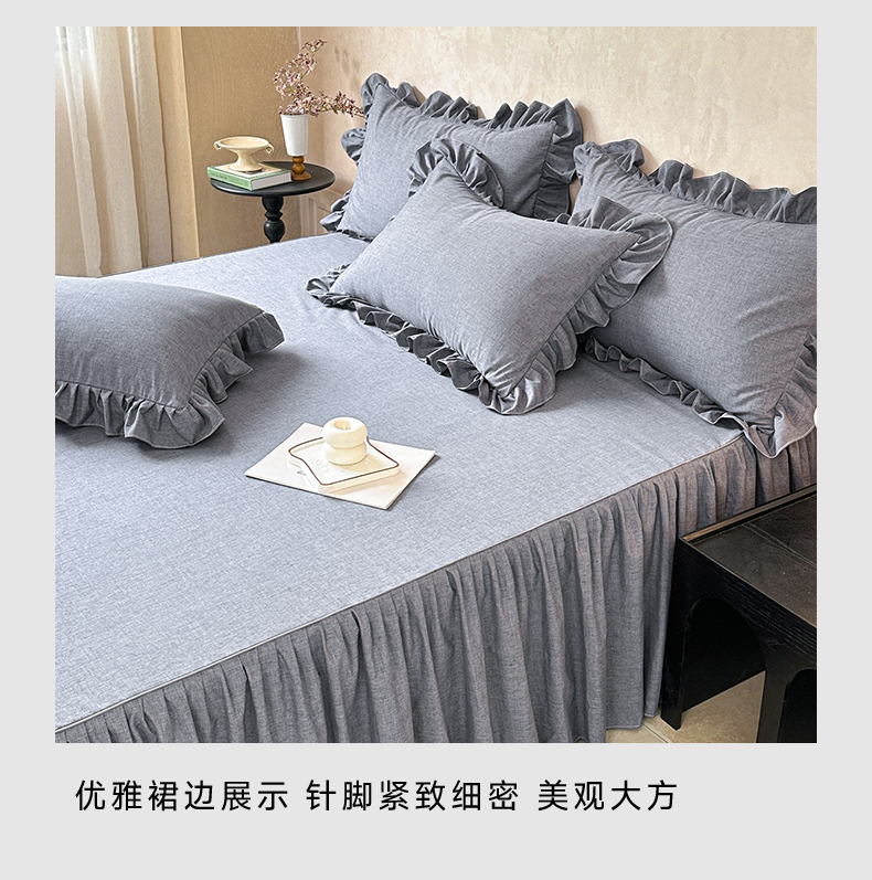 (总)忘忧草 2026新款纯色色织芙蓉棉床裙四件套-维密系列,维密-香槟米,维密-薄荷绿,维密-藏青蓝,维密-沉稳灰,维密-丁香紫,维密-宁静蓝,维密-青春粉