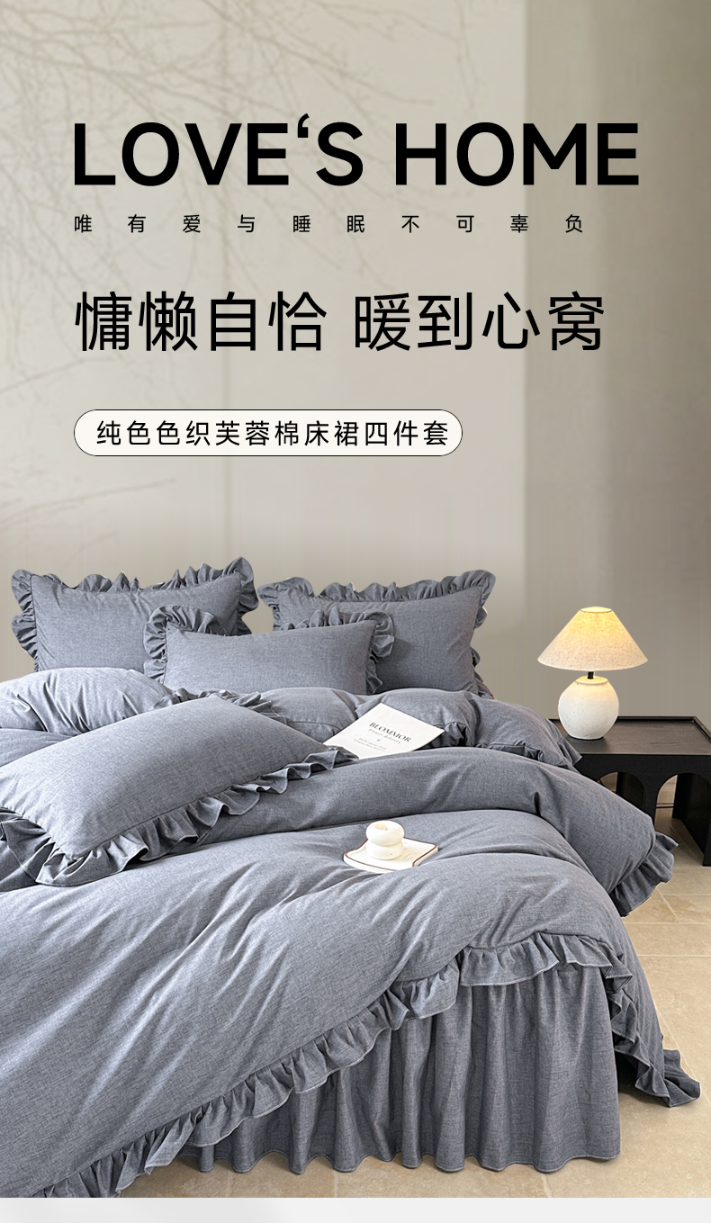 忘忧草 2026新款纯色色织芙蓉棉床裙四件套-维密系列 维密-藏青蓝