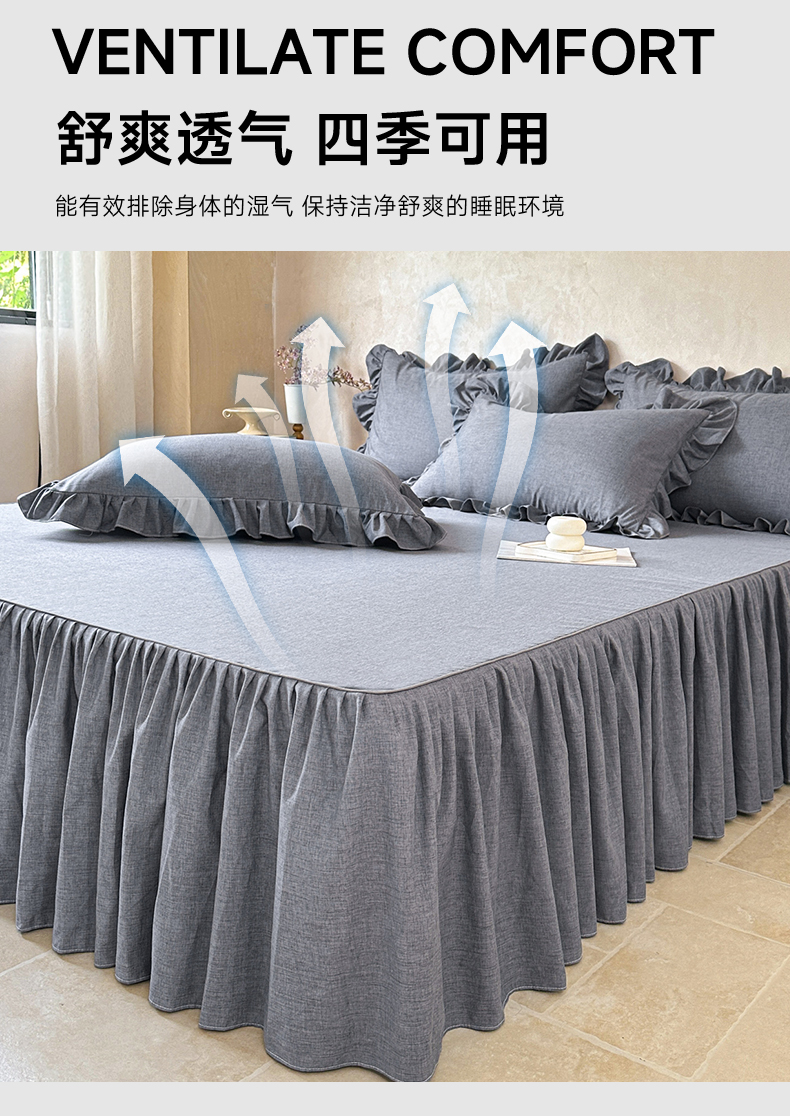 (总)忘忧草 2026新款纯色色织芙蓉棉单床裙-维密系列,维密-香槟米,维密-薄荷绿,维密-藏青蓝,维密-沉稳灰,维密-丁香紫,维密-宁静蓝,维密-青春粉