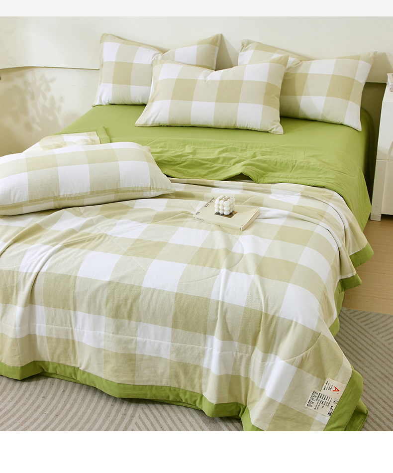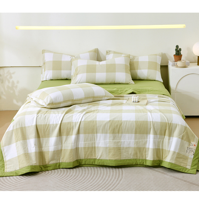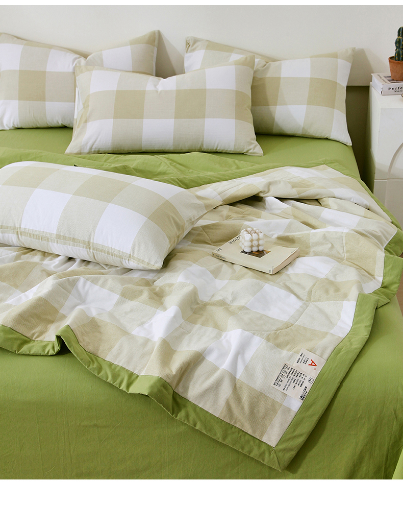 • 91家纺网 家纺一手货源 找家纺 春皖家纺 2026新款全棉色织宽边棉花夏被-云恋 云恋-芳青绿