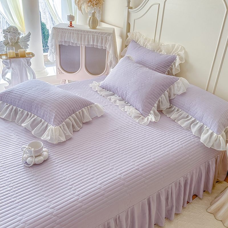 (总)网红馆 2025新款蕾丝花边全棉床裙晨暮花间系列,绯红,粉色,麦绿,米色,浅紫,雾蓝