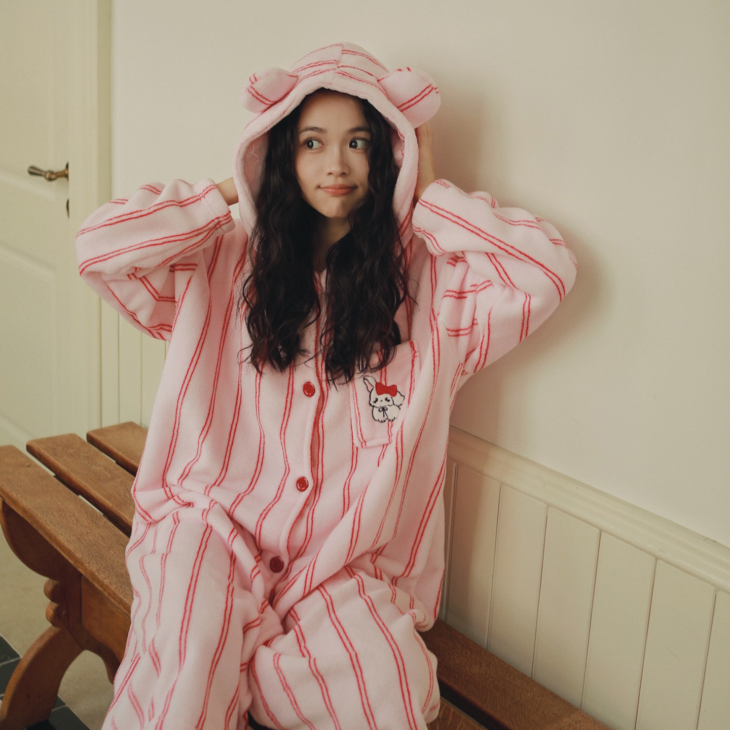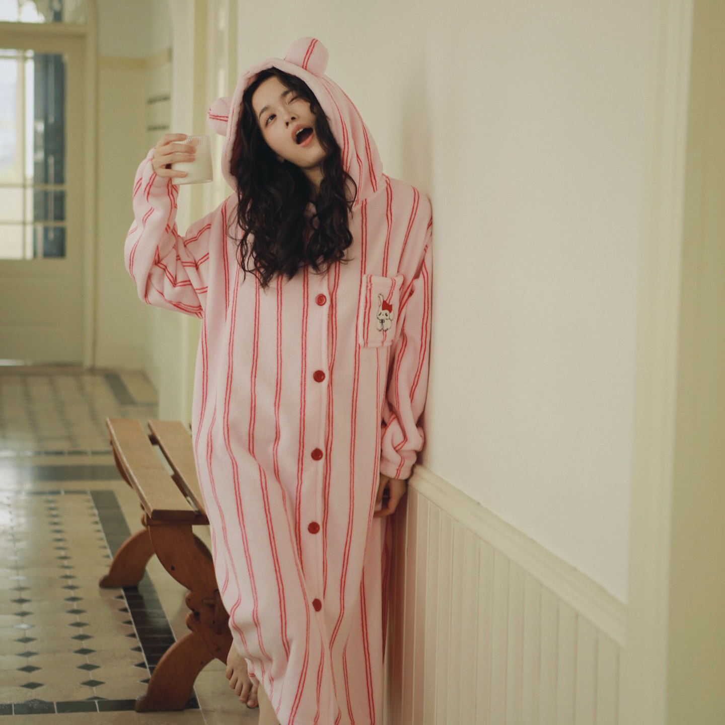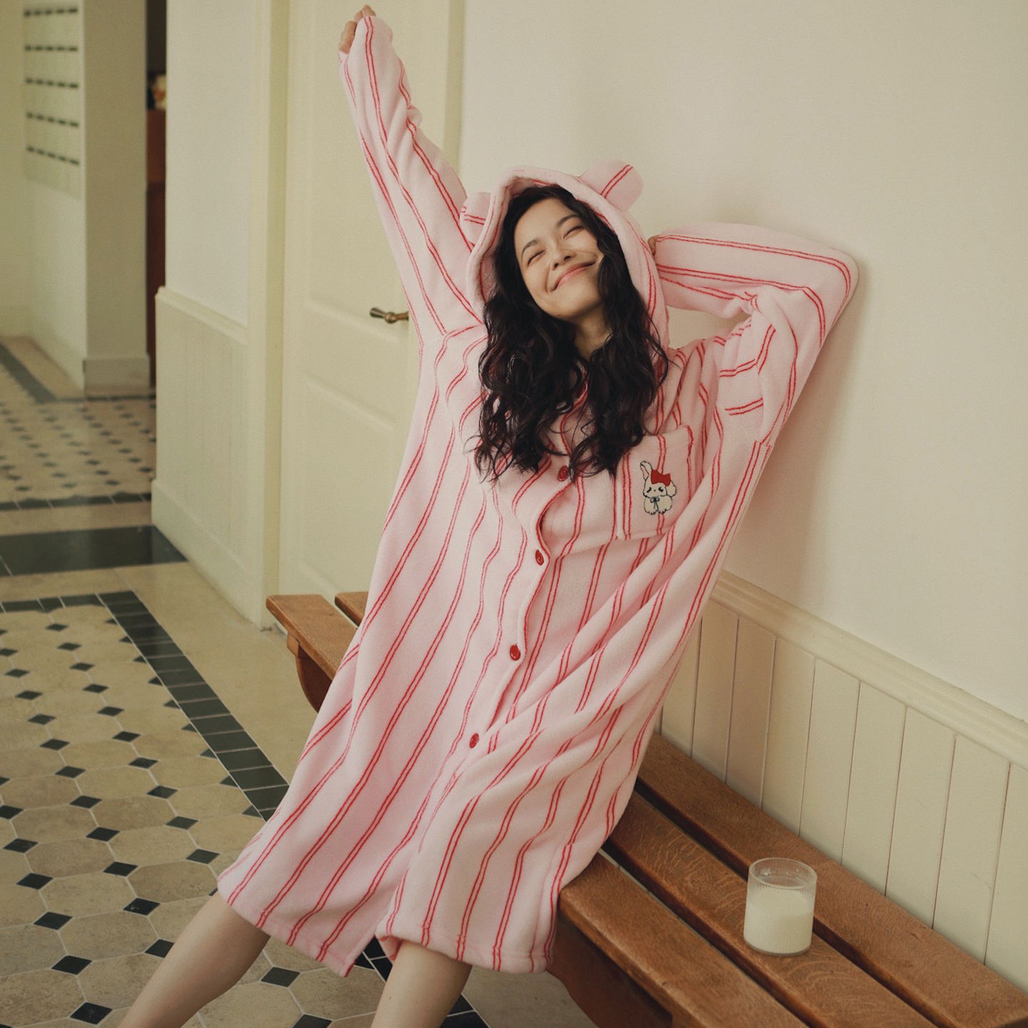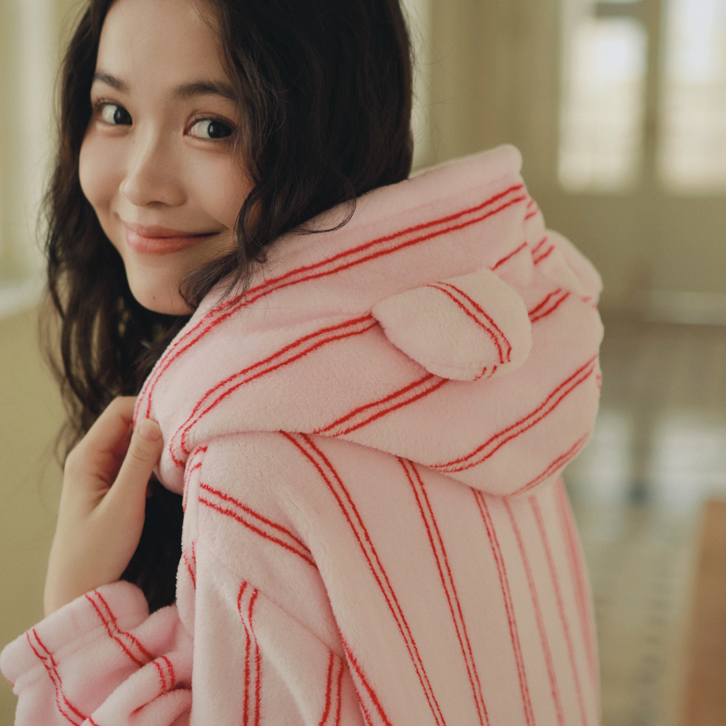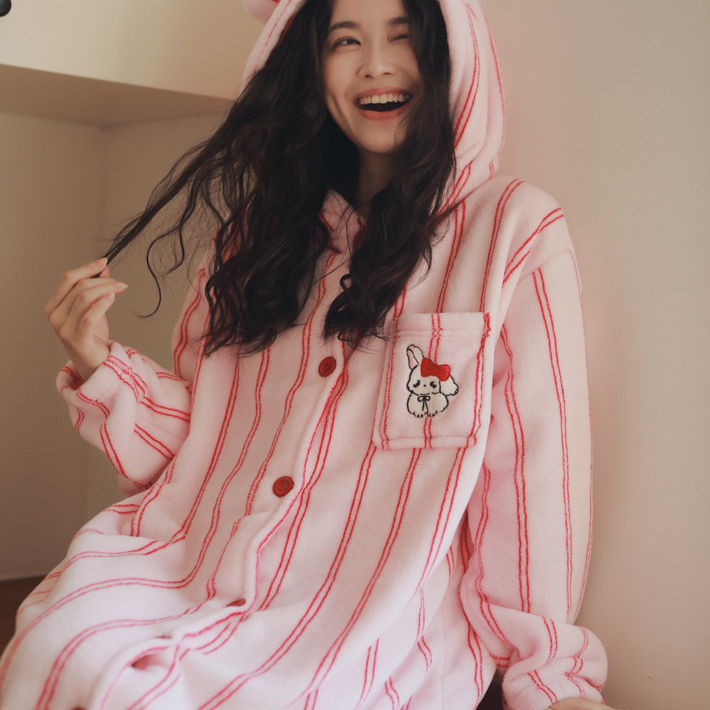 (总)妍景家居生活馆 2026新款法兰绒刺绣粉条连帽款