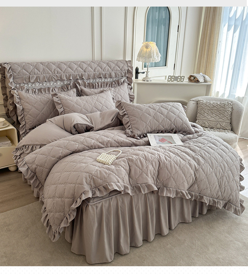 (总)源梦家纺 2024新款幸运草夹棉床裙四件套,纯白,大红,粉色,灰色,兰色,米黄,玉色,豆沙