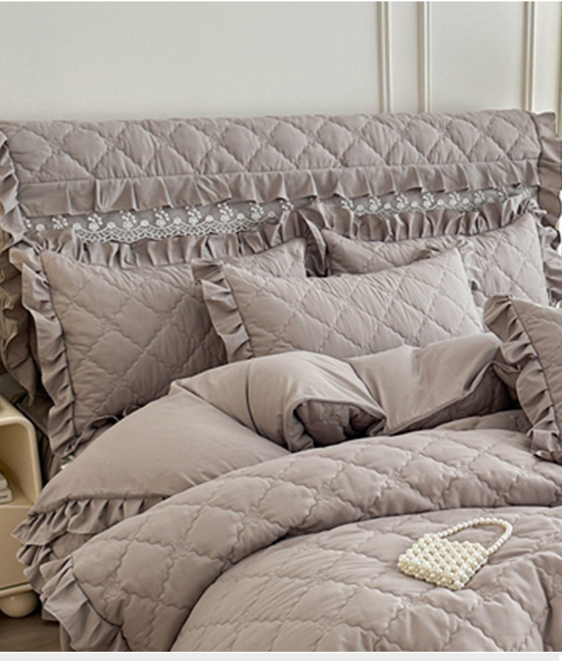(总)源梦家纺 2024新款幸运草夹棉单床裙,纯白,大红,豆沙,粉色,灰色,兰色,米黄,玉色