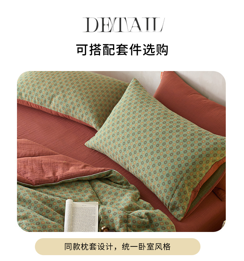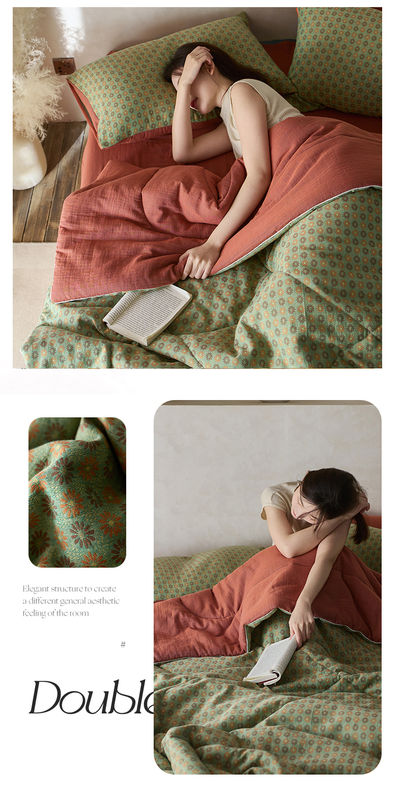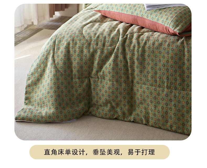春皖家纺 2026新款全棉双层提花夏被四件套 夏洛克绿