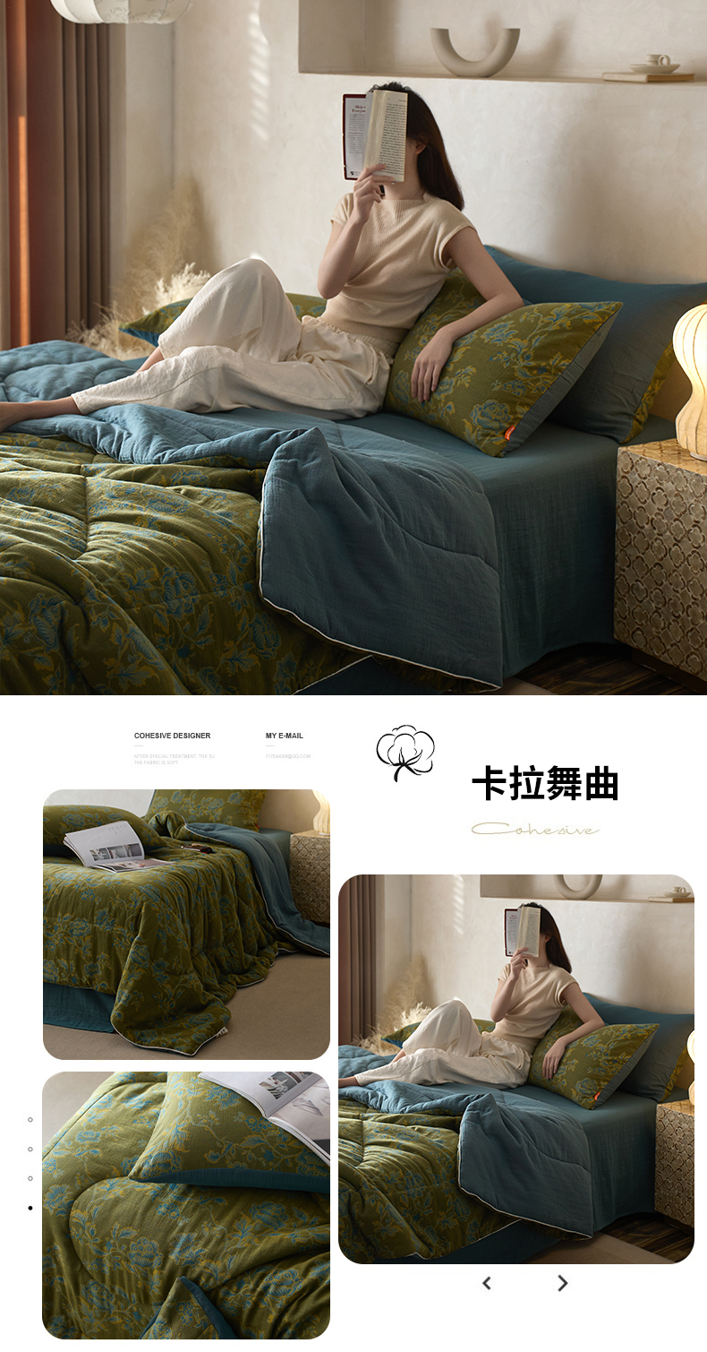 • 91家纺网 家纺一手货源 找家纺 春皖家纺 2026新款全棉双层提花夏被四件套 夏洛克绿