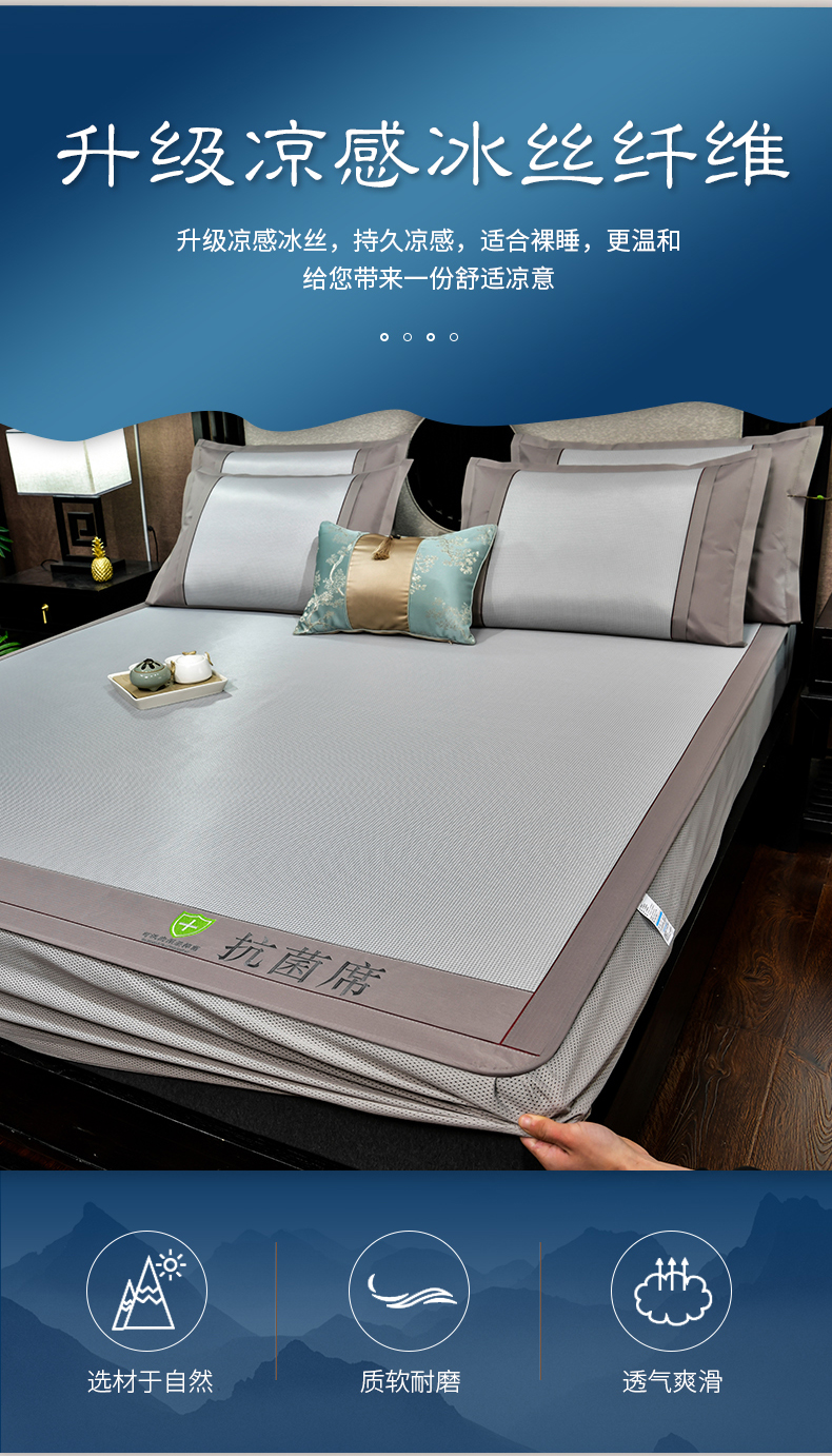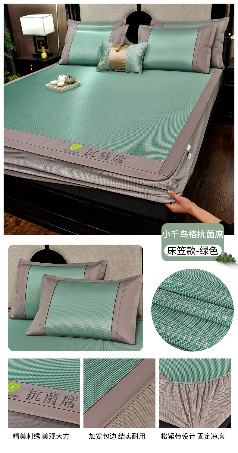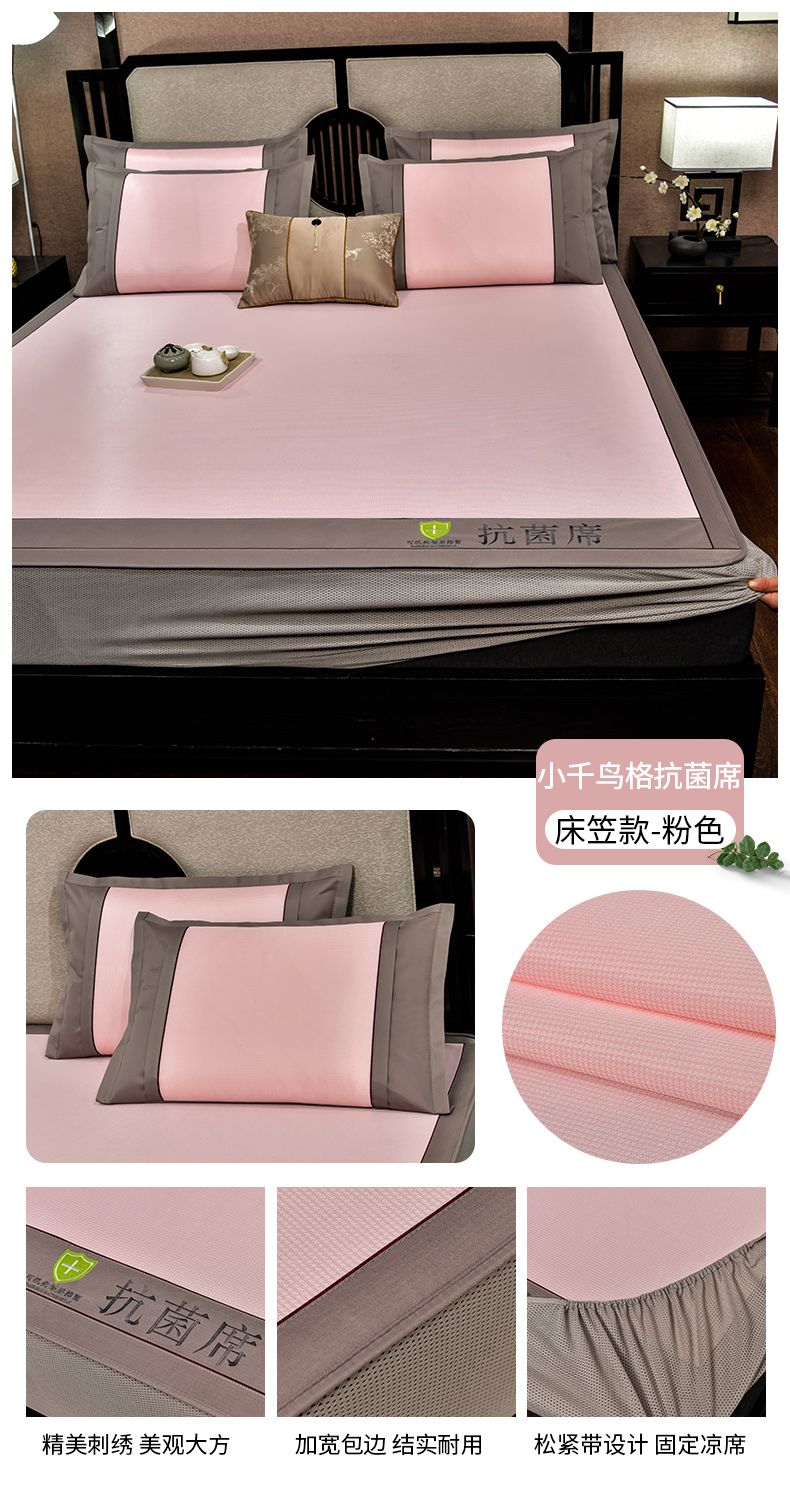(总)2023新款超精密冰丝席-小斜纹系列-床笠款藤席凉席竹席,粉色,蓝色,绿色,银灰
