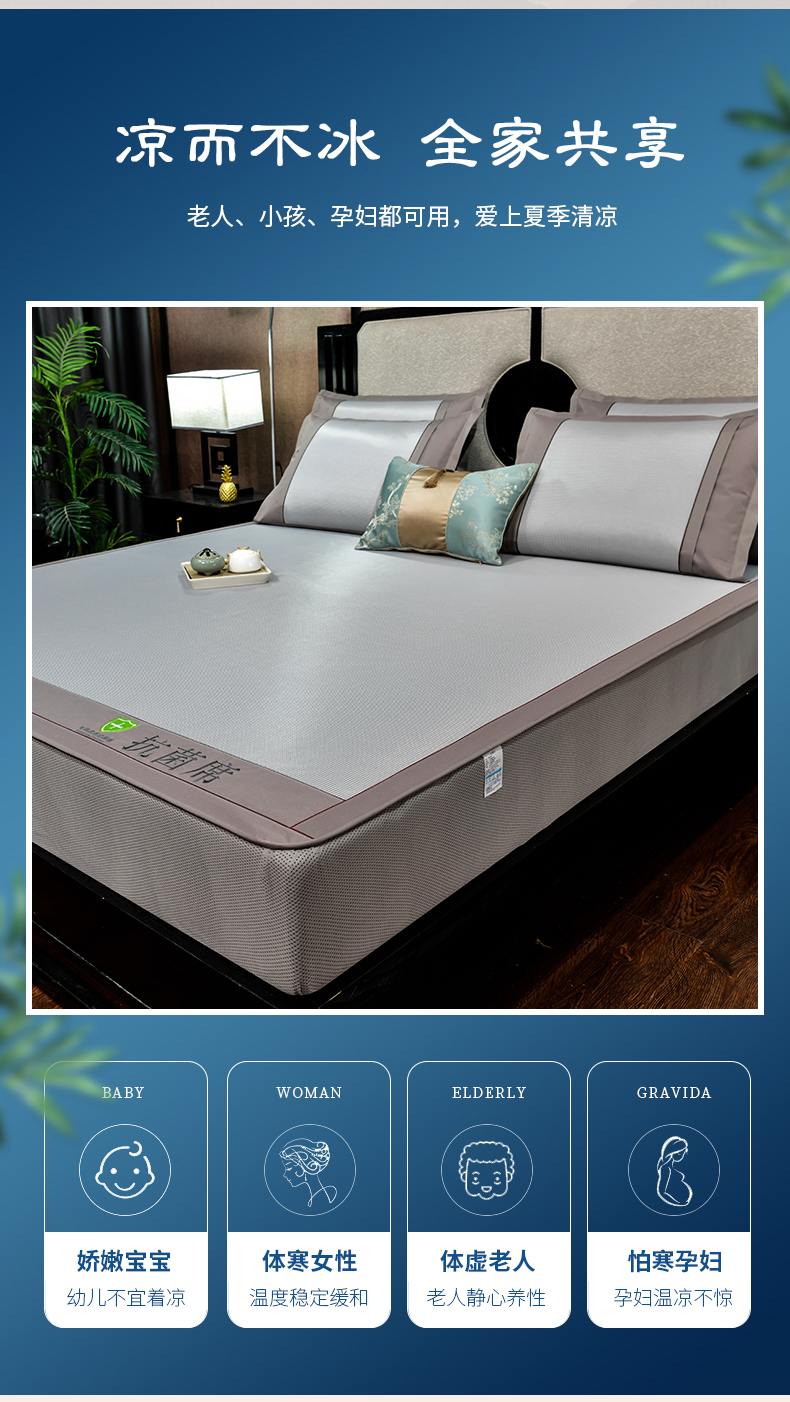 2023新款夏日冰点-冰藤双面席凉席藤席竹席冰丝席乳胶席,咖色,蓝色,绿色,香槟