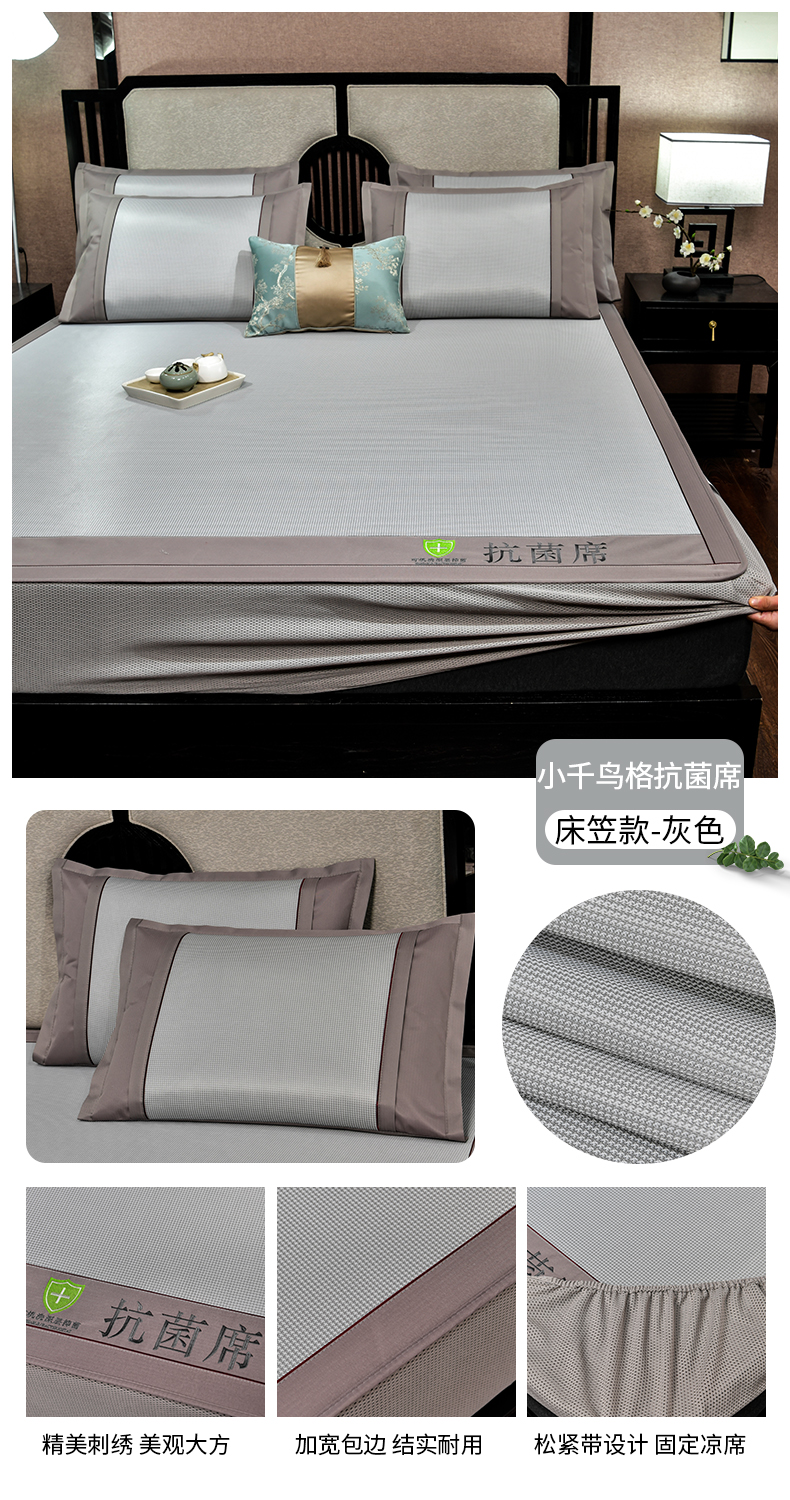 商品名称:小牛席业 2026新款小千鸟格-经典款抗菌席(床笠款) 灰色