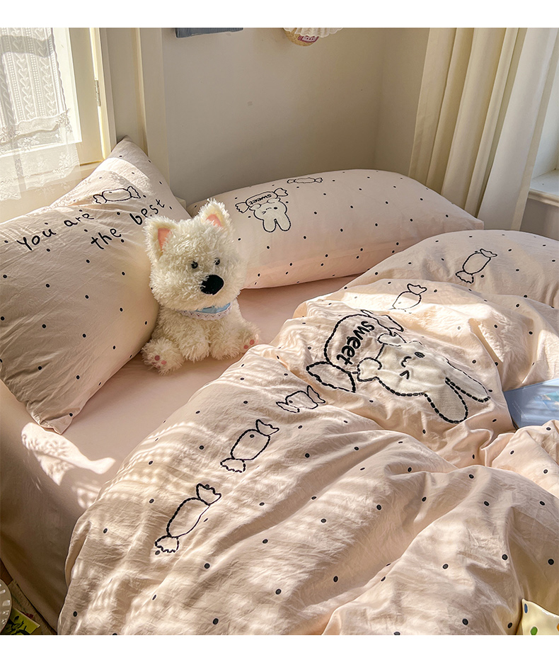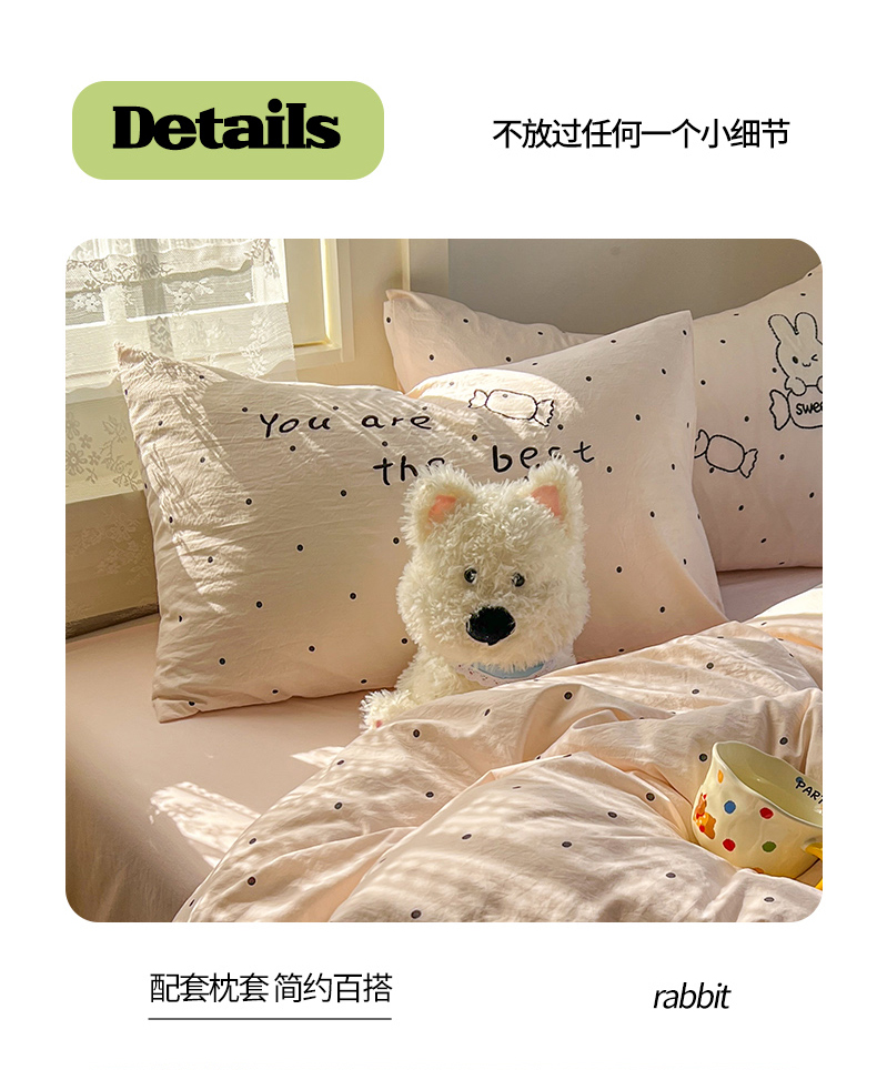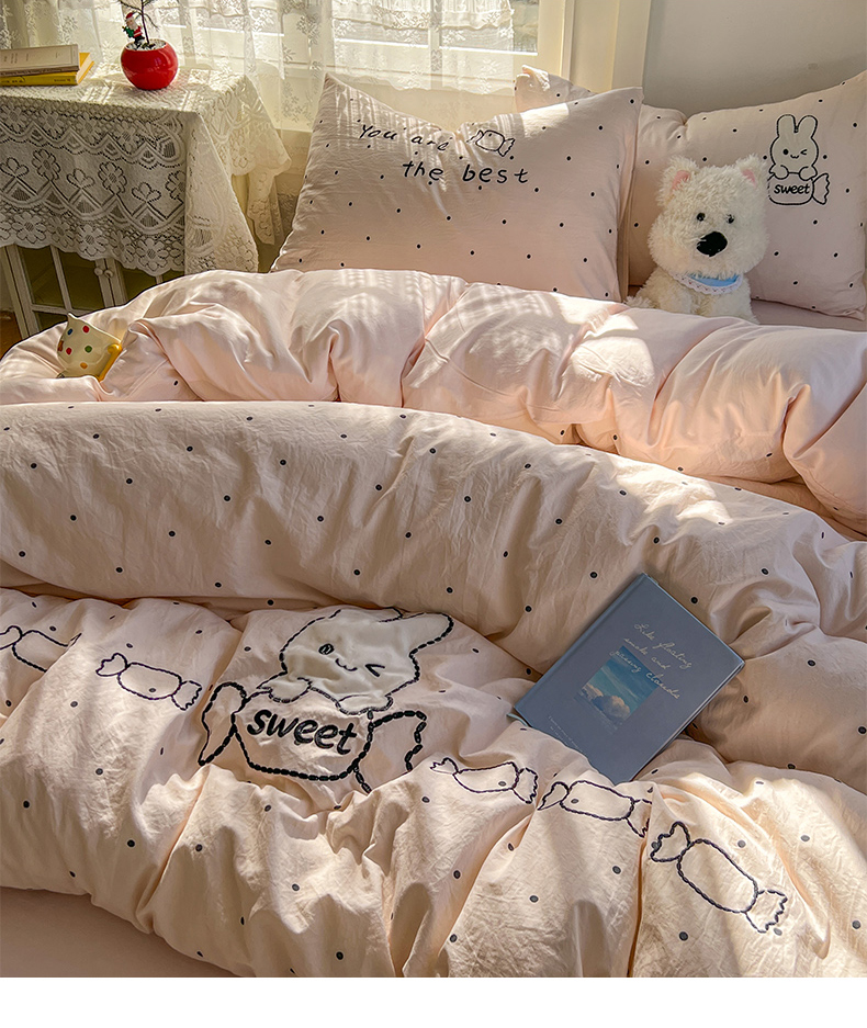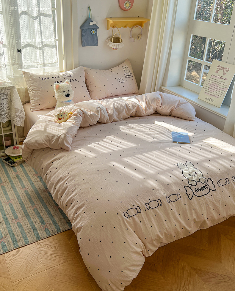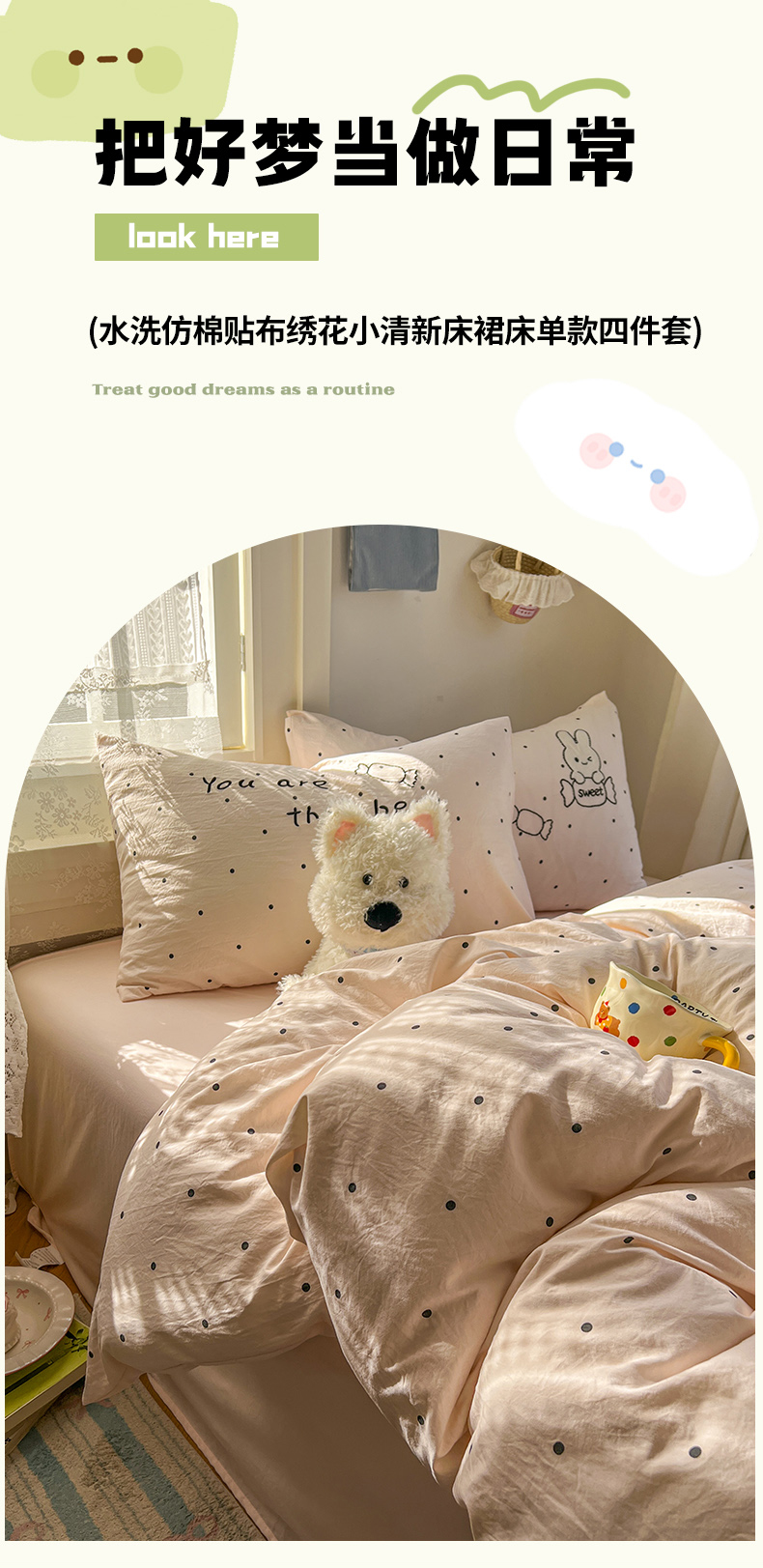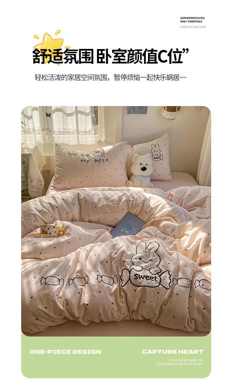 当前位置: 91家纺网 > 商品网购 > 床品套件 > 四件套 > 水洗棉四件套 > 贝凯瑞 2026新款仿棉木棉水洗棉绣花ins小清新床裙床单款四件套-糖果兔系列 糖果兔-糯米玉