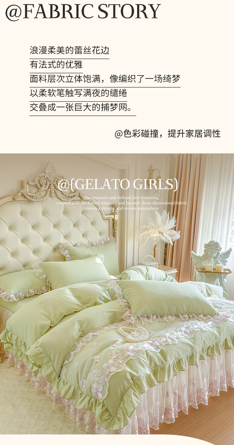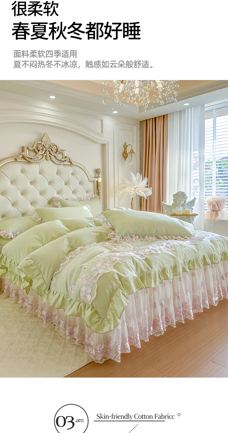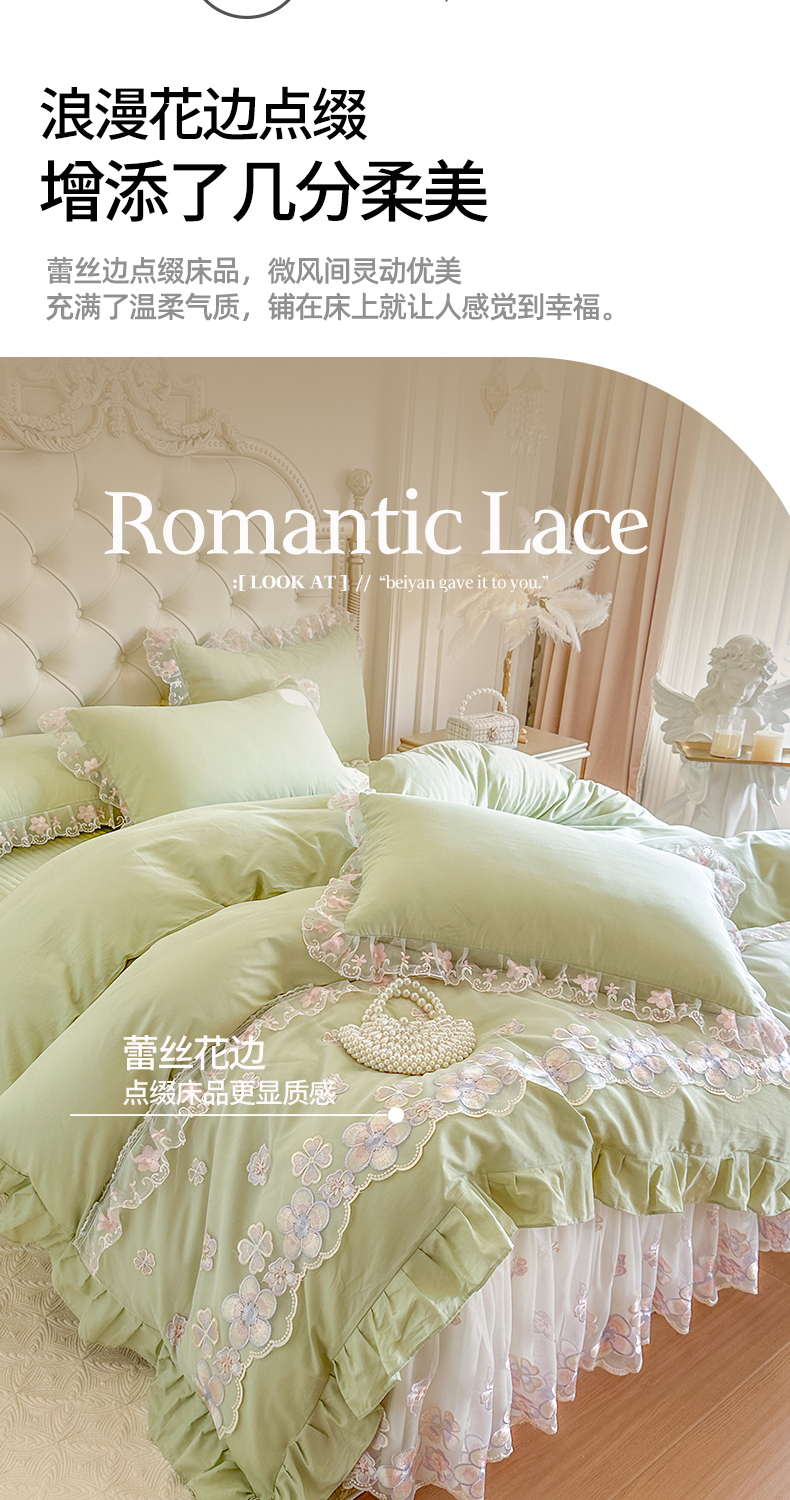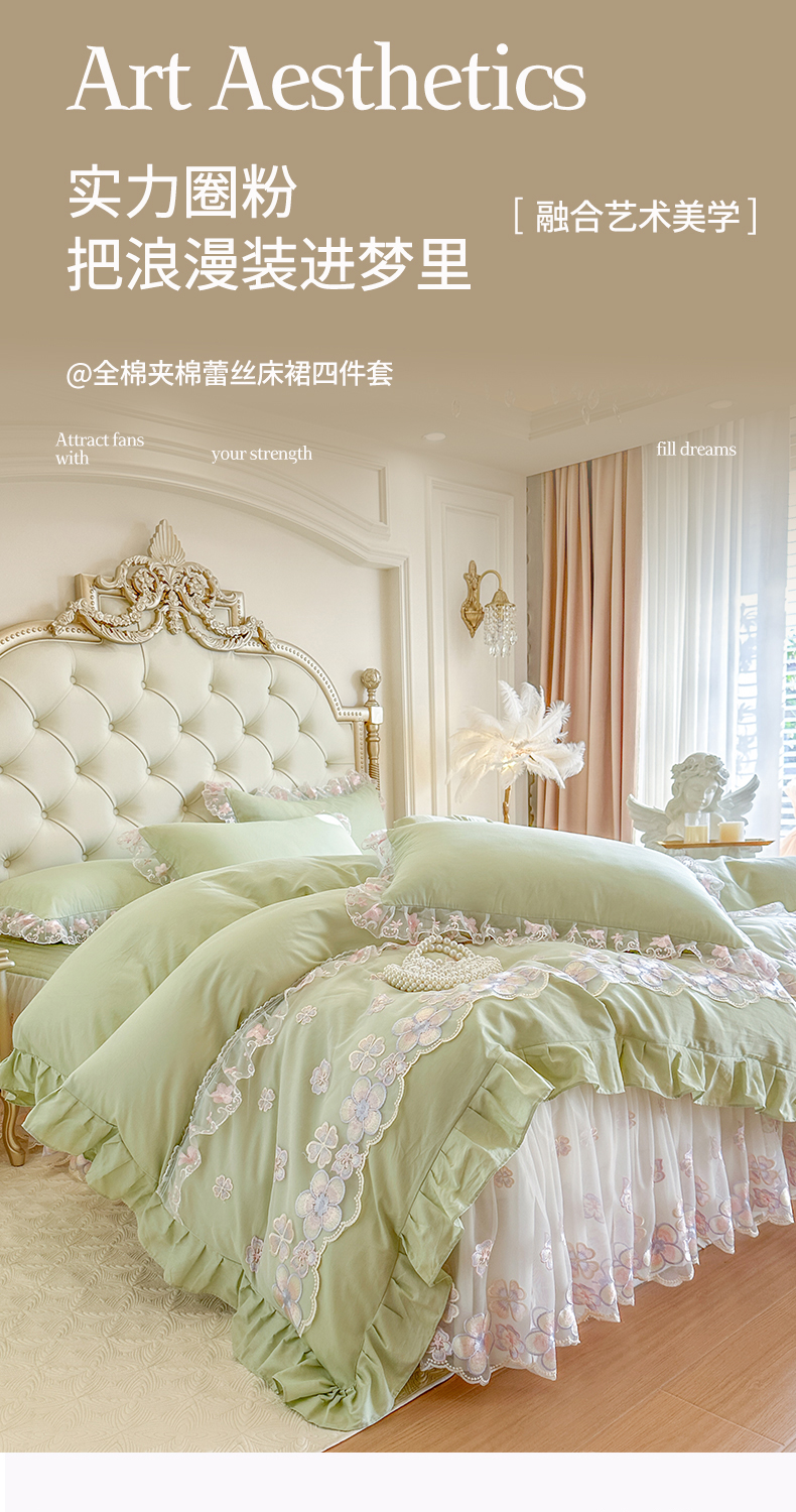 当前位置: 91家纺网 > 商品网购 > 床品套件 > 四件套 > 全棉普通四件套 > 网红馆(ck家纺) 2026春夏新款阳光花语全棉纯棉床裙四件套 阳光花语 绿