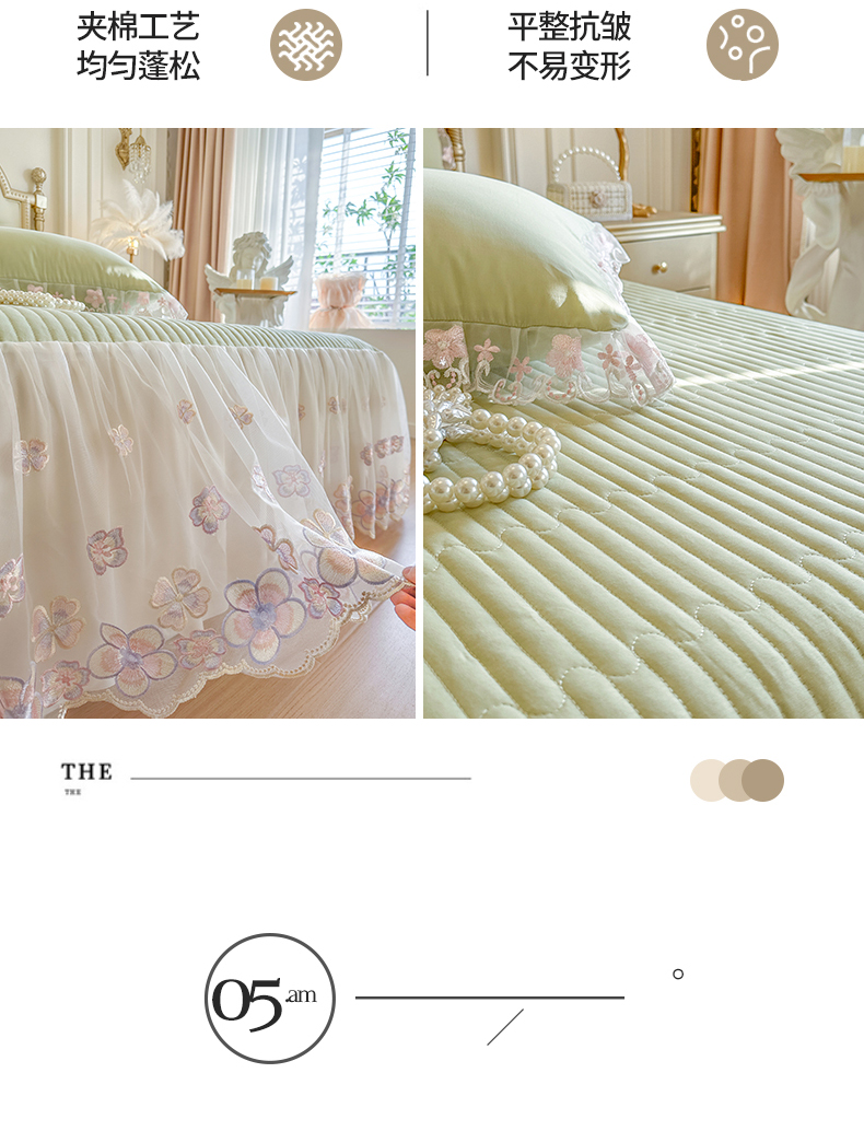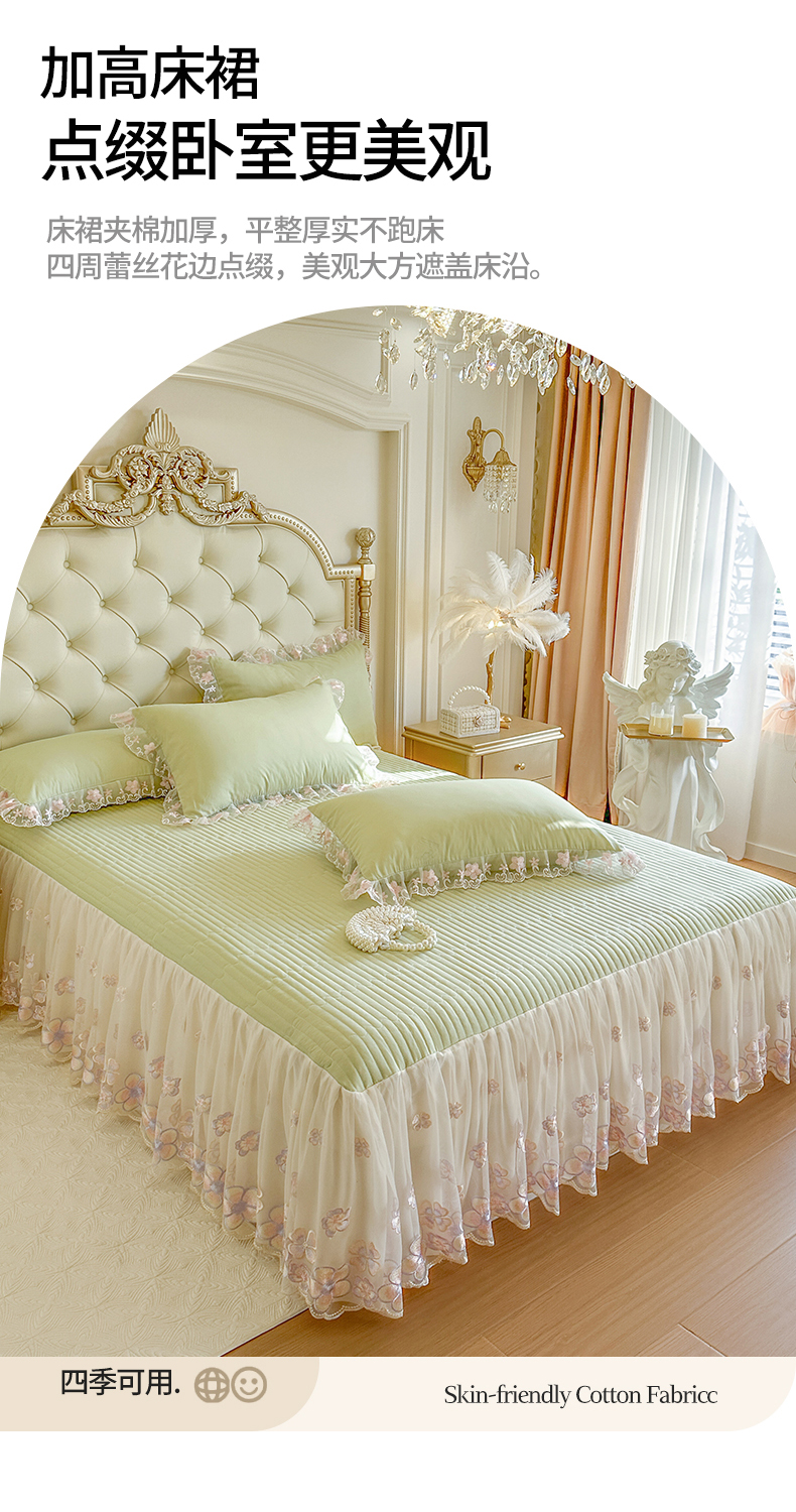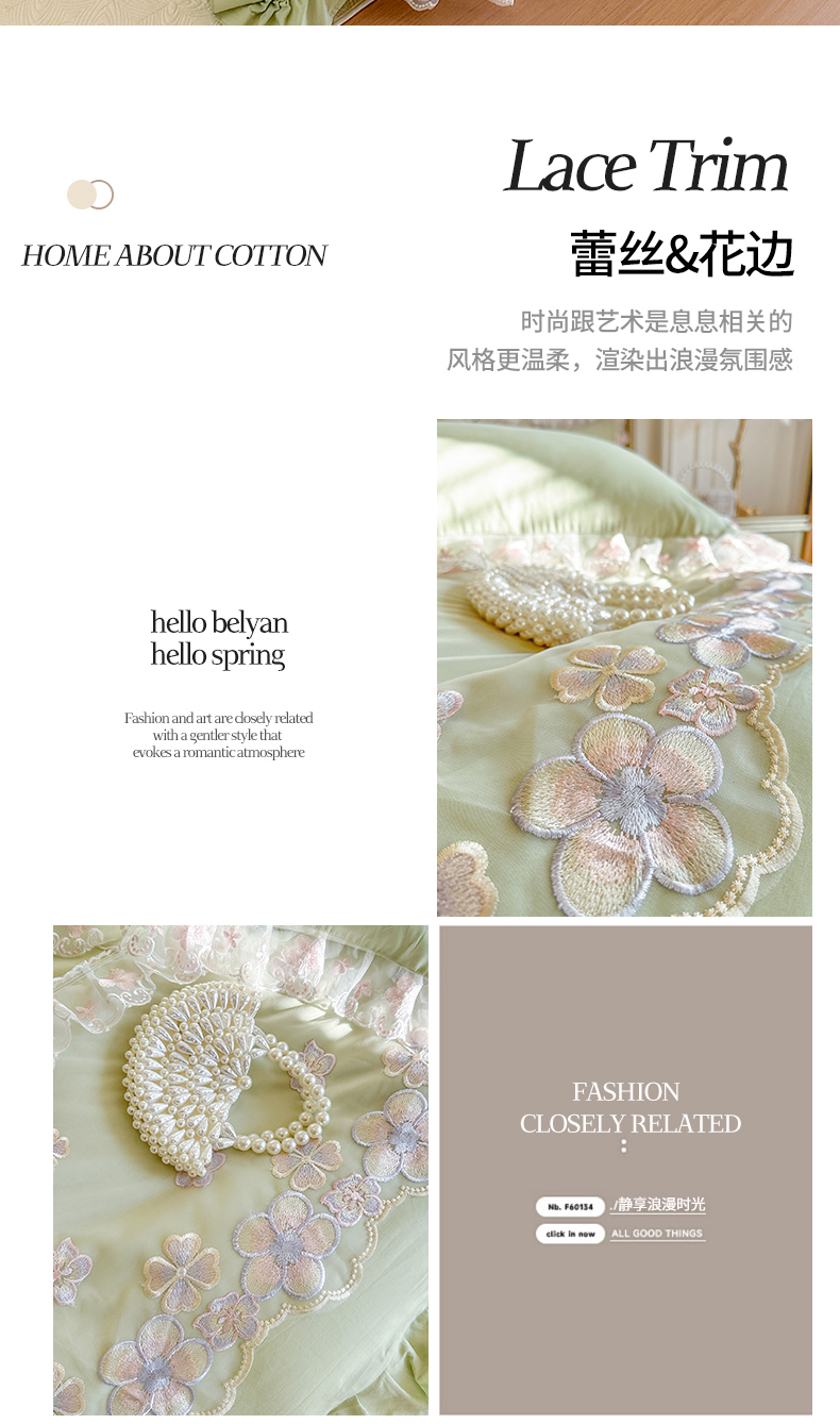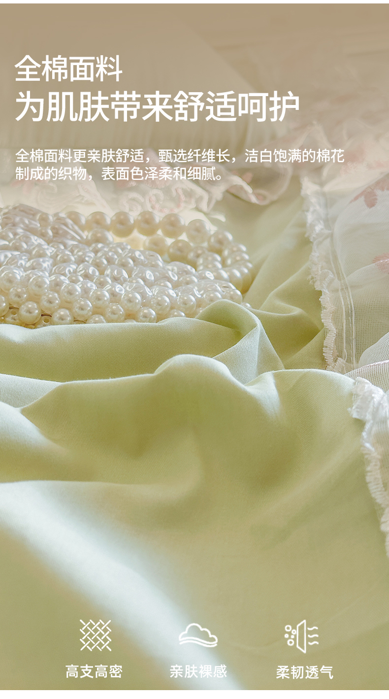 当前位置: 91家纺网 > 商品网购 > 床品套件 > 四件套 > 全棉普通四件套 > 网红馆(ck家纺) 2026春夏新款阳光花语全棉纯棉床裙四件套 阳光花语 绿