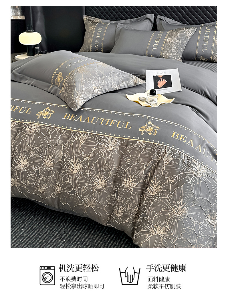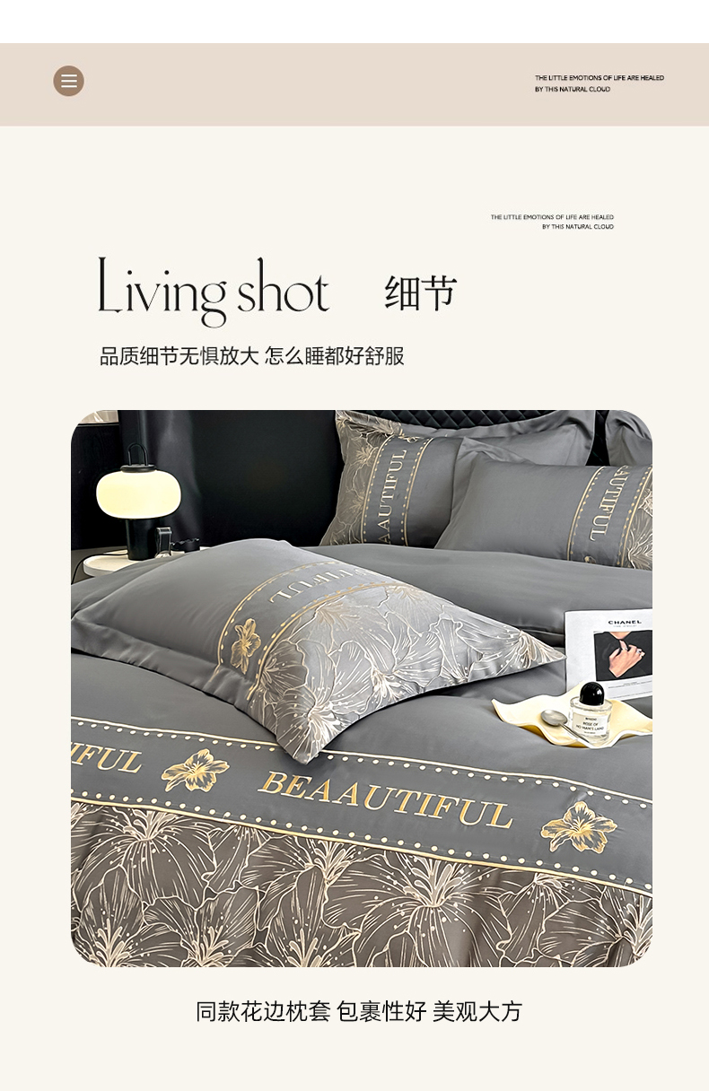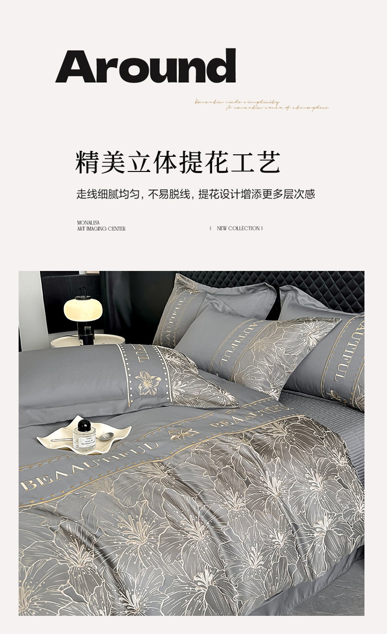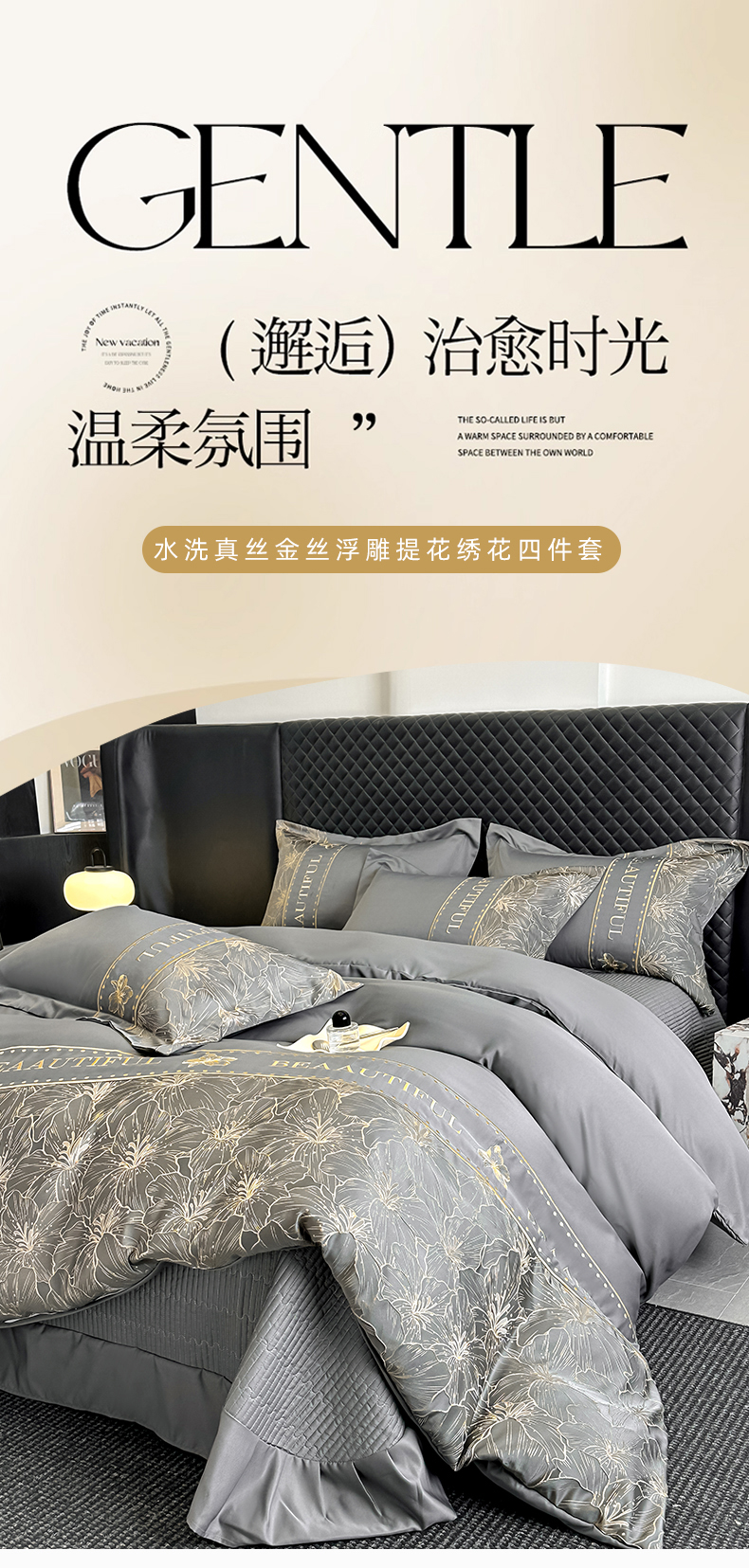 当前位置: 91家纺网 > 商品网购 > 床品套件 > 四件套 > 其它四件套 > 首尔家纺 2026春夏新款水洗真丝金丝浮雕提花绣花床盖款床单款四件套 百合-深灰