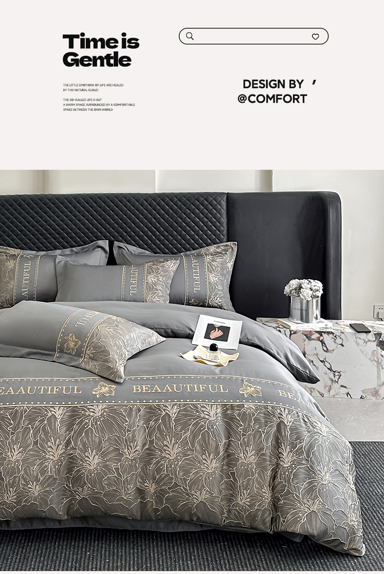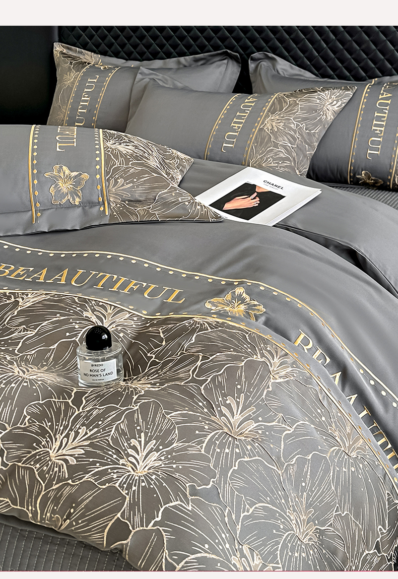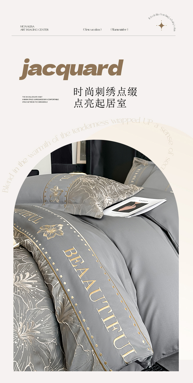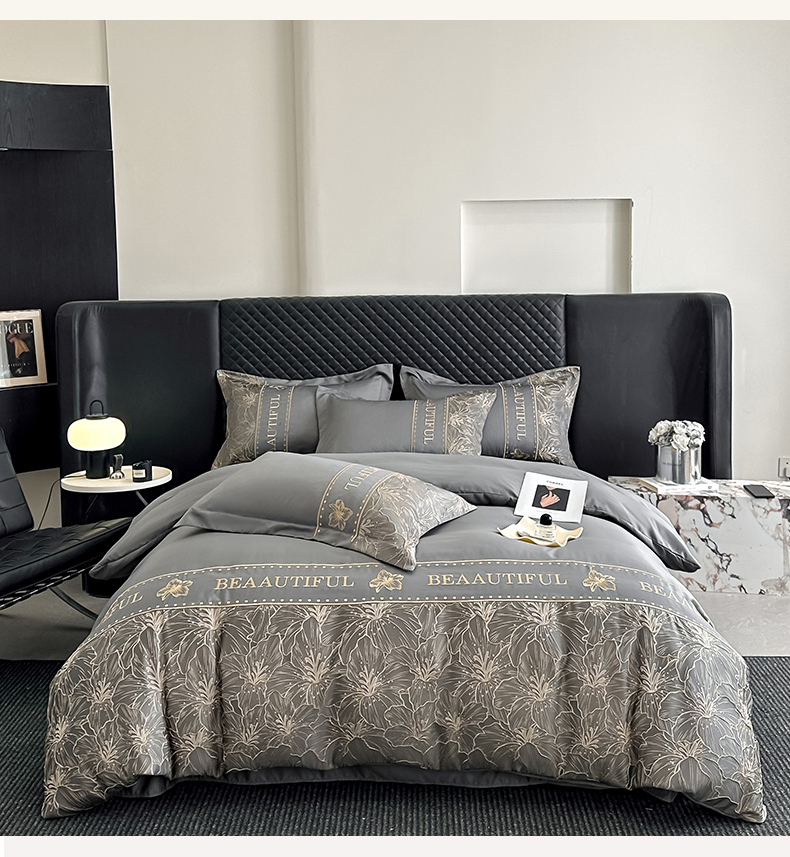 当前位置: 91家纺网 > 商品网购 > 床品套件 > 四件套 > 其它四件套 > 首尔家纺 2026春夏新款水洗真丝金丝浮雕提花绣花床盖款床单款四件套 百合-深灰