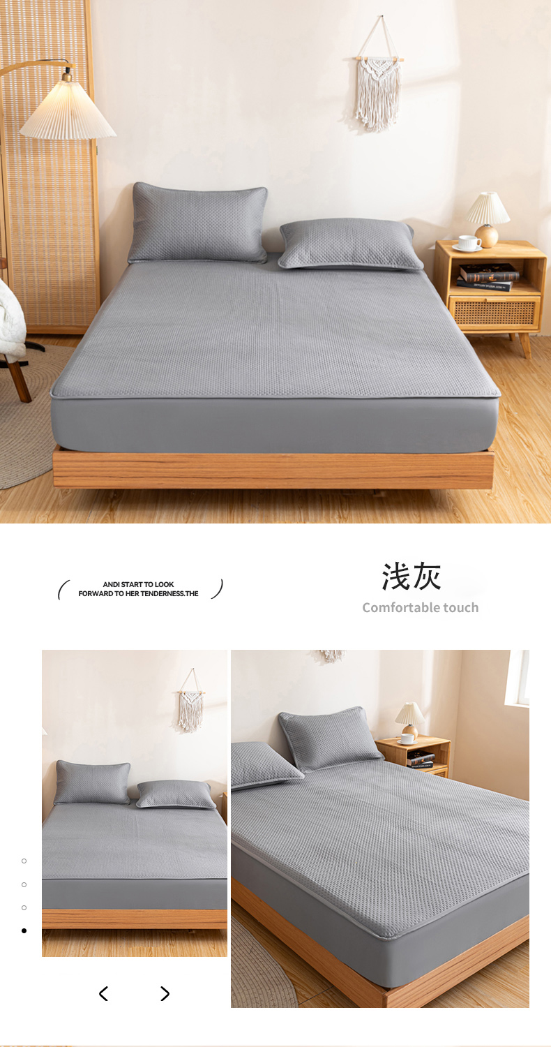 (总)宇淳国际 2026爱心款防水夹棉床笠,草绿,白色,丁香紫,卡其,奶黄,浅灰,天蓝,玉色