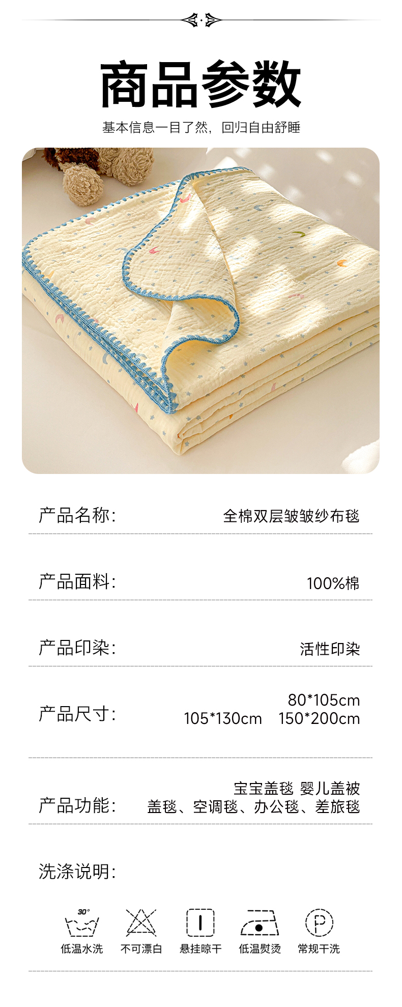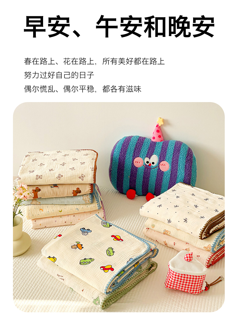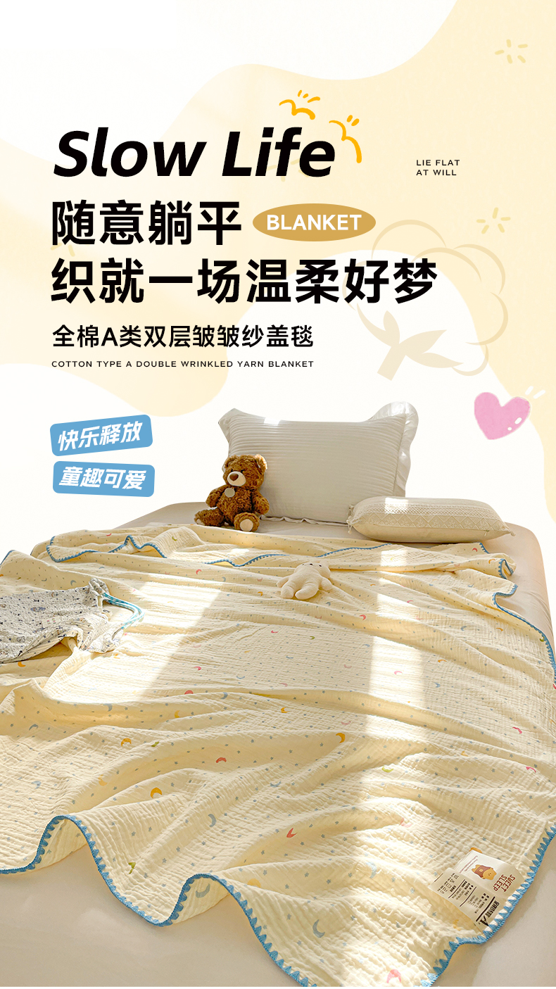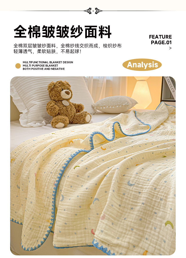 (总)优被业 2025新款全棉双层纱皱皱纱夏被,南瓜熊猫,宠物乐园,小爱心,爱心熊,花语,花馨,蘑菇小兔