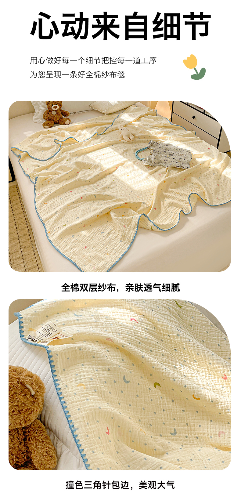 优被业 2026新款A类全棉双层纱布毯夏被毯盖毯婴儿包被 半月湾