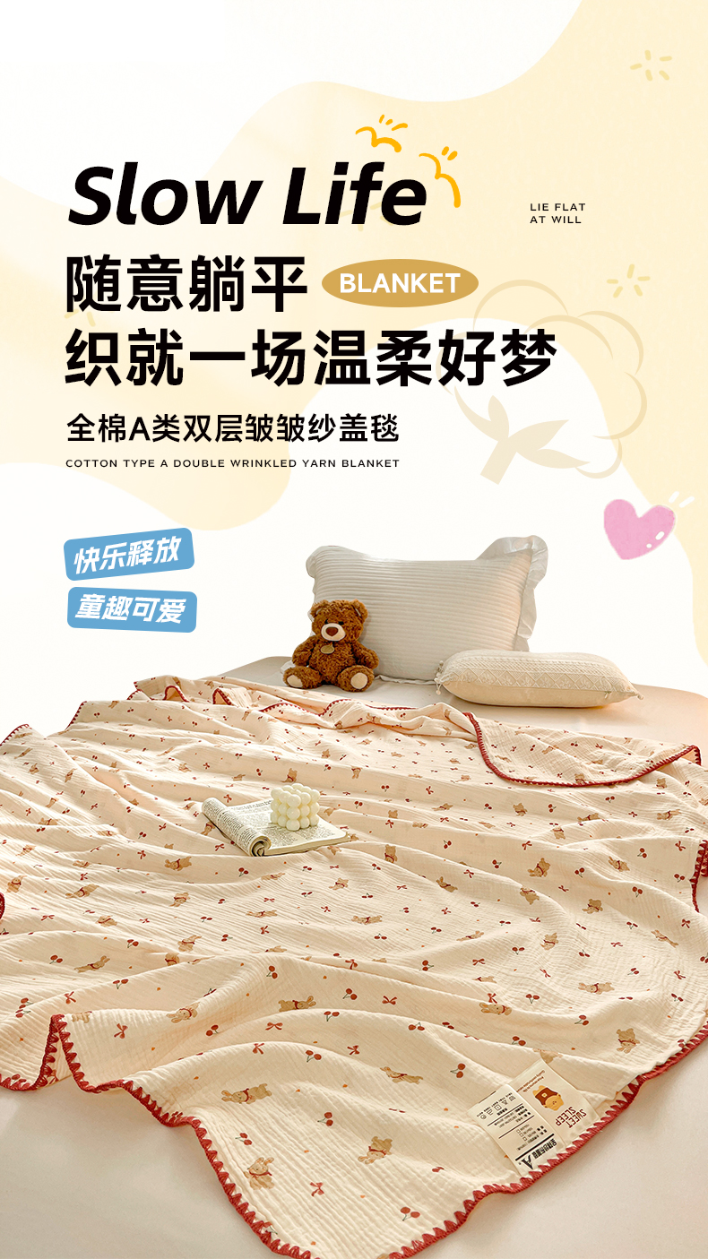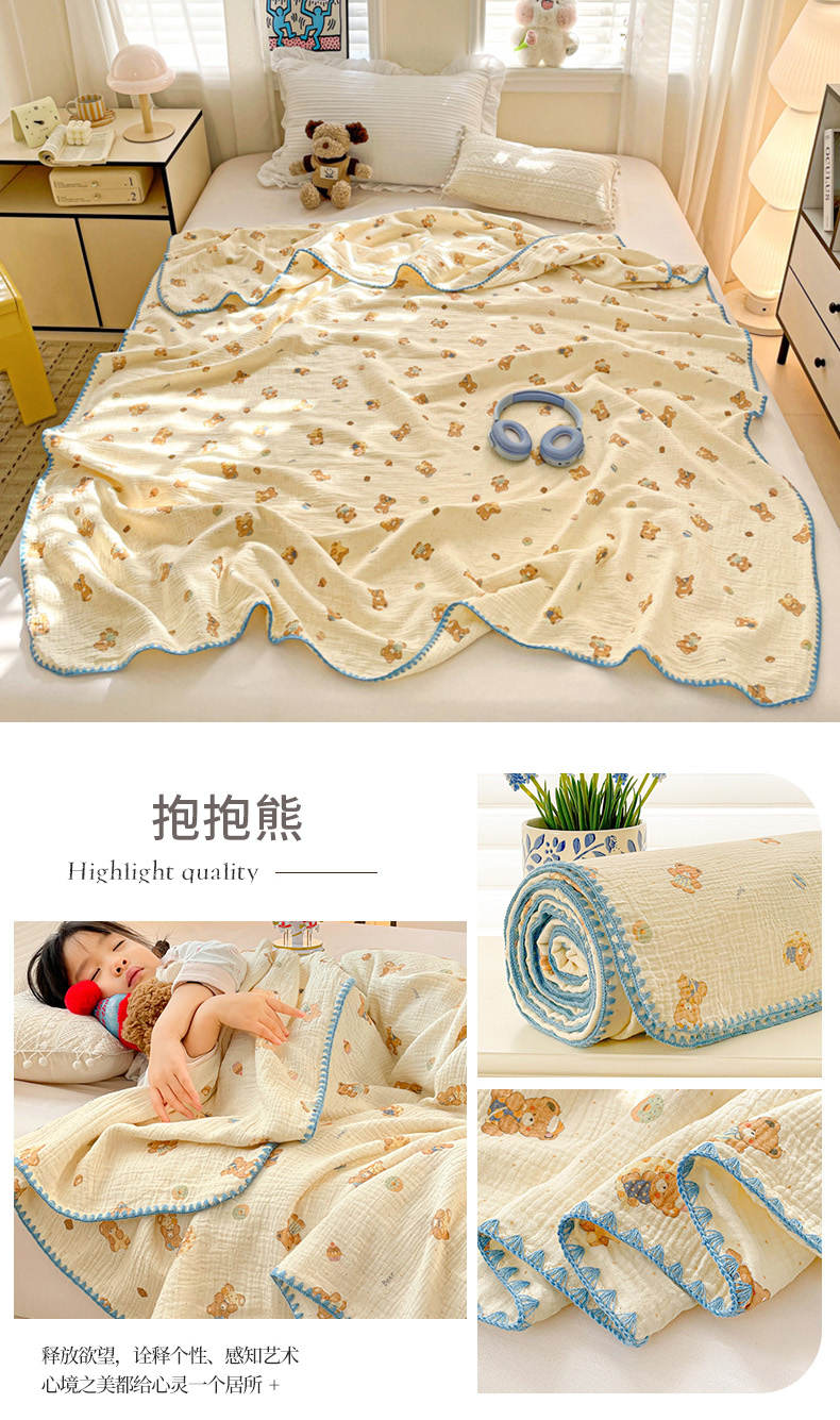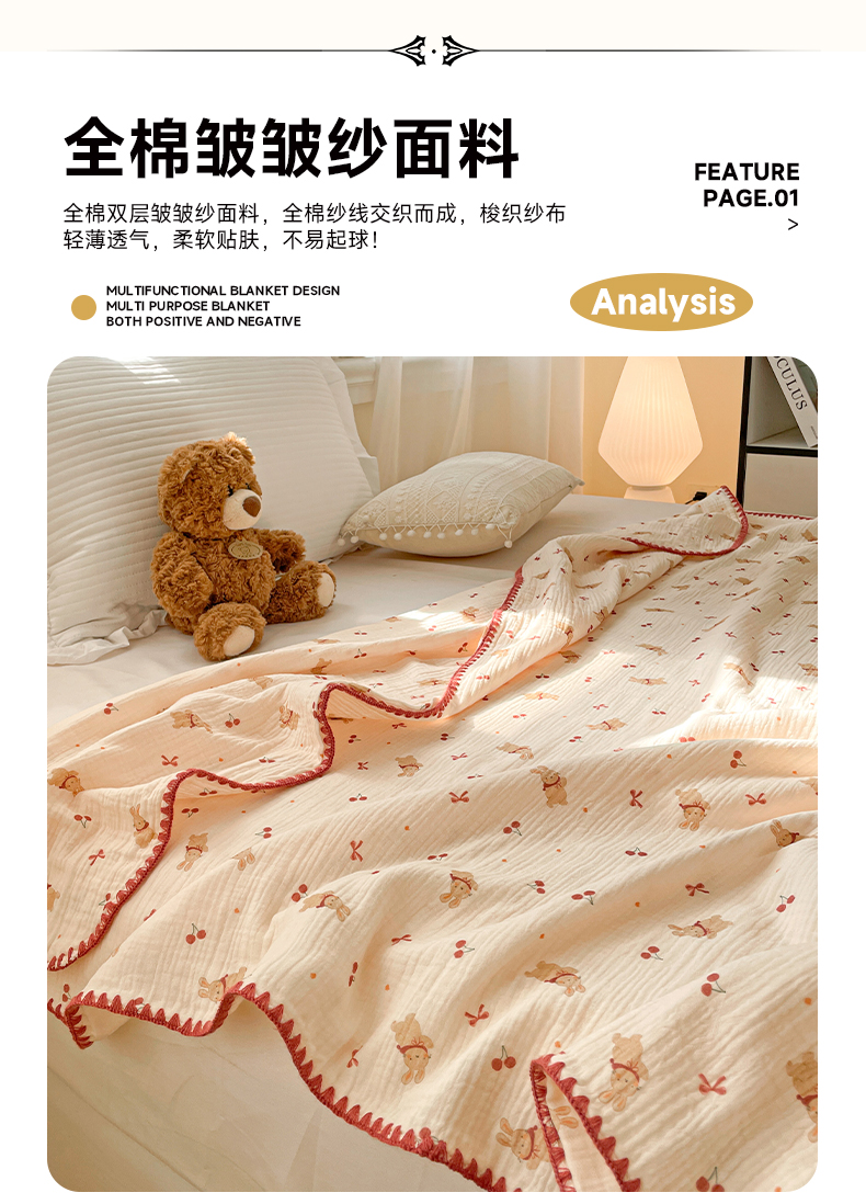 (总)优被业 2025新款全棉双层纱皱皱纱夏被,南瓜熊猫,宠物乐园,小爱心,爱心熊,花语,花馨,蘑菇小兔