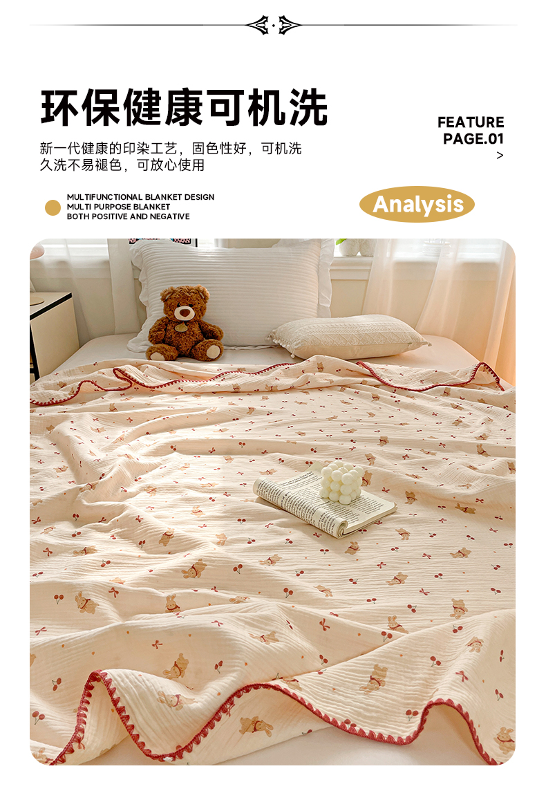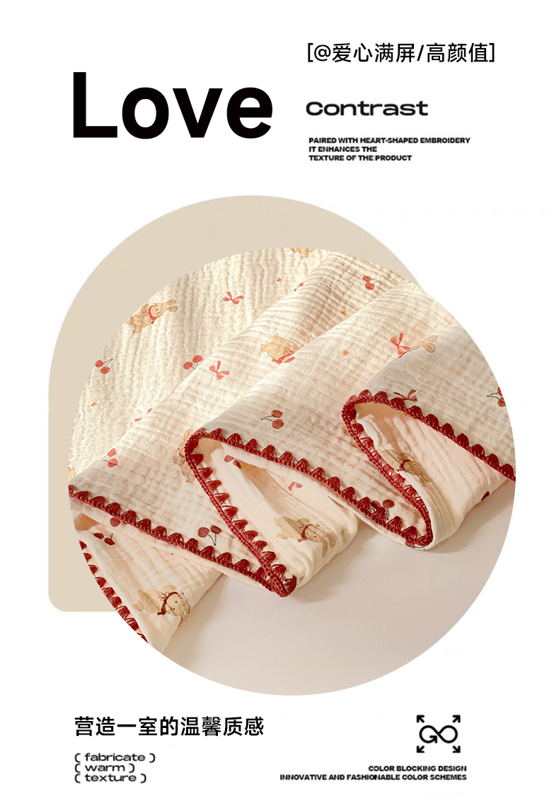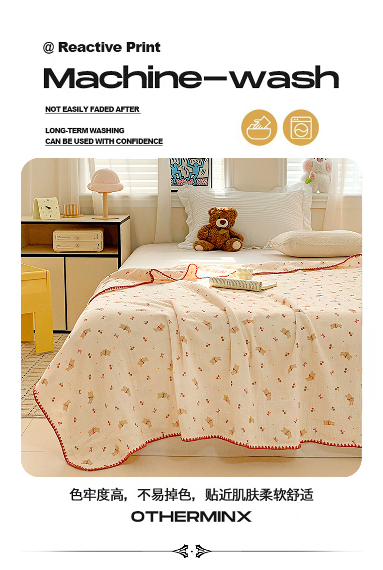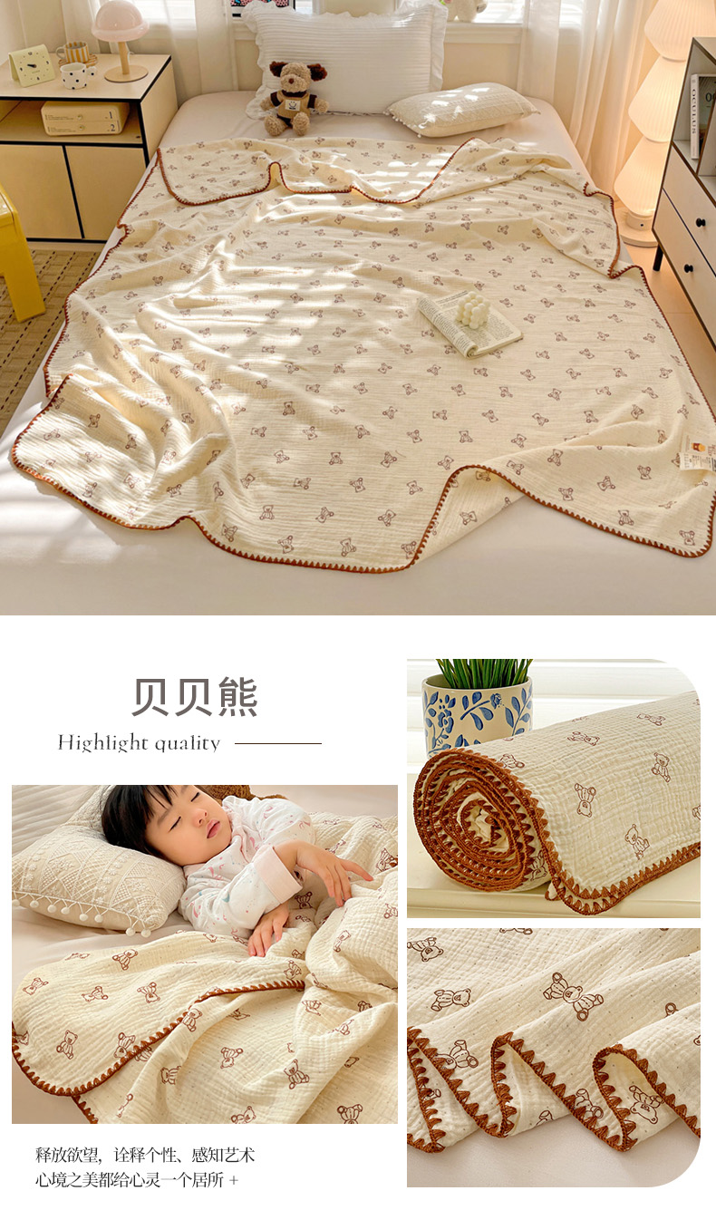 (总)优被业 2025新款全棉双层纱皱皱纱夏被,南瓜熊猫,宠物乐园,小爱心,爱心熊,花语,花馨,蘑菇小兔