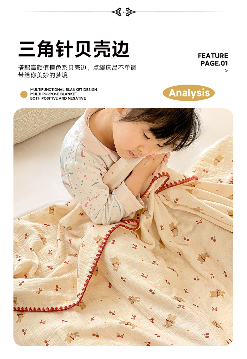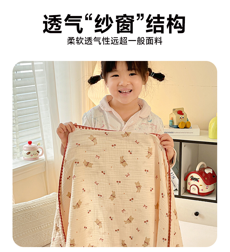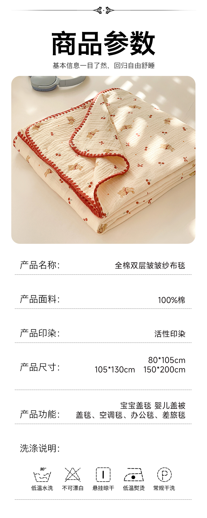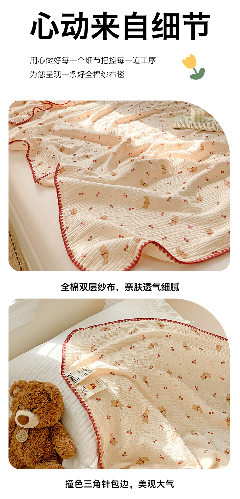 商品名称:优被业 2026新款A类全棉双层纱布毯夏被毯盖毯婴儿包被 樱桃小兔