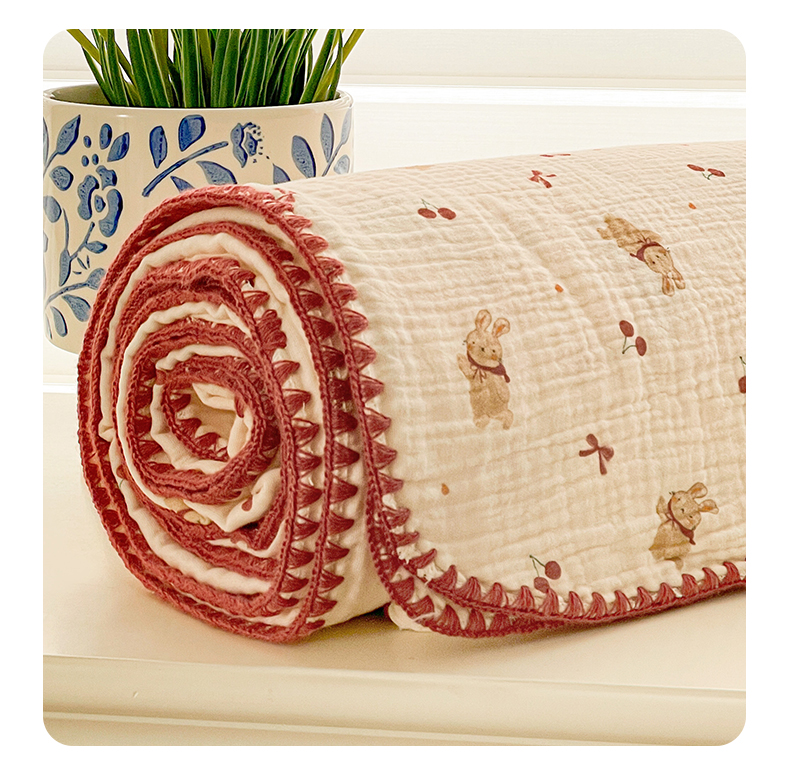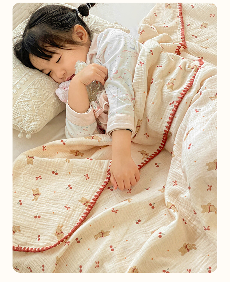优被业 2026新款A类全棉双层纱布毯夏被毯盖毯婴儿包被 樱桃小兔