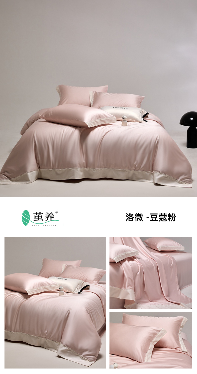 商品名称:金奇达家纺 2026新款【茧养·丝光缎】四件套-洛微【标准号全网控价(折后券后)不低于299元(会员减40元)】 洛微 -豆蔻粉