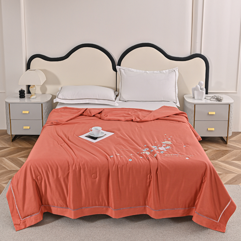 太阳羽家纺 2026新款天丝绣花镂空夏被夏凉被空调被--深呼吸 深呼吸-橘色