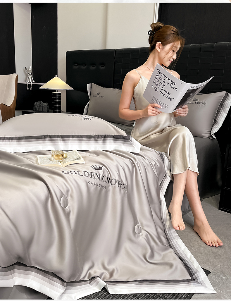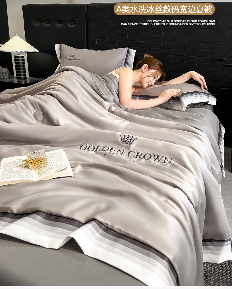 • 91家纺网 家纺一手货源 找家纺 笙意家纺 2026新款水洗冰丝数码宽边刺绣夏被夏凉被空调被-贝拉系列 贝拉-山灰+中灰