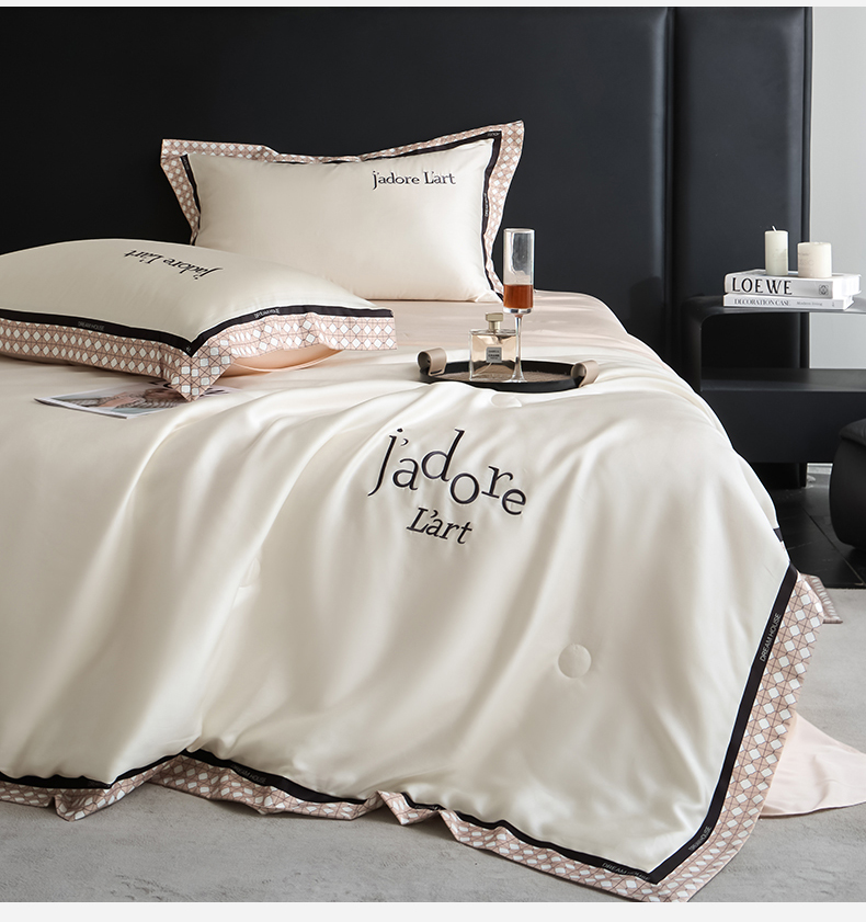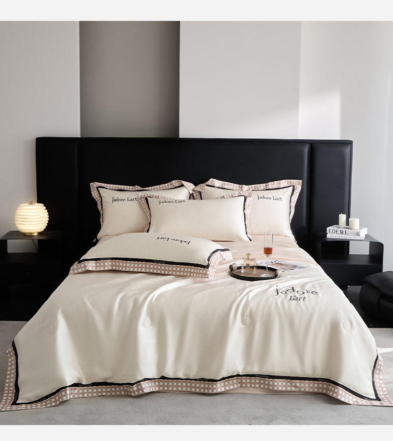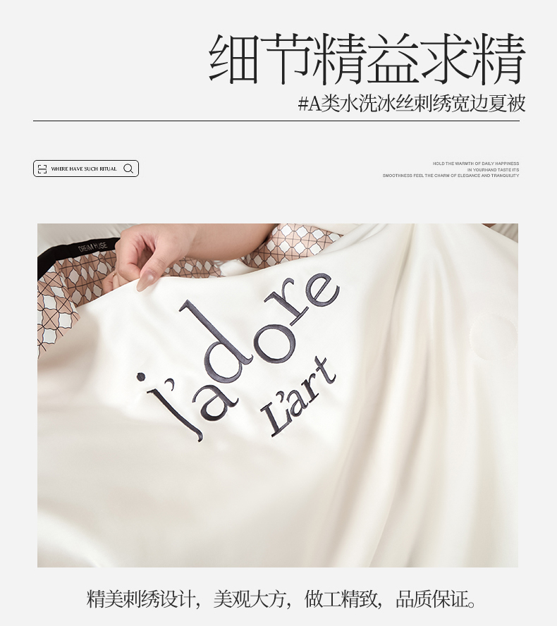 • 91家纺网 家纺一手货源 找家纺 笙意家纺 2026新款水洗冰丝刺绣宽边夏被四件套-艾斯系列 艾斯-白+奶茶