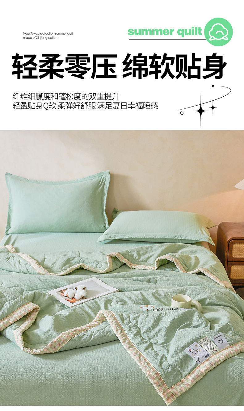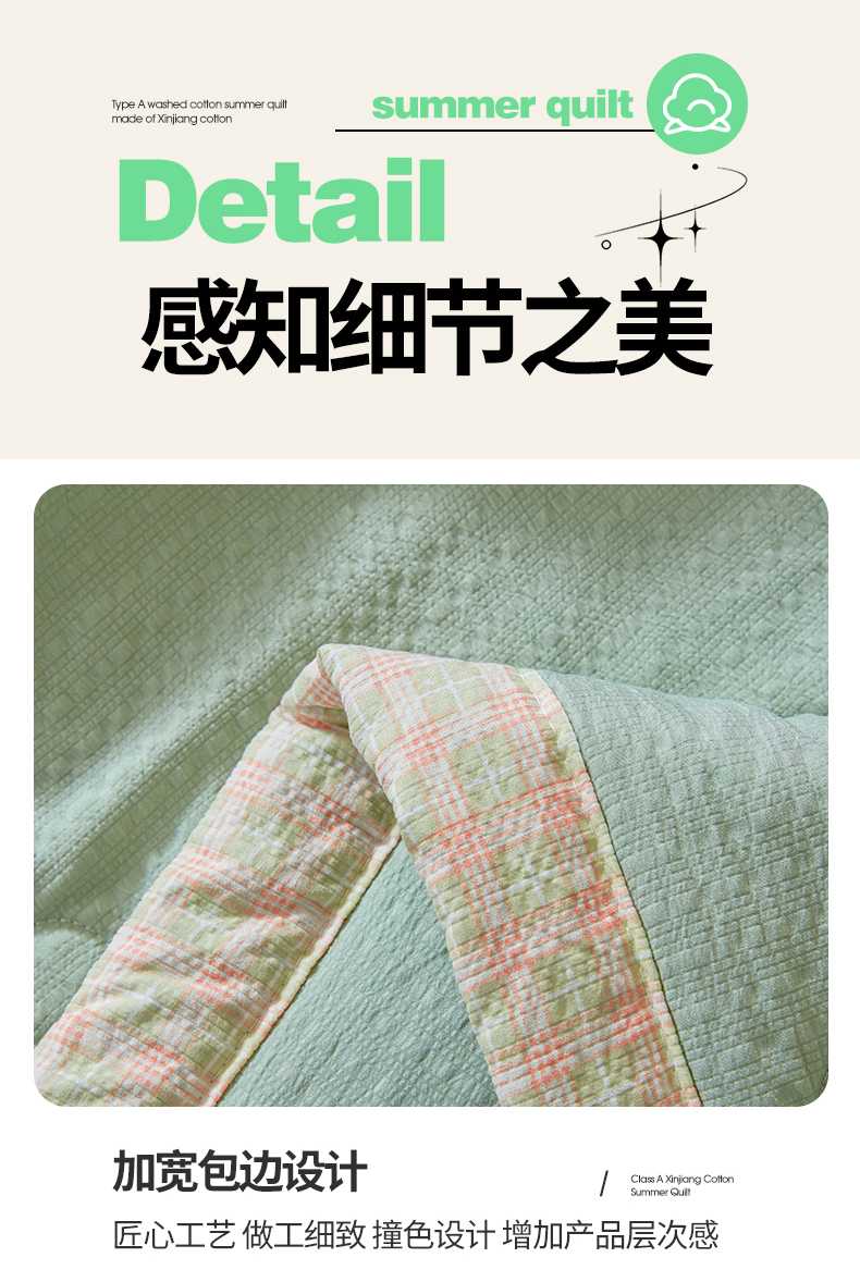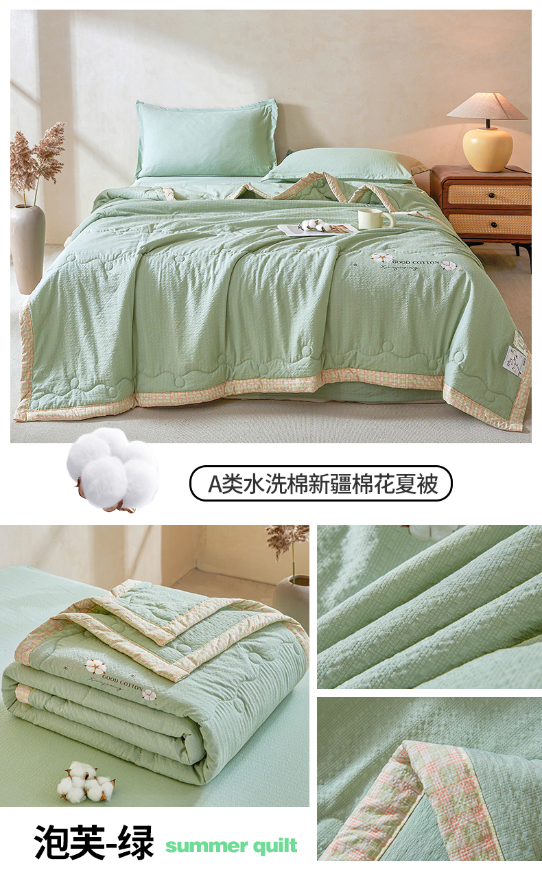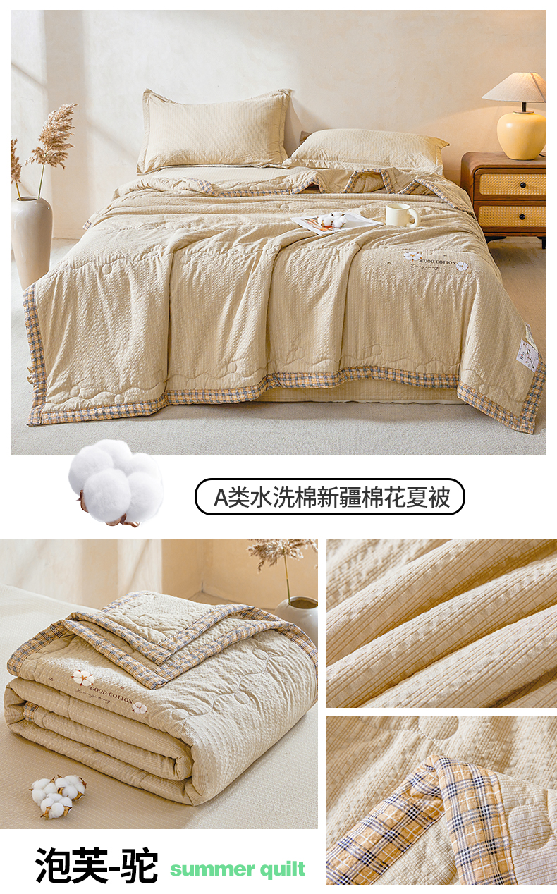 商品名称:(总)西域种棉人 2026新款A类新疆棉花夏凉被加宽包边水洗棉泡泡纱吸湿透气棉花夏被空调被纯色烫画