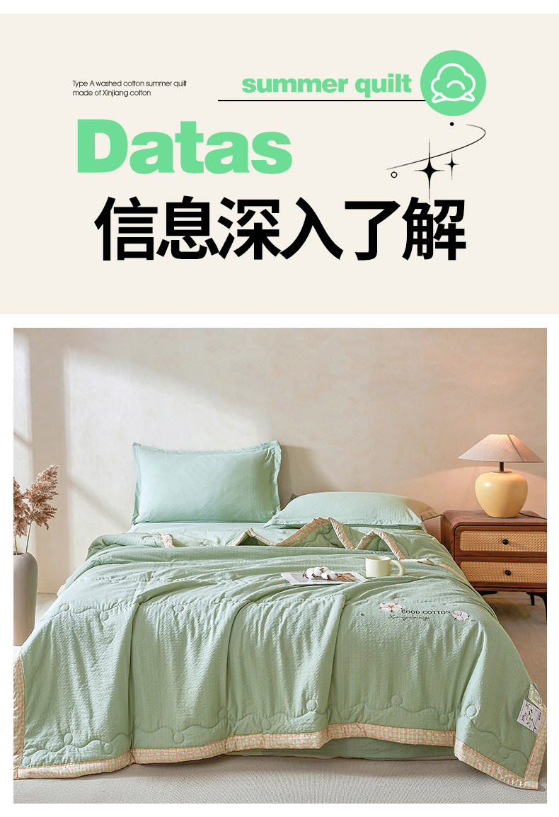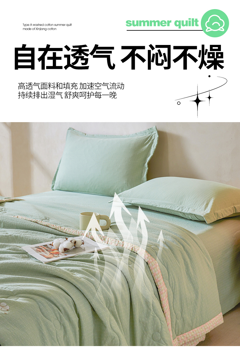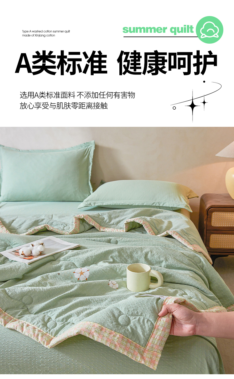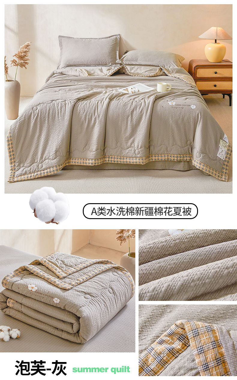 商品名称:(总)西域种棉人 2026新款A类新疆棉花夏凉被加宽包边水洗棉泡泡纱吸湿透气棉花夏被空调被纯色烫画