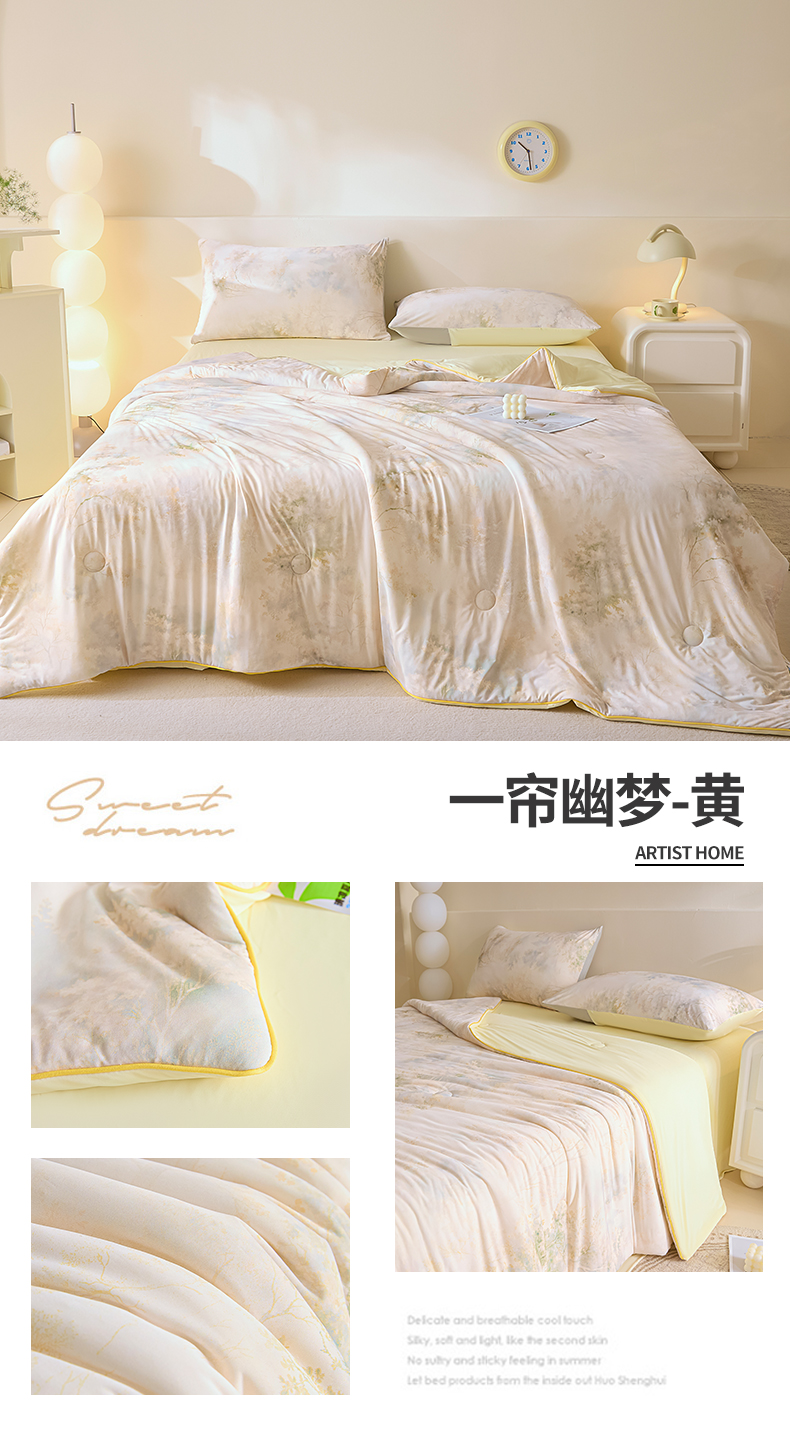 恬思语家纺 2026春夏新品印花凉感丝大豆夏被夏凉被空调被 一帘幽梦-黄