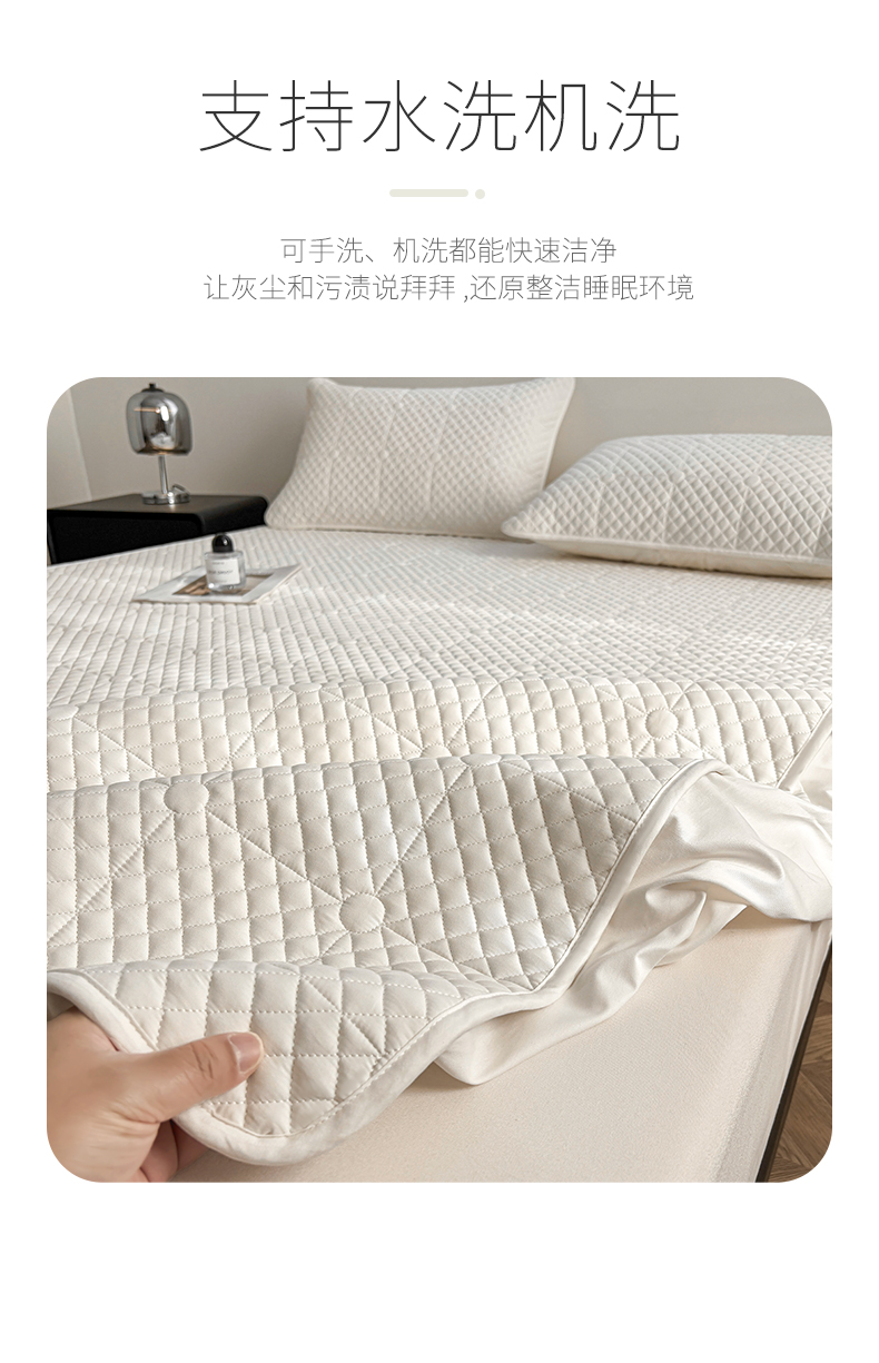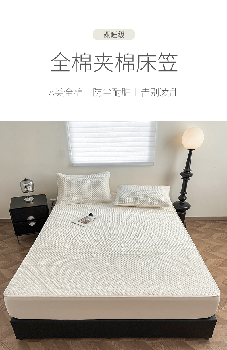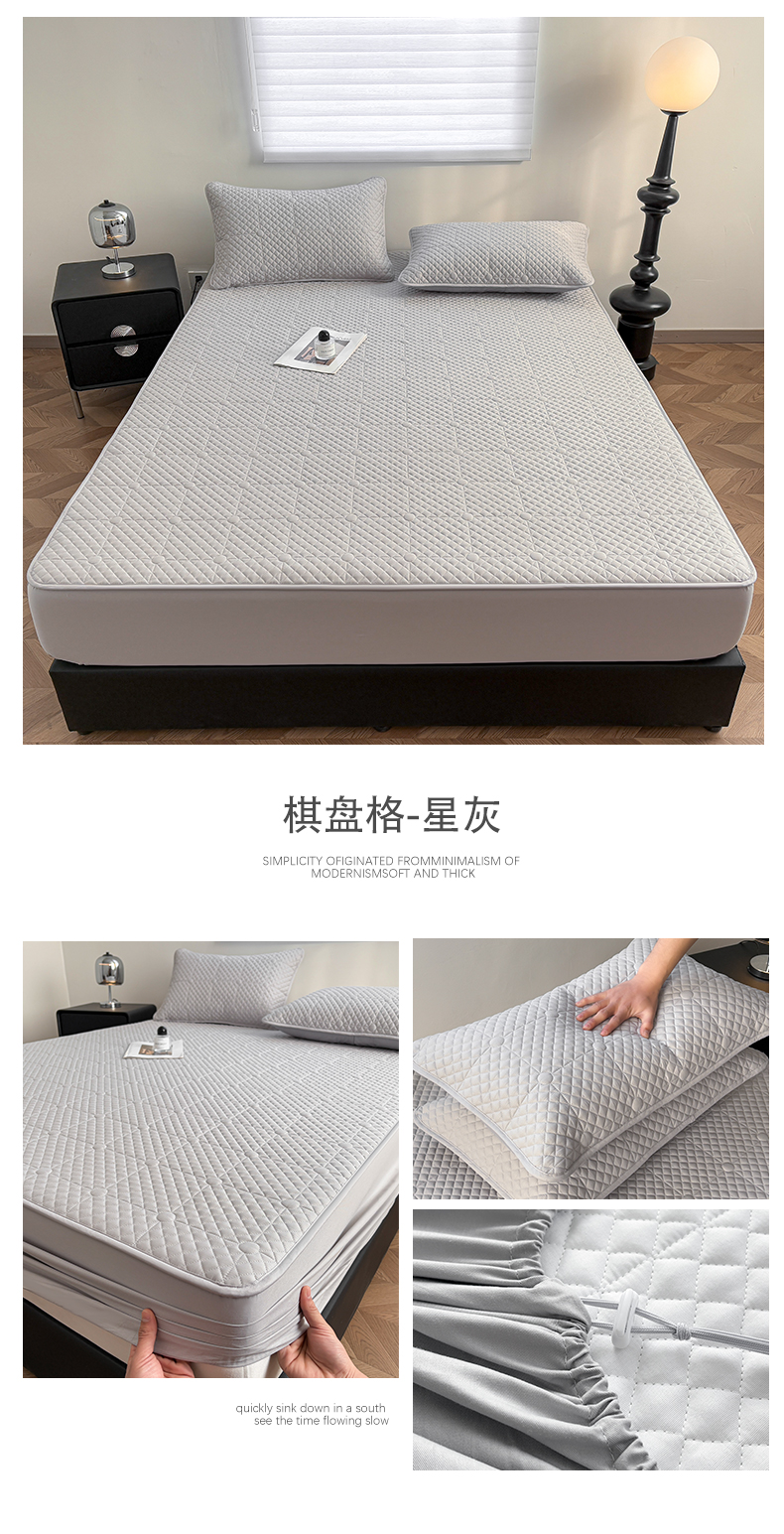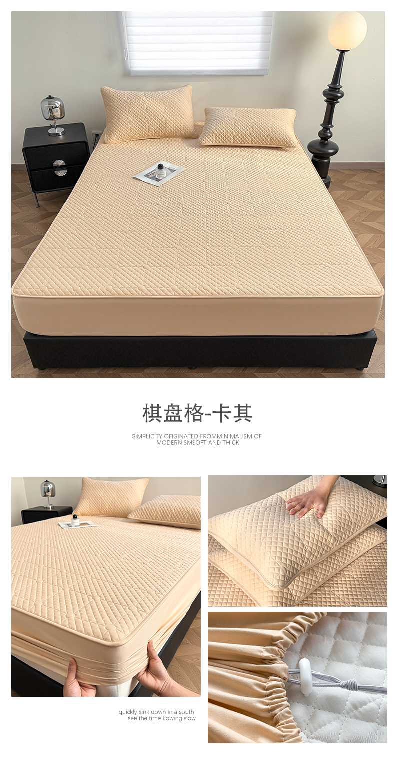 (总)居眠 2025新款防水夹棉床笠-清雅,清雅-粉色,清雅-灰色,清雅-卡其,清雅-绿色,清雅-米白,清雅-深蓝