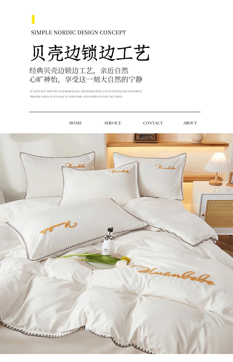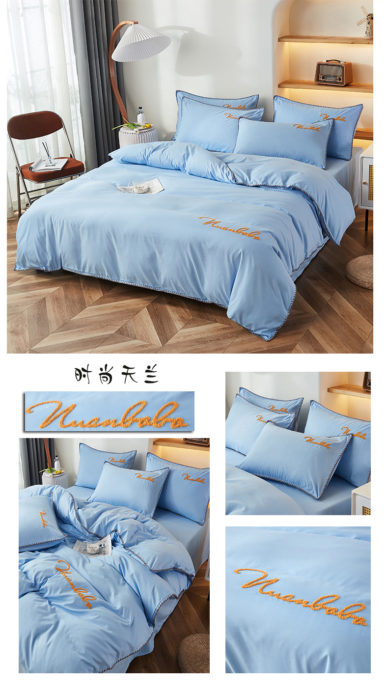 商品名称:啊雅家居 2026新款A类水洗棉贝壳边毛巾绣四件套 时尚天兰