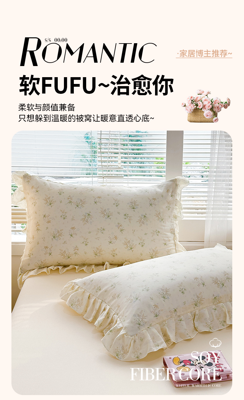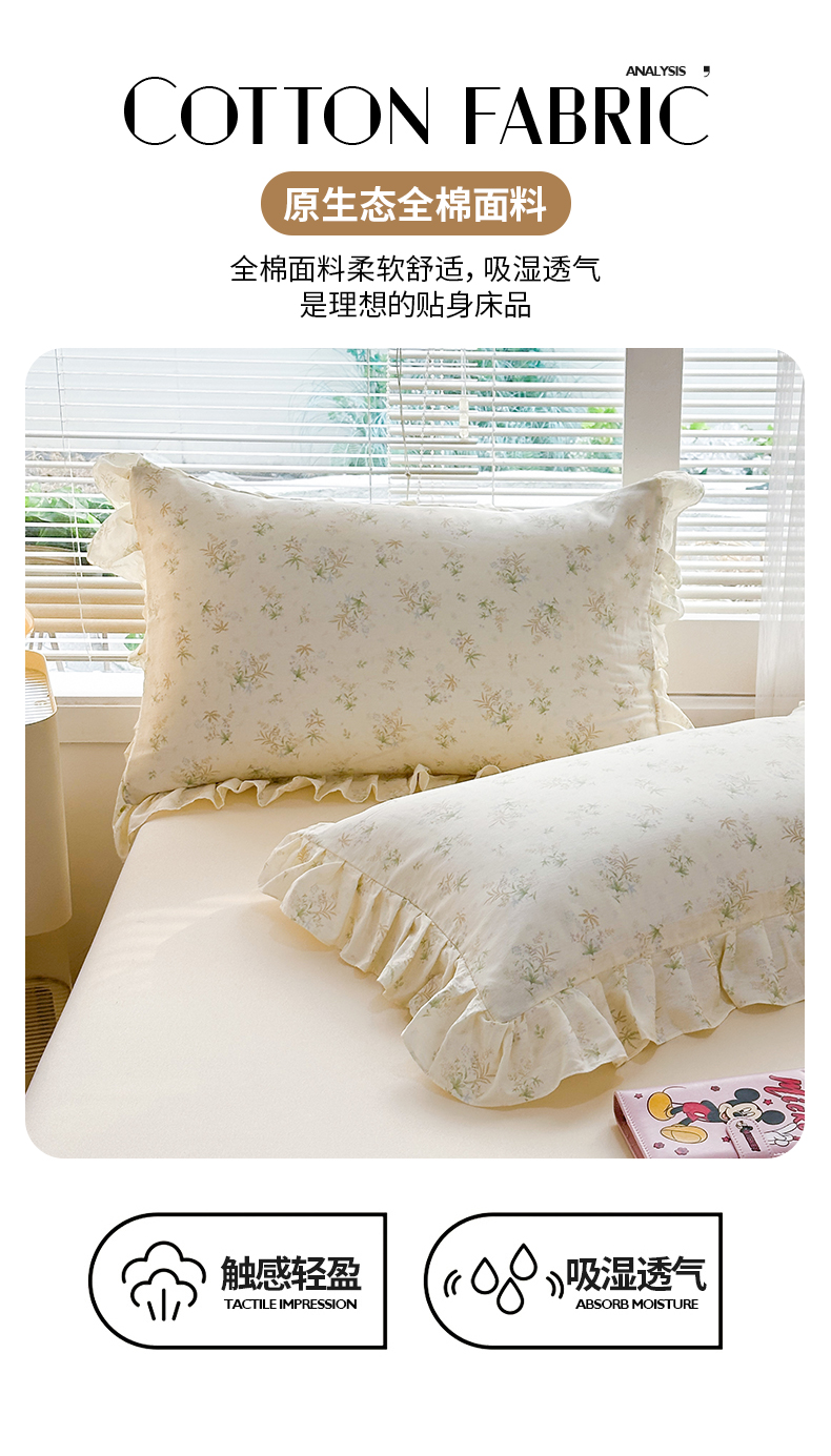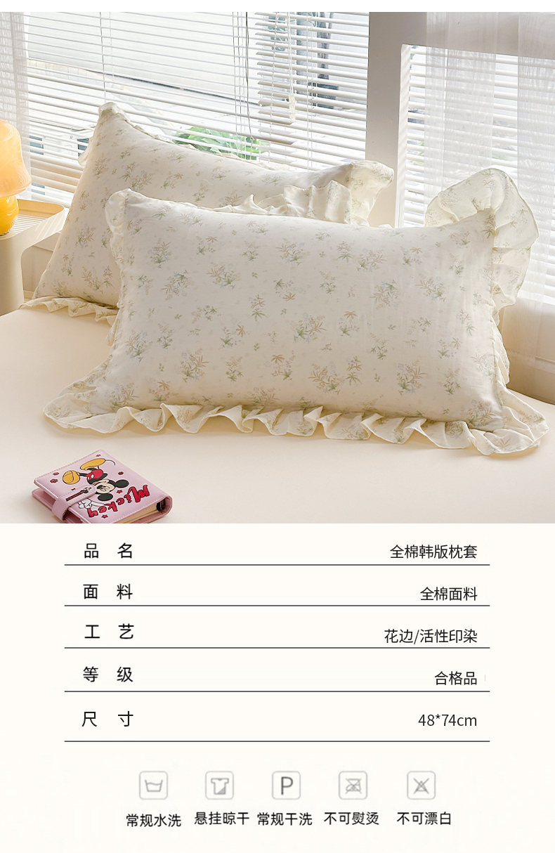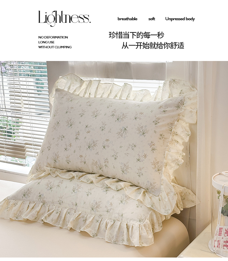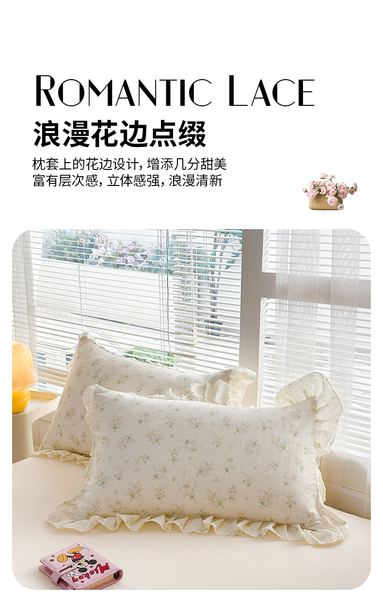商品名称:忘忧草 2026新款全棉纯棉印花精致花边枕套单枕套 枕套单件 花仙子